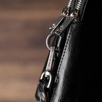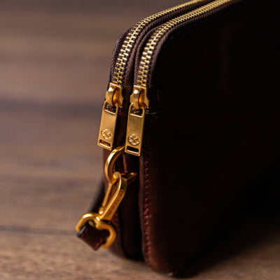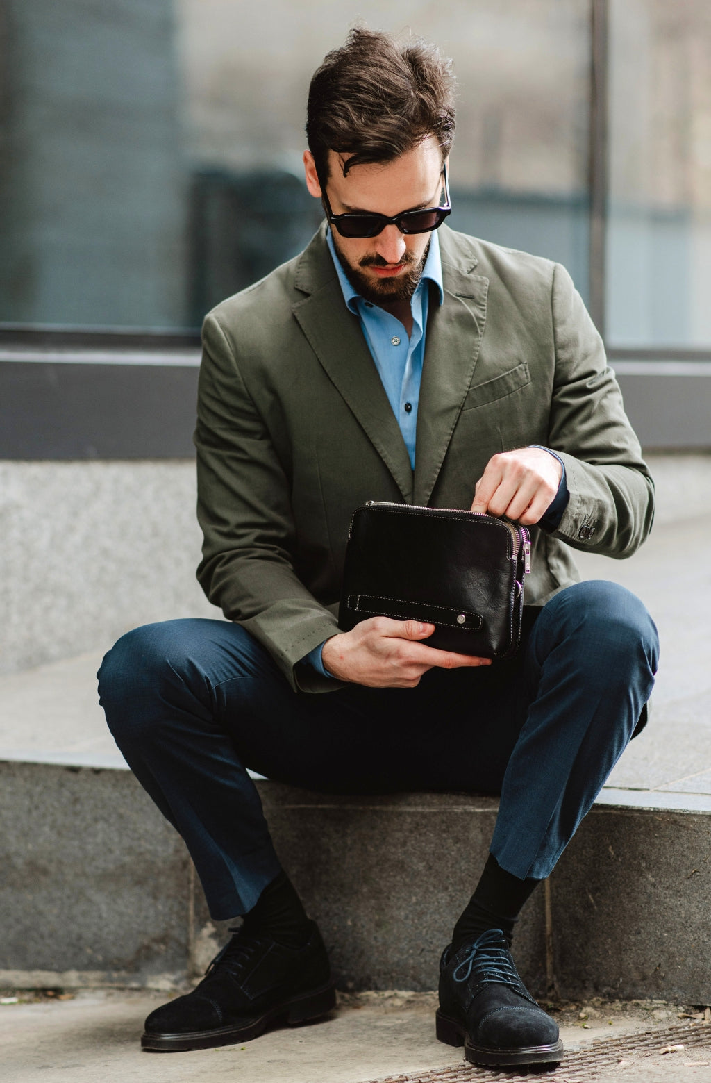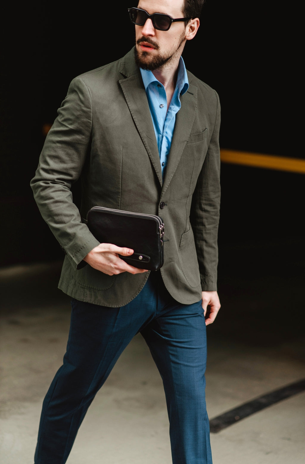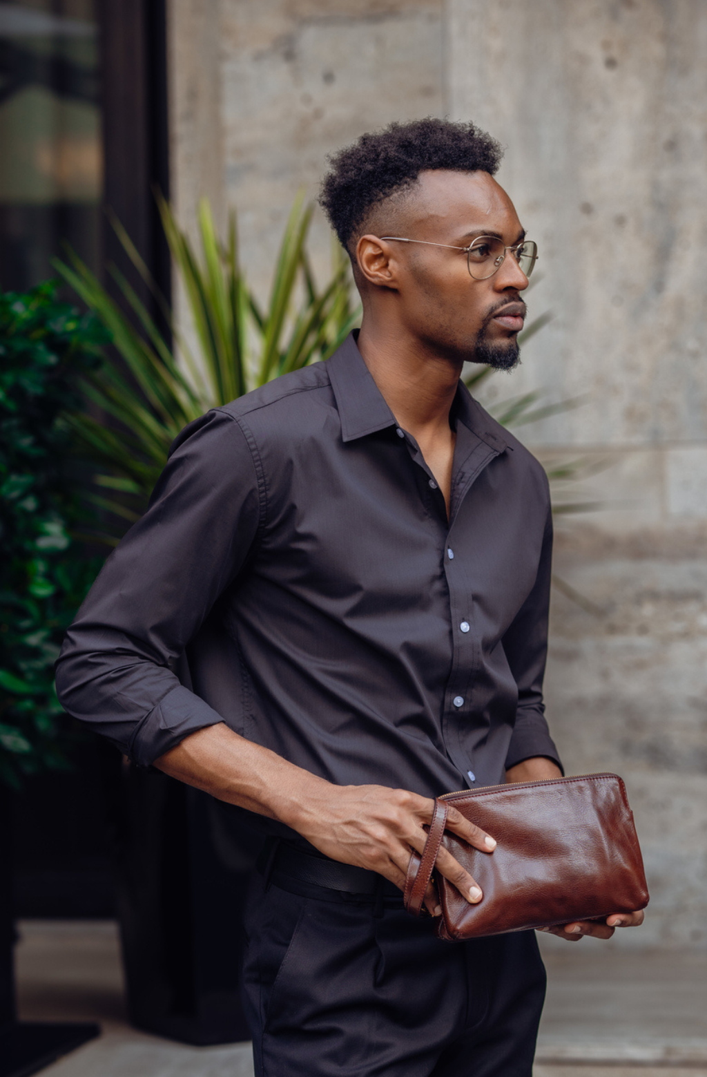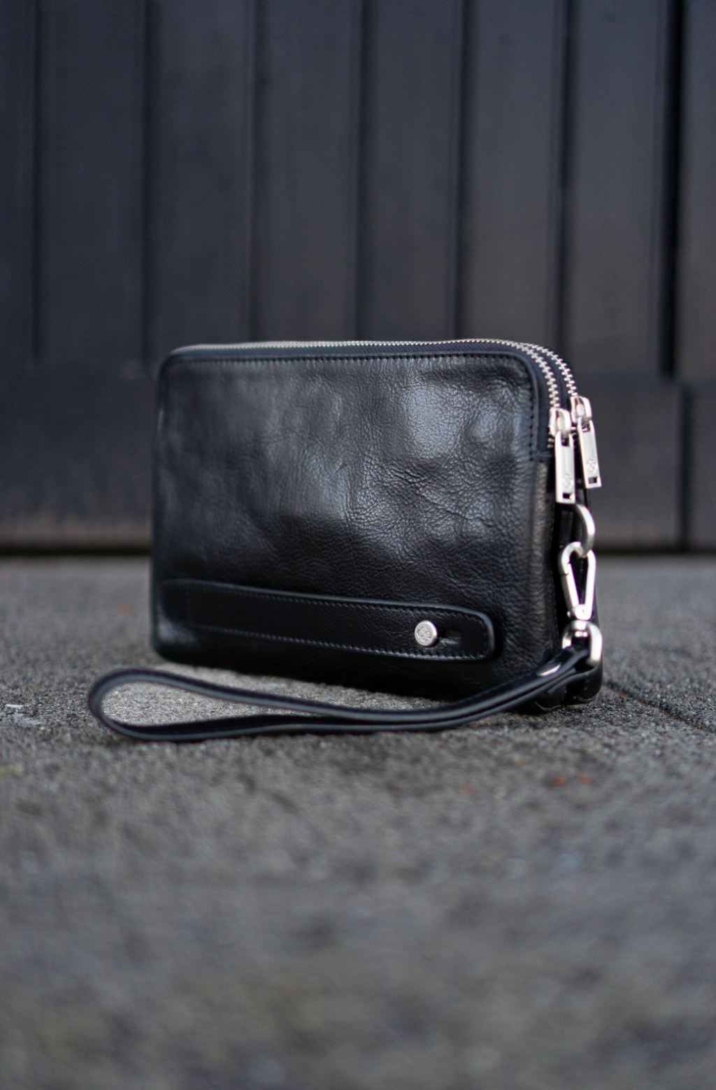 A full-grain leather clutch for a modern man, who isn’t keen on carrying a shoulder bag, but has come to realize that the bulk of his wallet is getting out of control. This clutch wallet provides a more sophisticated alternative to packing your whole life to an overstuffed wallet and the pockets of your jacket. It will accommodate all of your daily essentials and look all business with a touch of sartorial elegance.