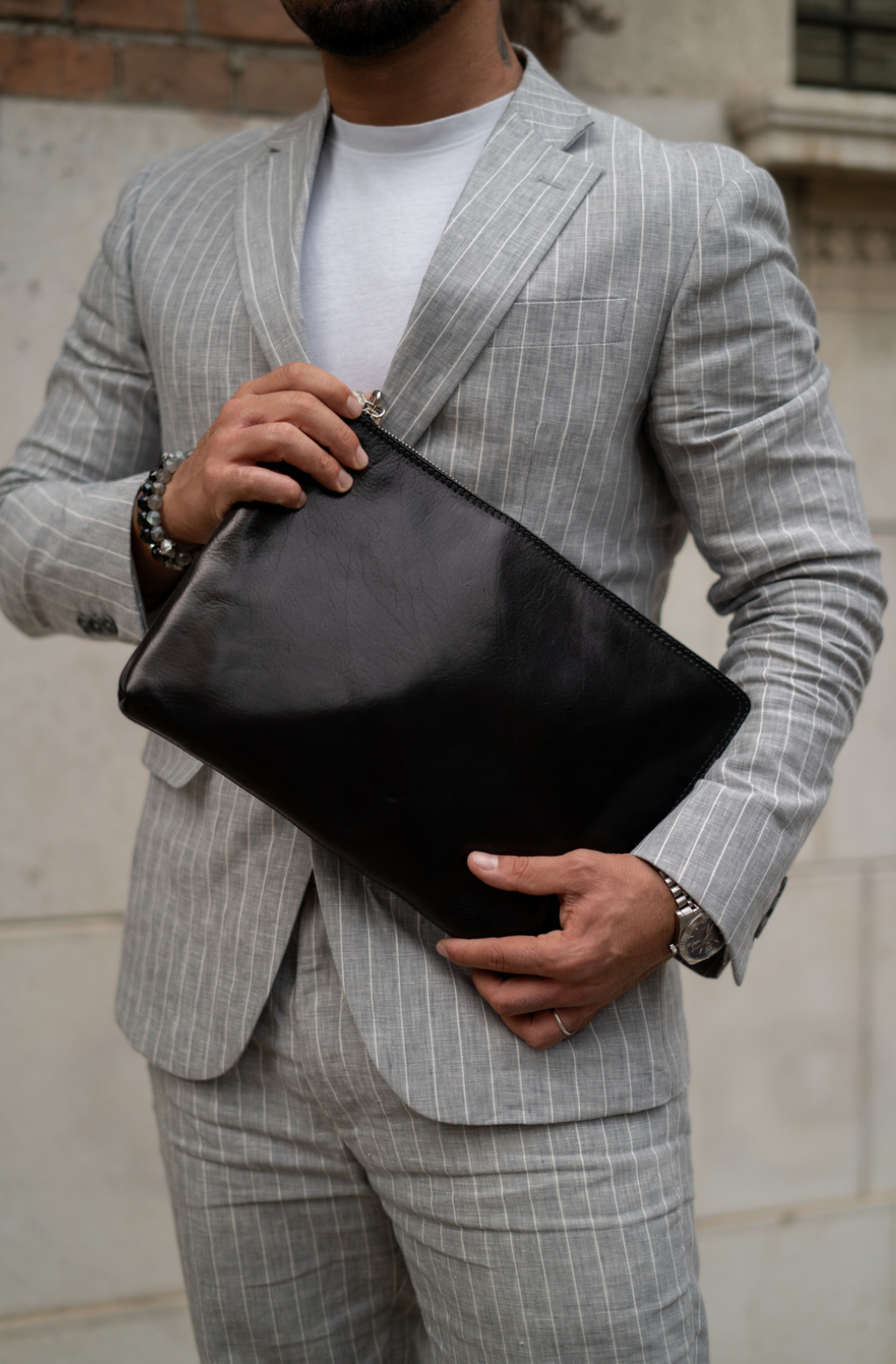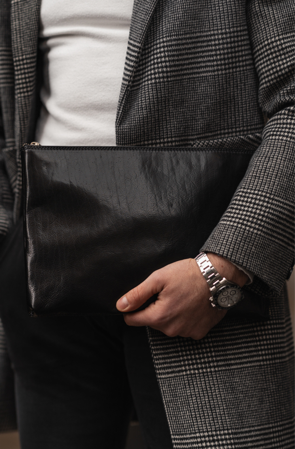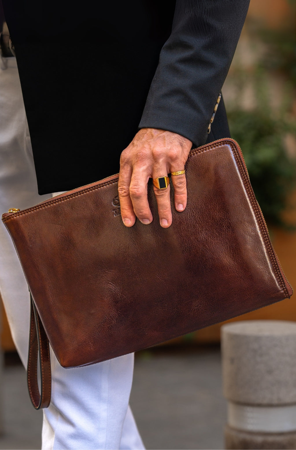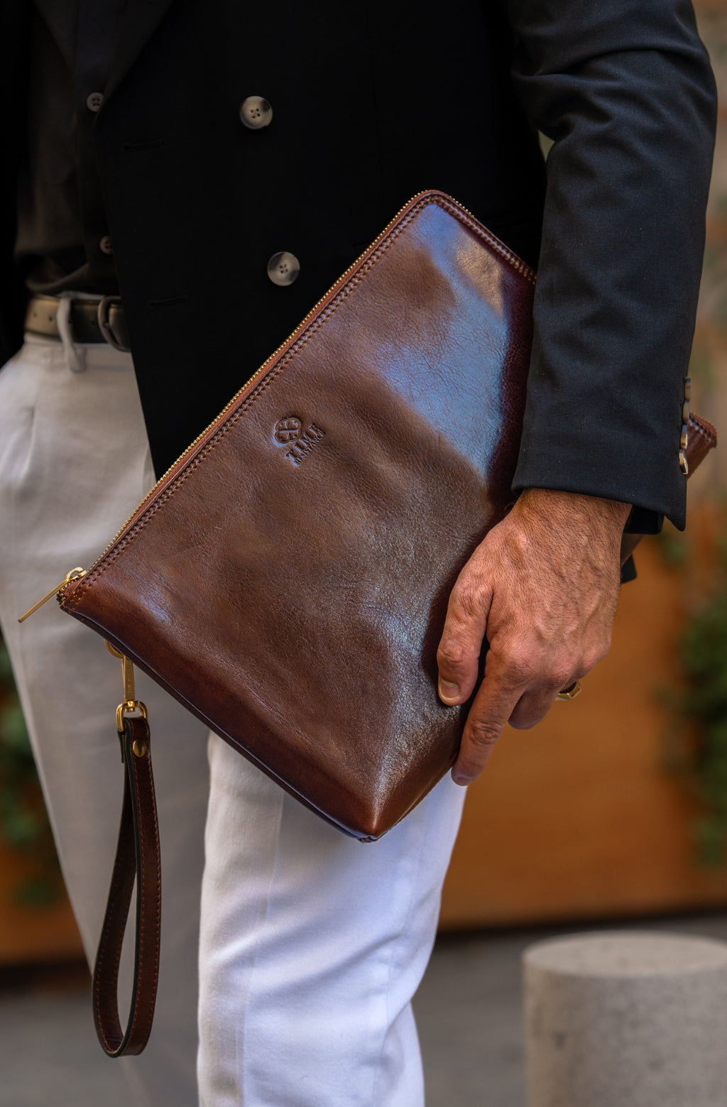 A manly Italian leather clutch purse. Minimalist design, perfect for those who like simplicity without renouncing elegance. It will accommodate all of your daily essentials including smartphone, small tablet, etc. and look all business with a touch of sartorial elegance.