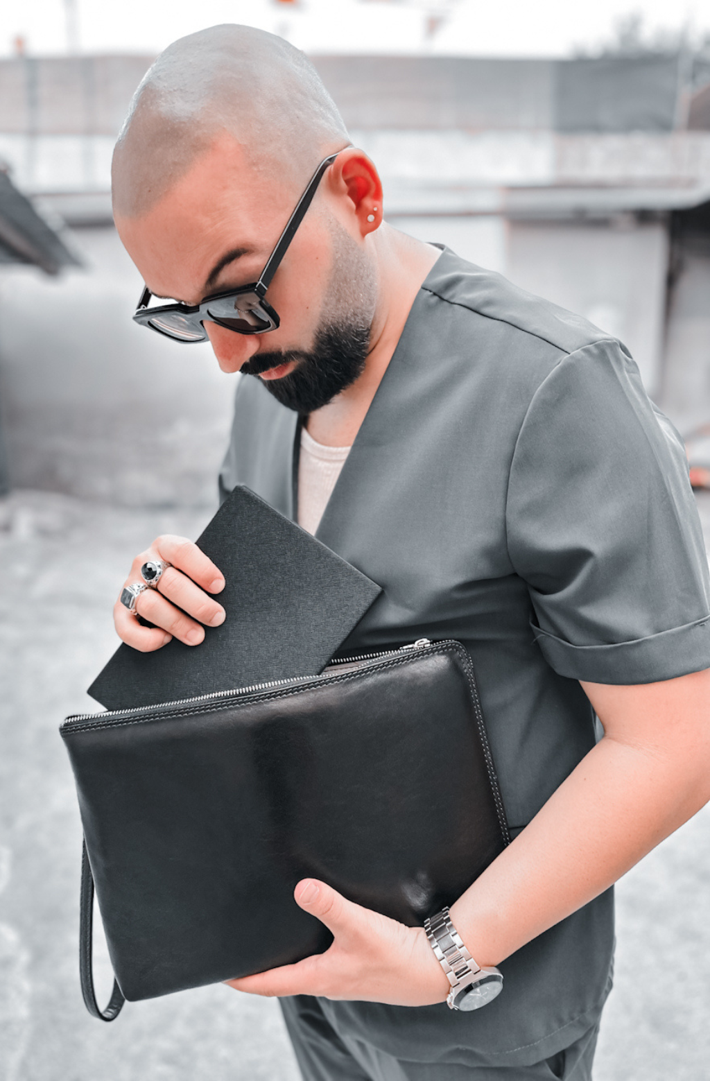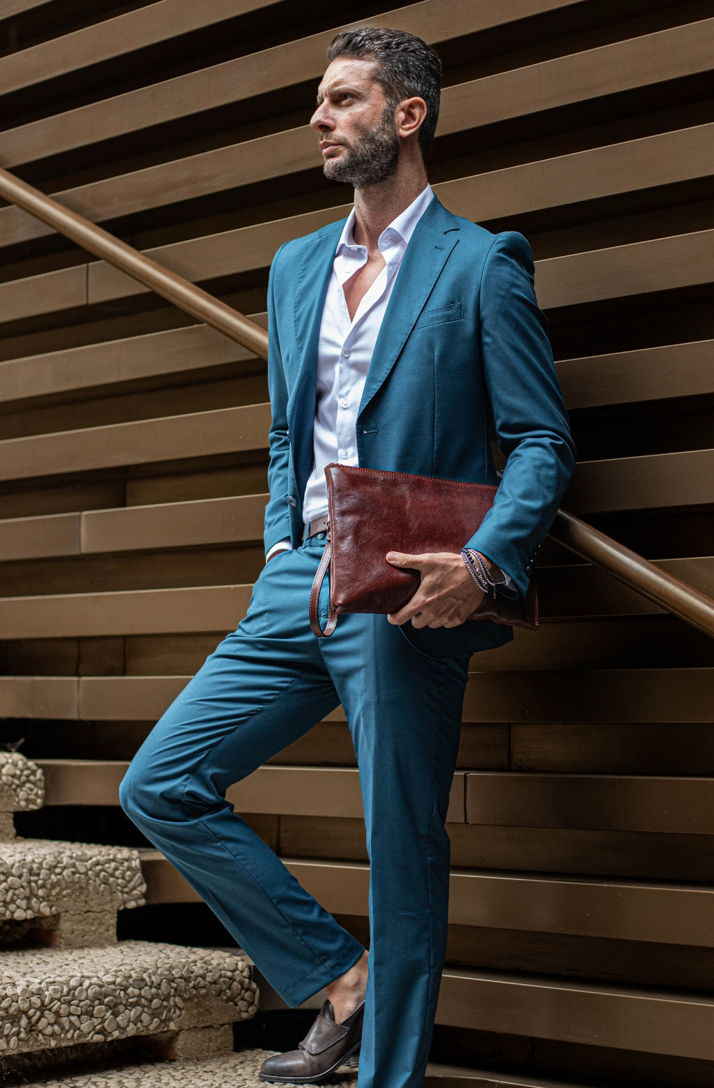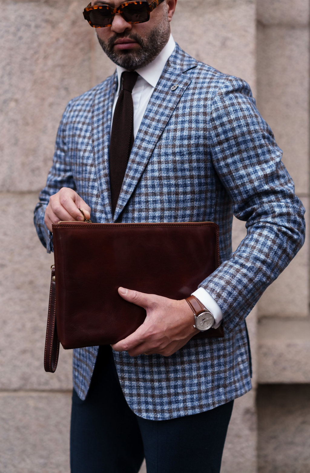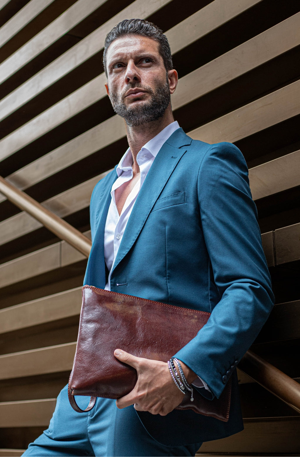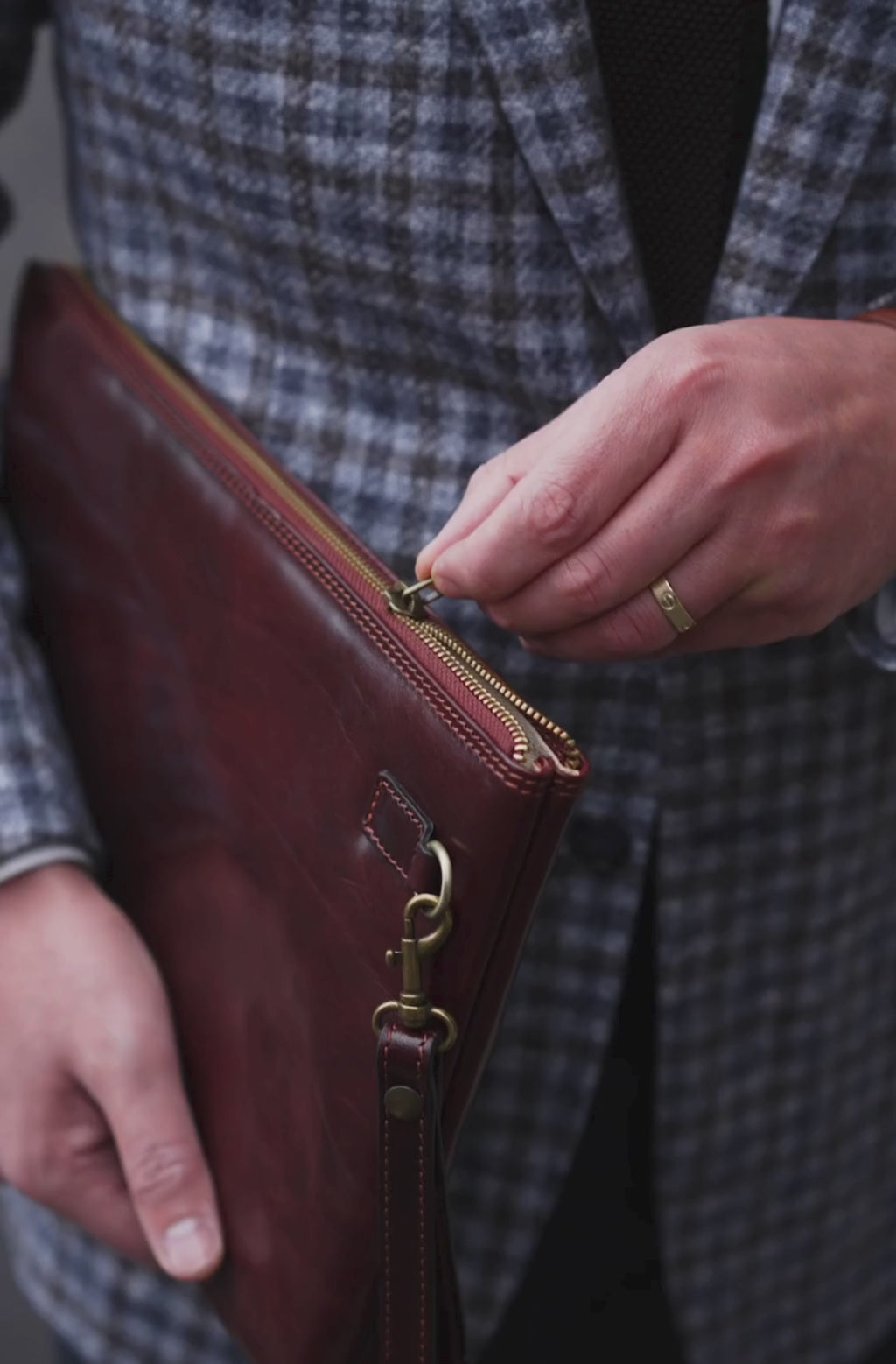 A manly Italian leather clutch purse. Minimalist design, perfect for those who like simplicity without renouncing elegance. It will accommodate all of your daily essentials including smartphone, small tablet, etc. and look all business with a touch of sartorial elegance.