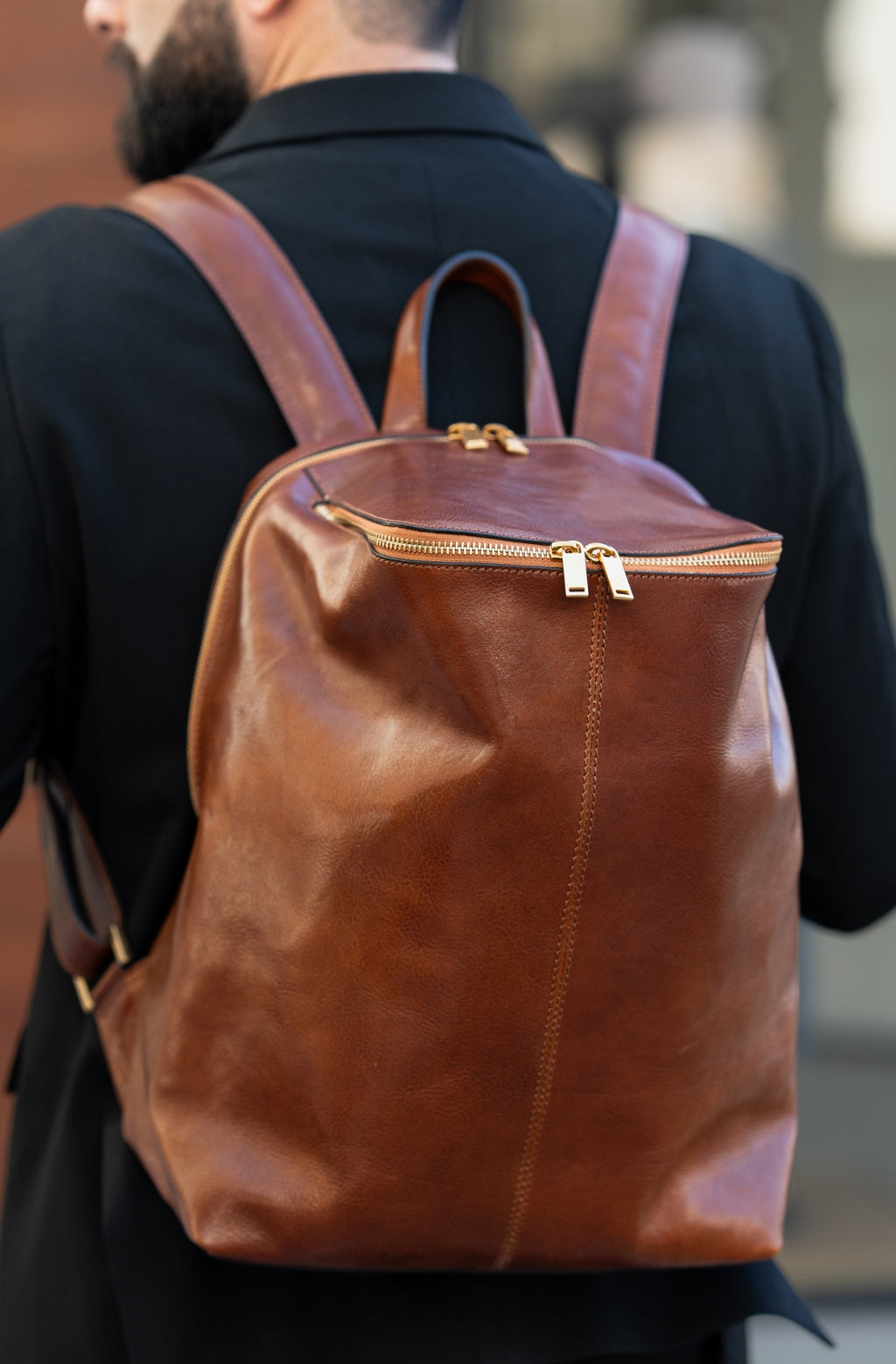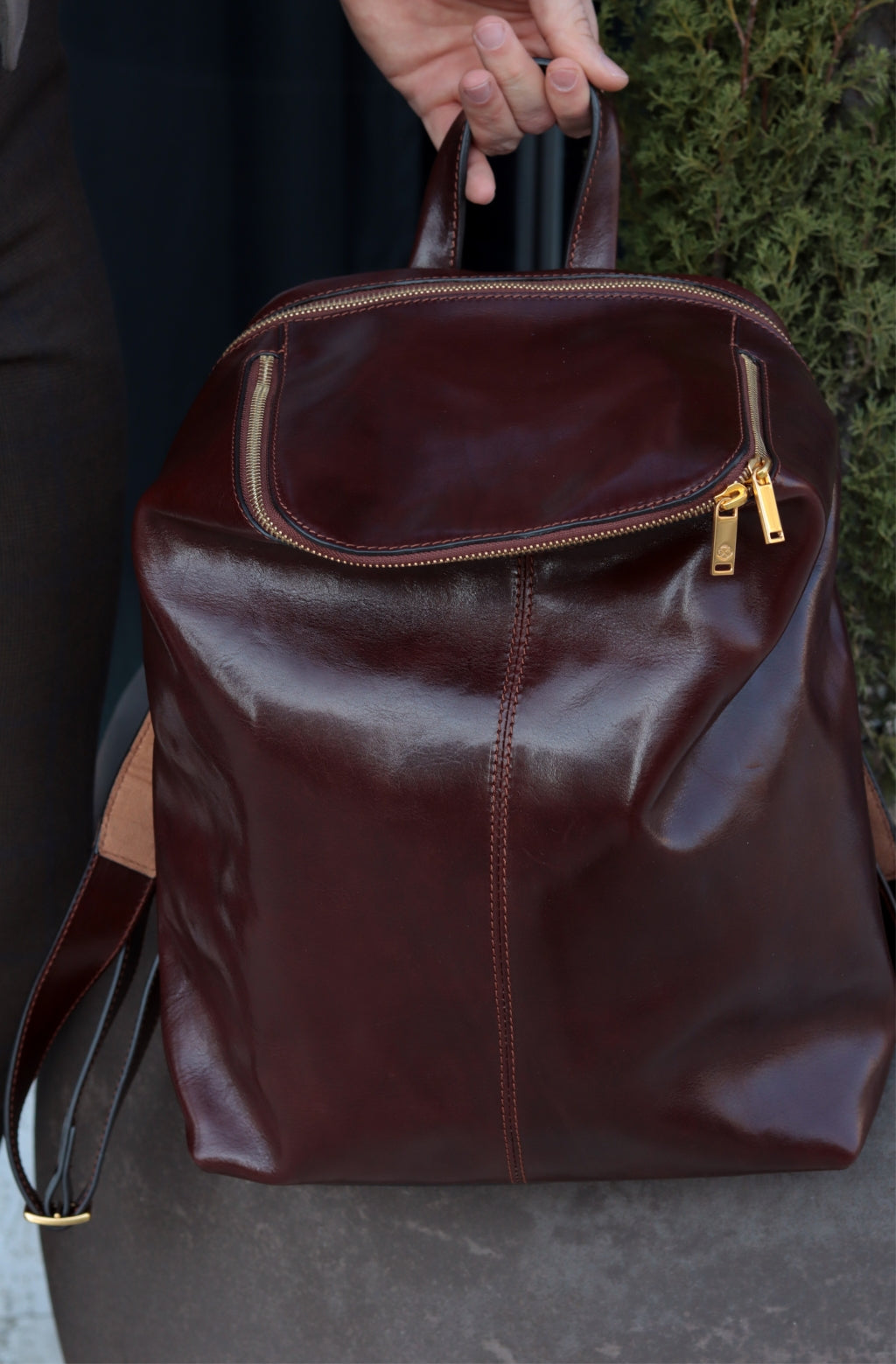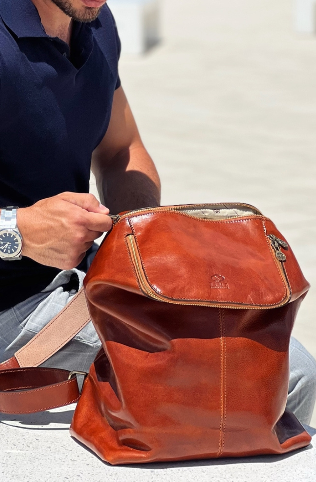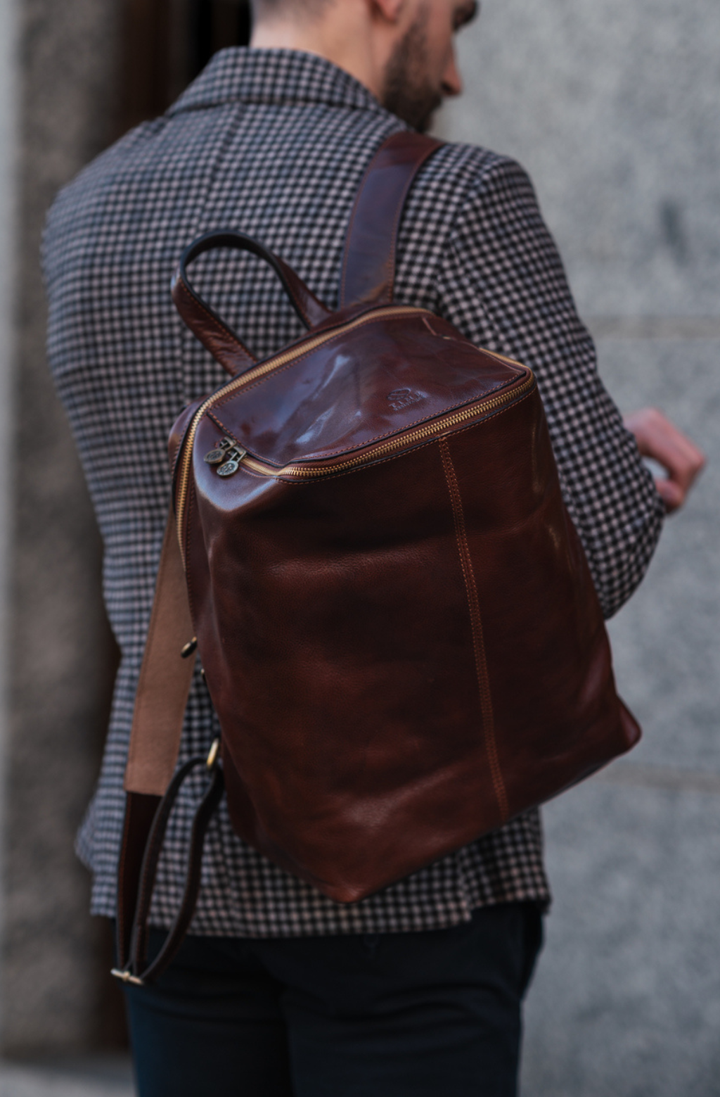 A unique Origami inspired Italian leather backpack A Bend in the River represents our vision in design and function: it is clean yet intricate. Born in the heart of Italy this full-grain leather beauty is a worthy contender in the backpack world. More function, more quality, more travel!