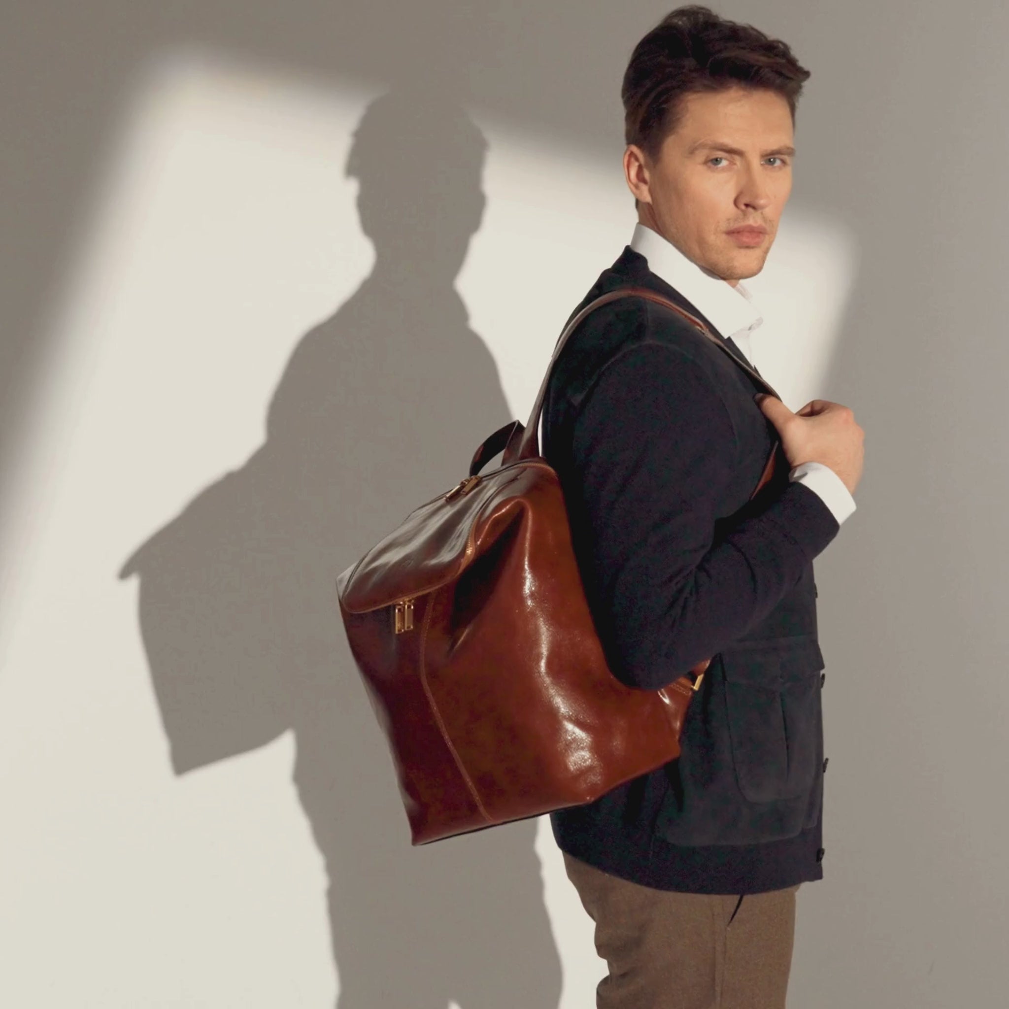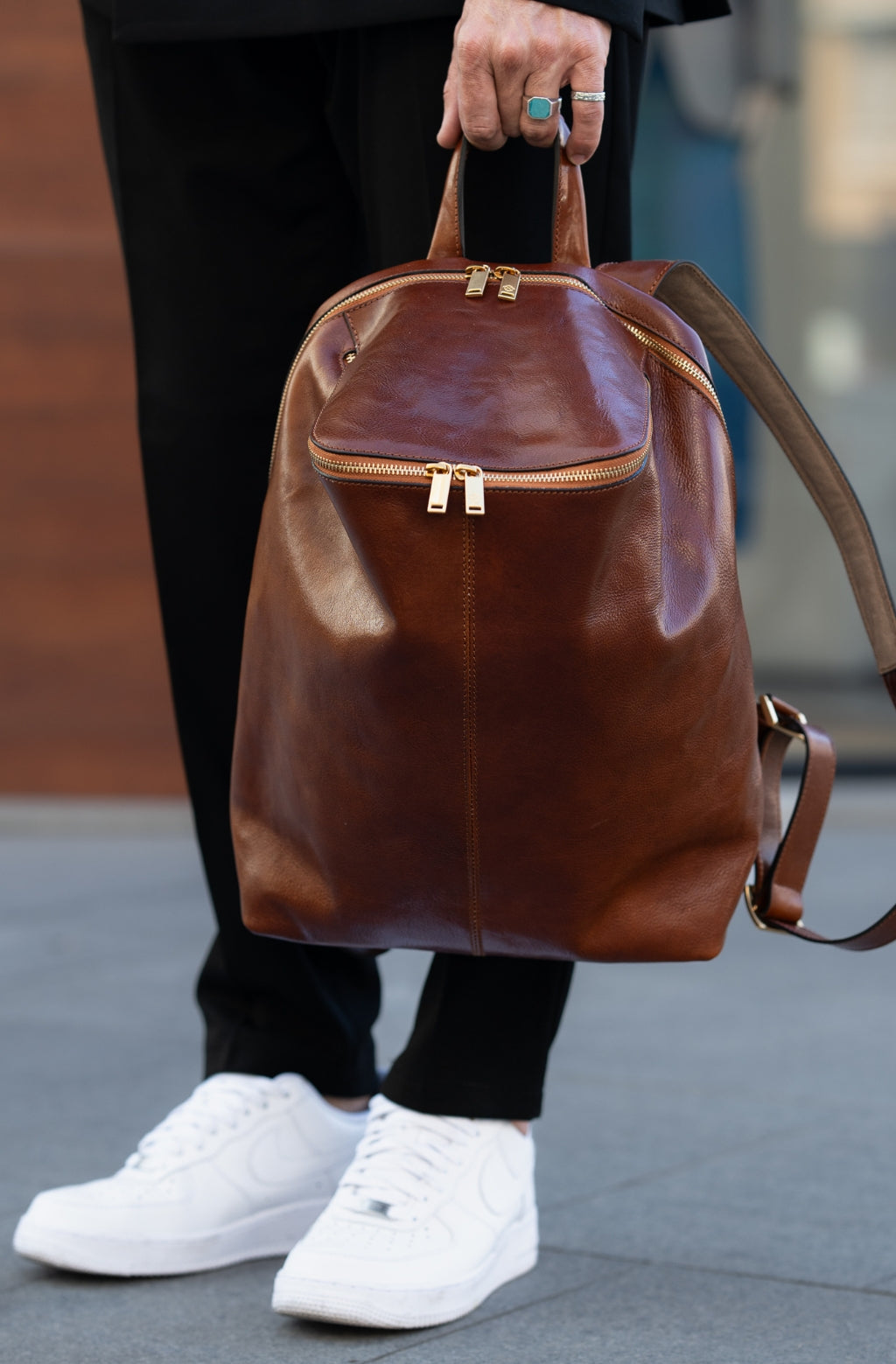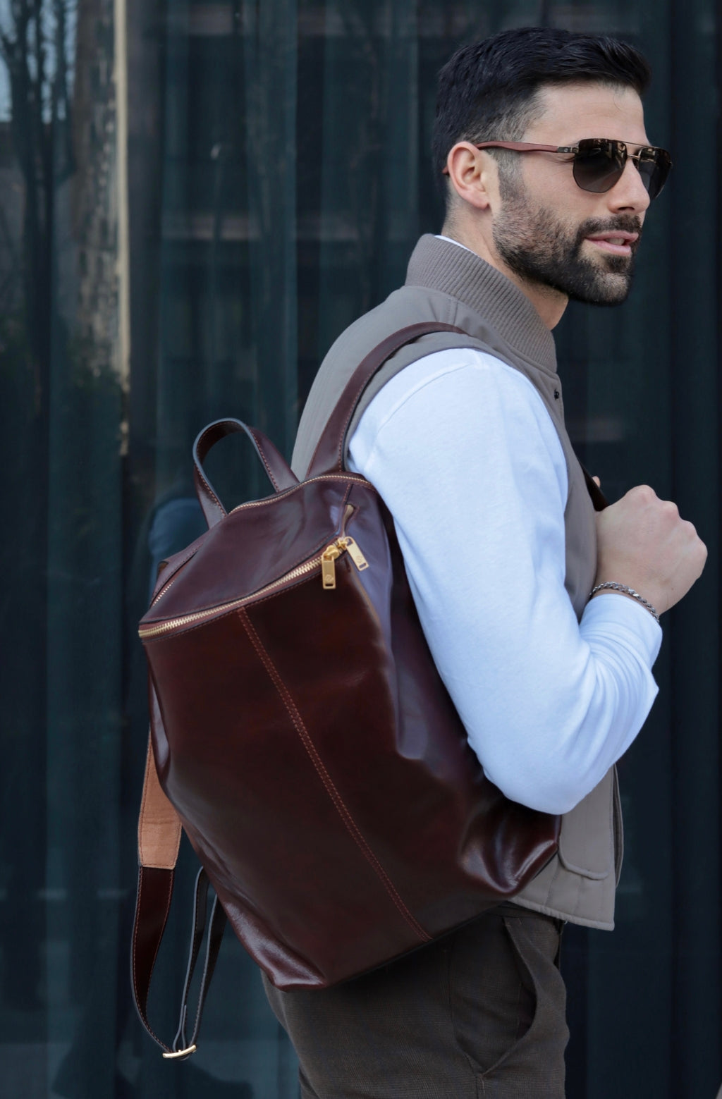 A unique Origami inspired Italian leather backpack A Bend in the River represents our vision in design and function: it is clean yet intricate. Born in the heart of Italy this full-grain leather beauty is a worthy contender in the backpack world. More function, more quality, more travel!