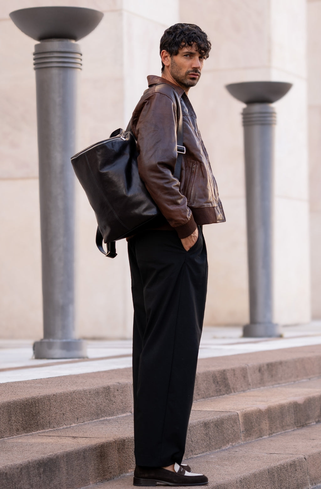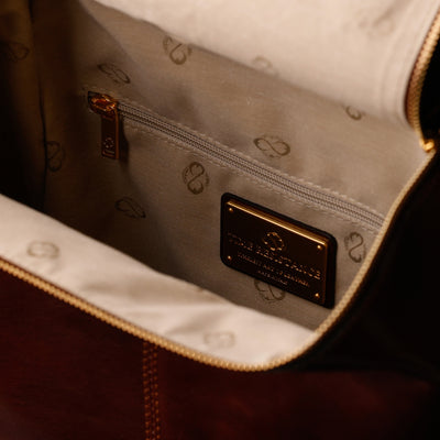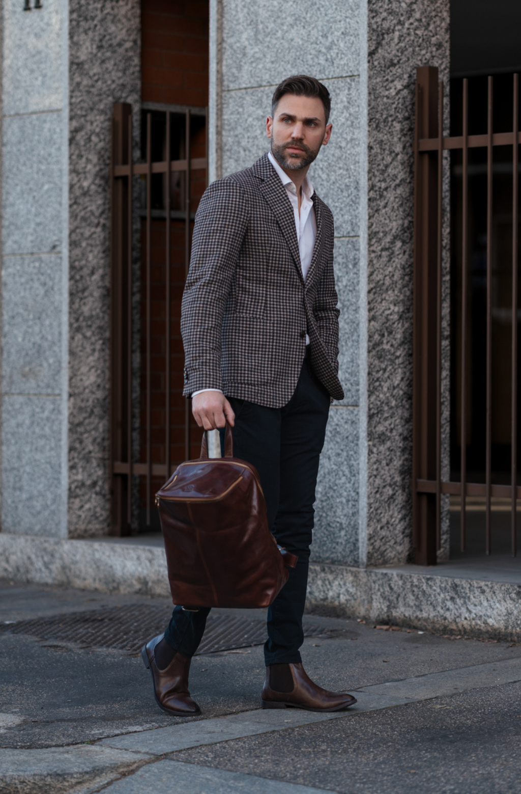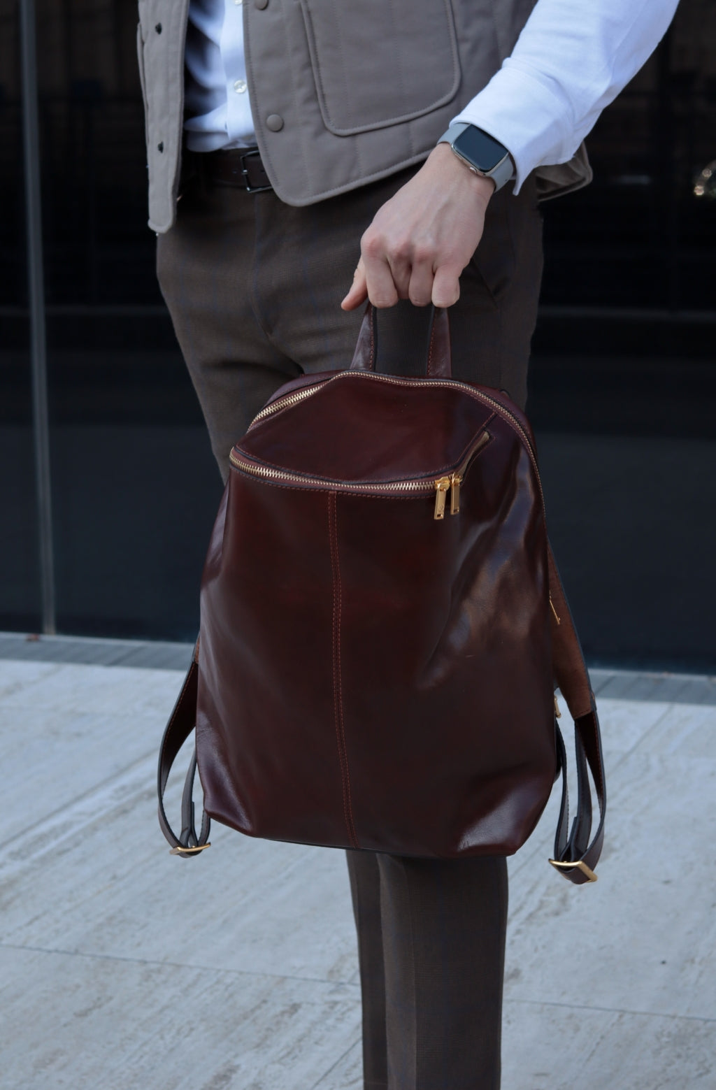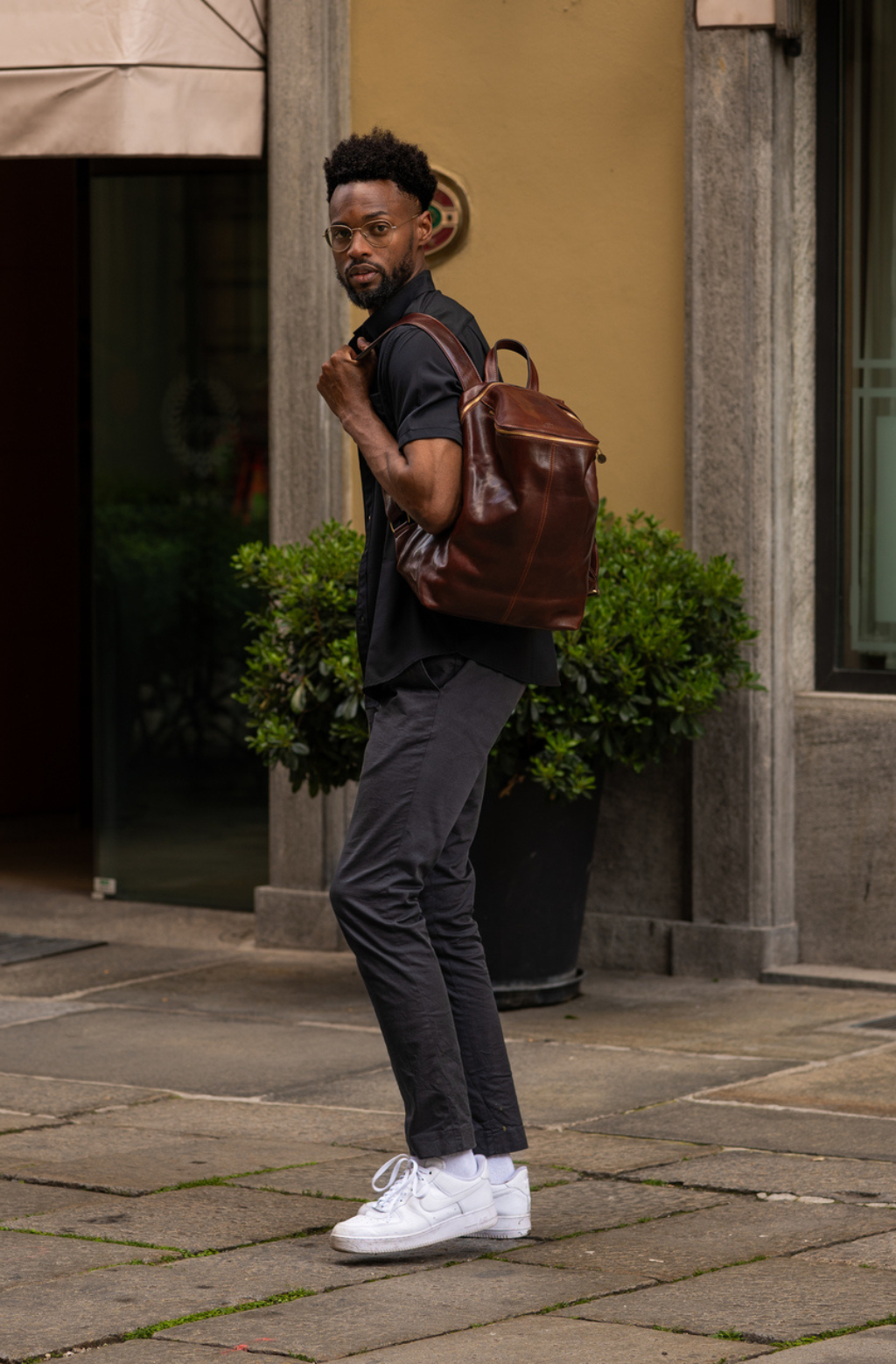 A unique Origami inspired Italian leather backpack A Bend in the River represents our vision in design and function: it is clean yet intricate. Born in the heart of Italy this full-grain leather beauty is a worthy contender in the backpack world. More function, more quality, more travel!
