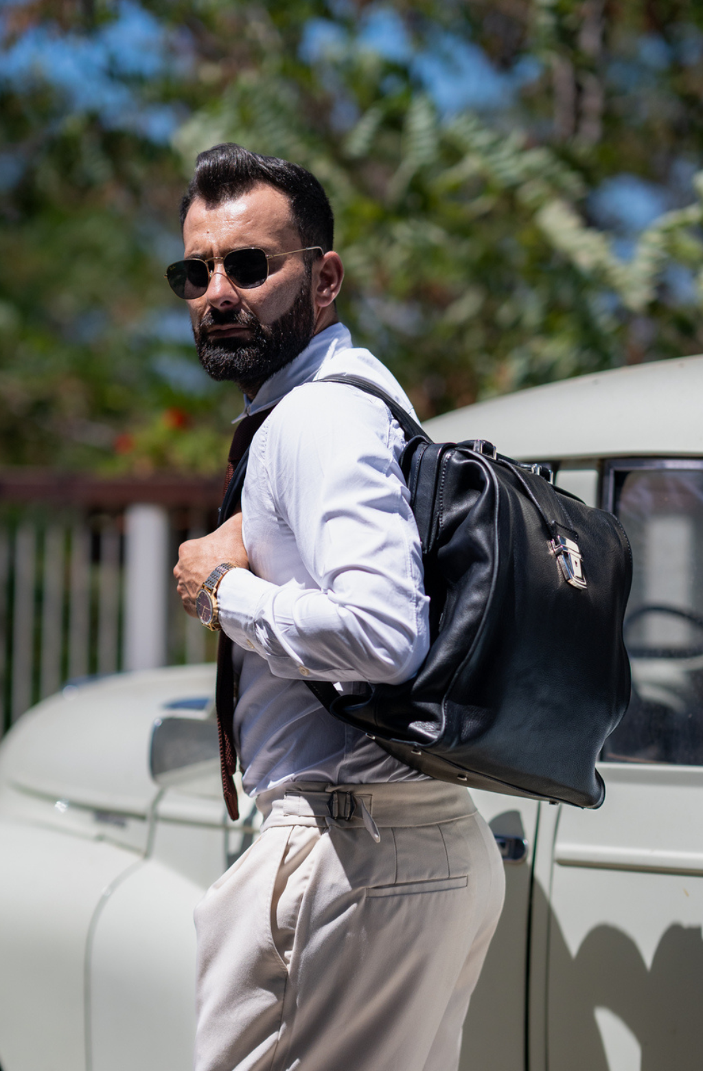 Prepare to hit the books or travel the world with this classic design full grain leather backpack. For those who are expected to look expensive and dashing, but playfully and charmingly all at the same time.