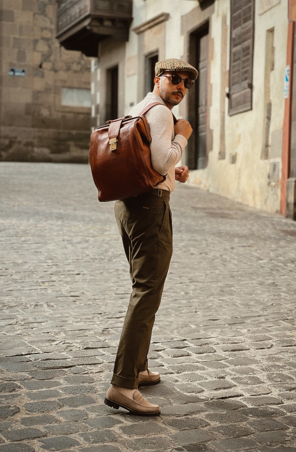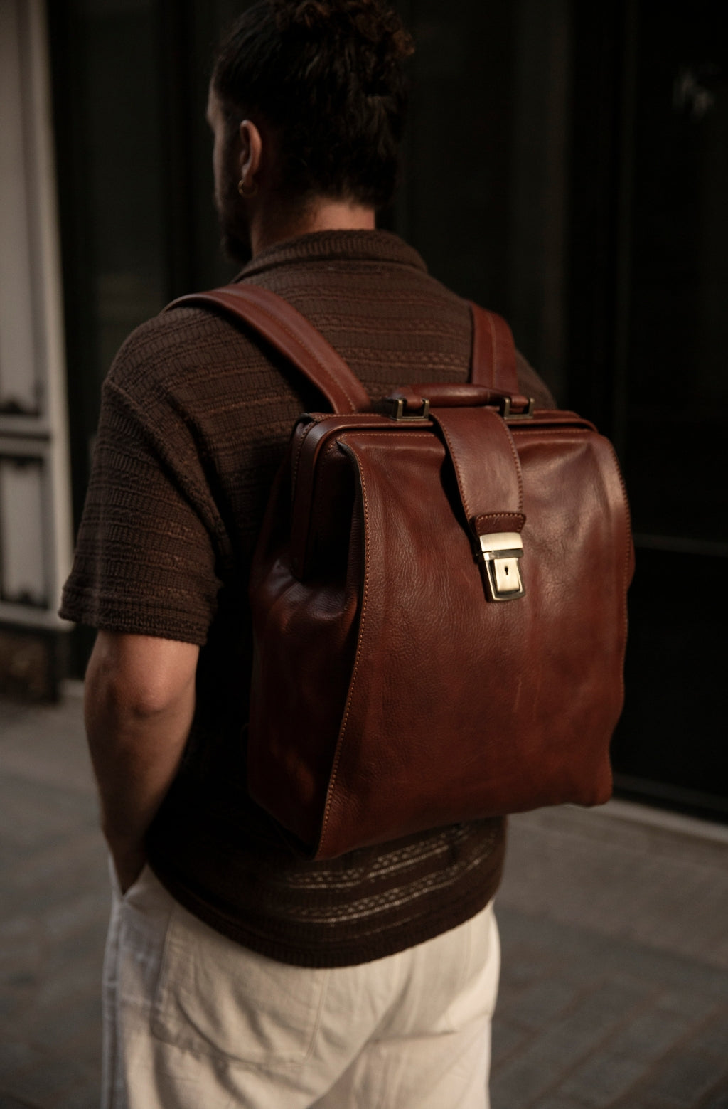 Prepare to hit the books or travel the world with this classic design full grain leather backpack. For those who are expected to look expensive and dashing, but playfully and charmingly all at the same time.