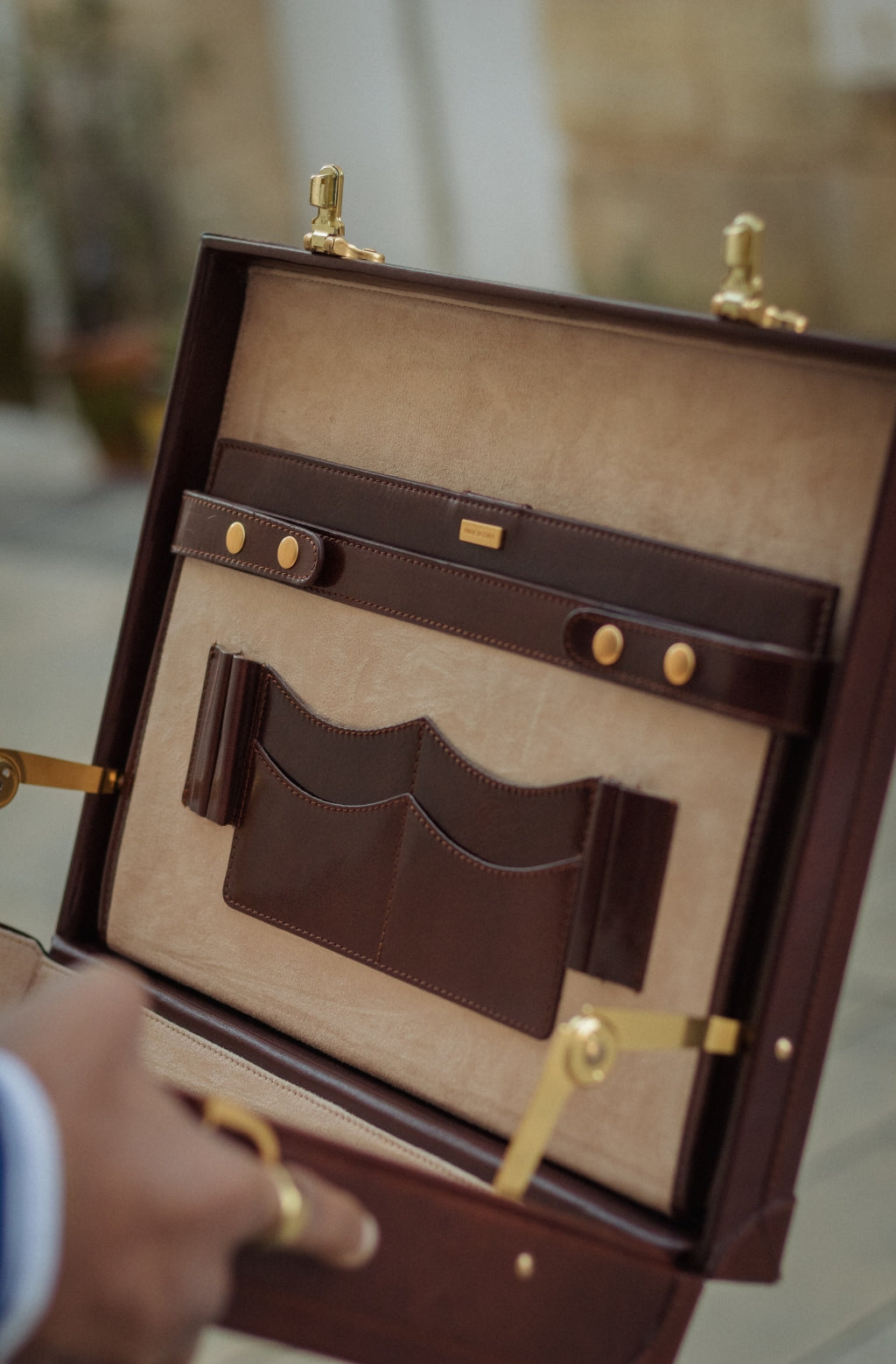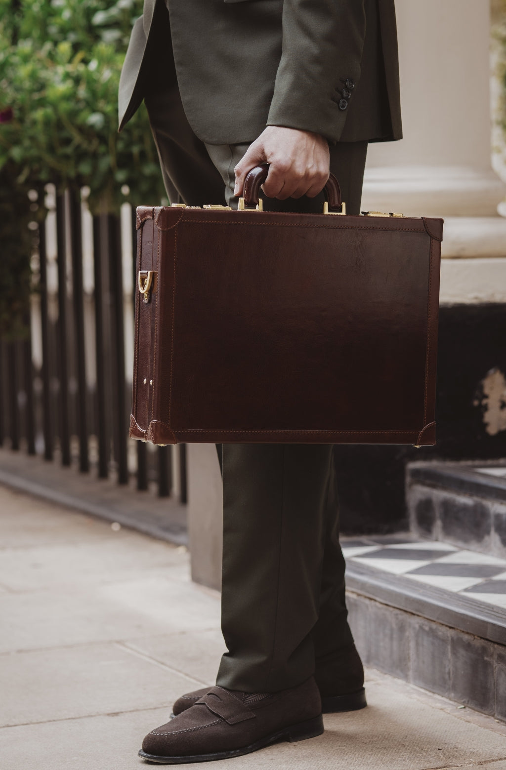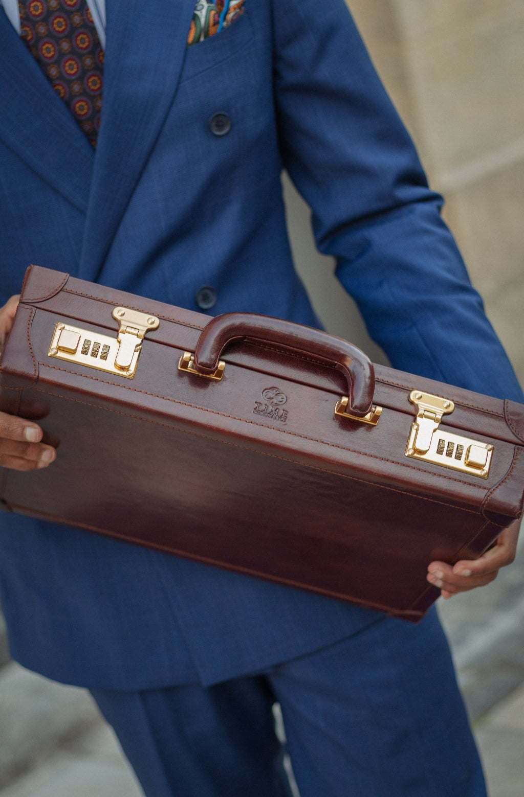 This exquisite attaché case is the perfect companion for the experienced professional. Crafted from the finest full-grain leather, this attaché case is designed to protect and secure your documents and possessions. The combination lock and reinforced corners ensure the highest level of security, while the luxurious finish and subtle detailing elevate the look and feel of the case. Whether you are taking important documents to a meeting, or simply commuting to the office, this attaché case provides the perfect blend of style and functionality.