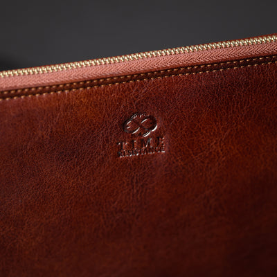 Hand dyeing is a slow, meticulous craft where every hide is colored by hand, layer by layer, using gentle circular motions. Instead of machines, it is the artisan’s touch that controls depth, warmth, and character. The dye is massaged into the grain, allowing the leather to breathe, absorb, and reveal its natural variations.