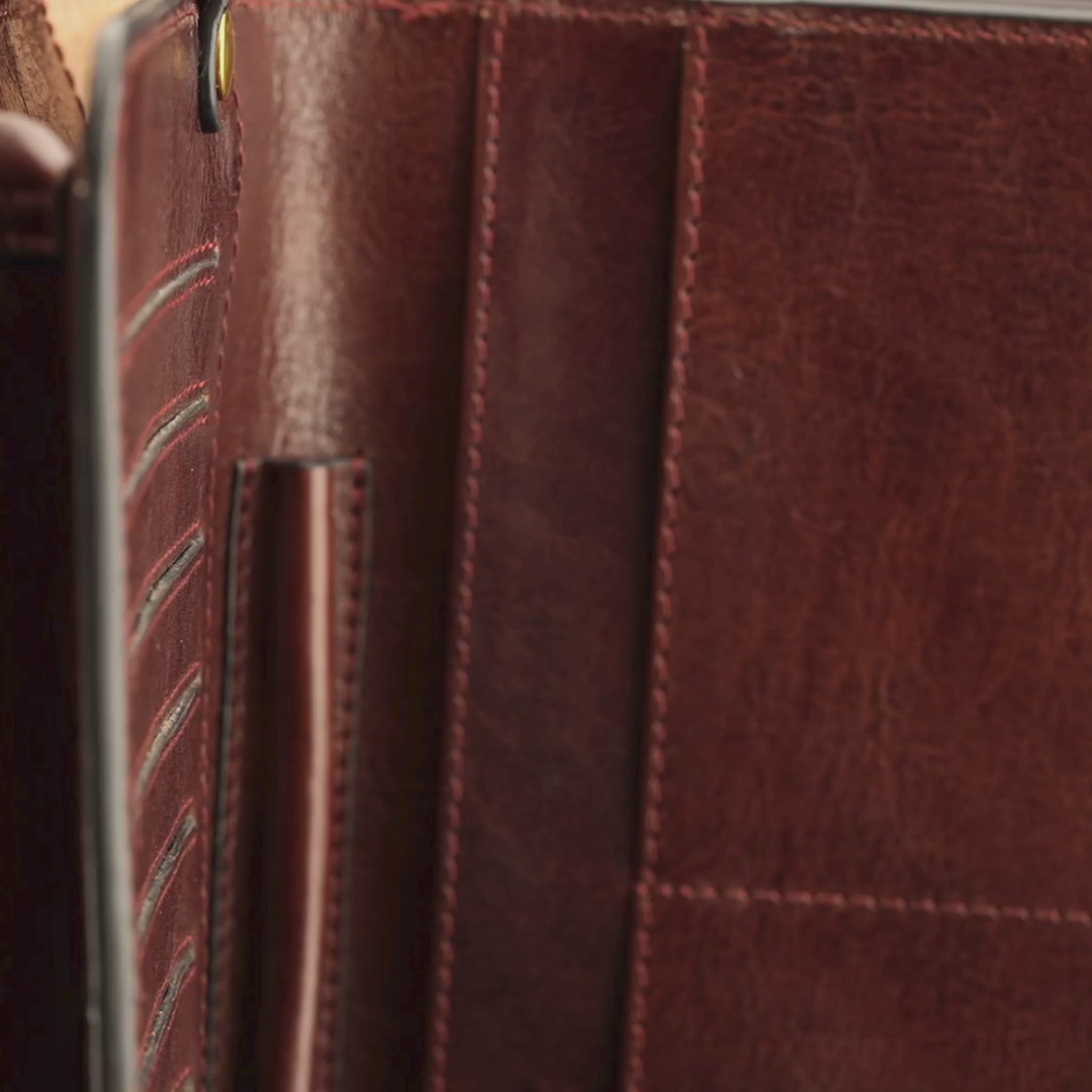 Time Resistance bags and accessories are crafted from premium full-grain, hand-dyed, vegetable-tanned Italian cowhide, known as Vachetta leather, which develops a beautiful patina and ages gracefully over time.
