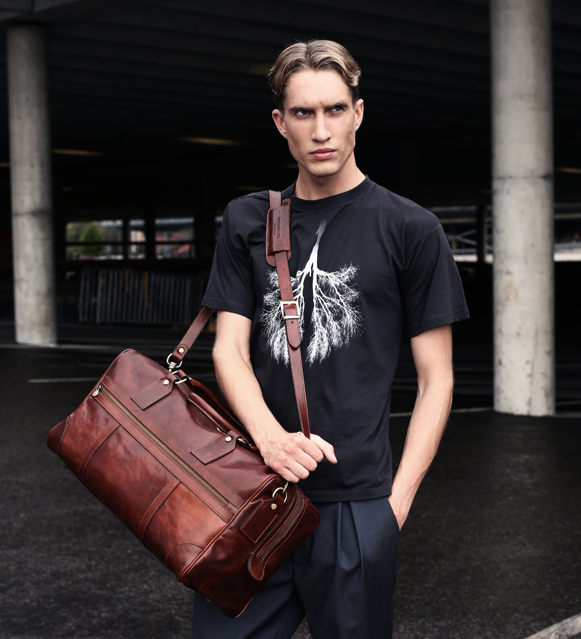 In the tapestry of travel, "To the Lighthouse" emerges as a steadfast companion, a silent witness to the adventures that lie ahead. Crafted with meticulous care, its sturdy exterior not only hints at resilience but also beckons with the promise of journeys yet to unfold. Adorned with two elegant vertical leather straps, and reinforcements in every corner, it blends form with function, adding a touch of timeless elegance to its design while providing additional support for your ventures. Within its spacious confines, memories find sanctuary, nestled amidst the well-worn interior. With every step, it becomes more than just a bag; it transforms into a trusted confidant, a guardian of cherished moments. Let "To the Lighthouse" be your faithful companion as you navigate the intricate pathways of travel, an emblem of resilience amidst the ever-changing landscapes of life's grand adventure.