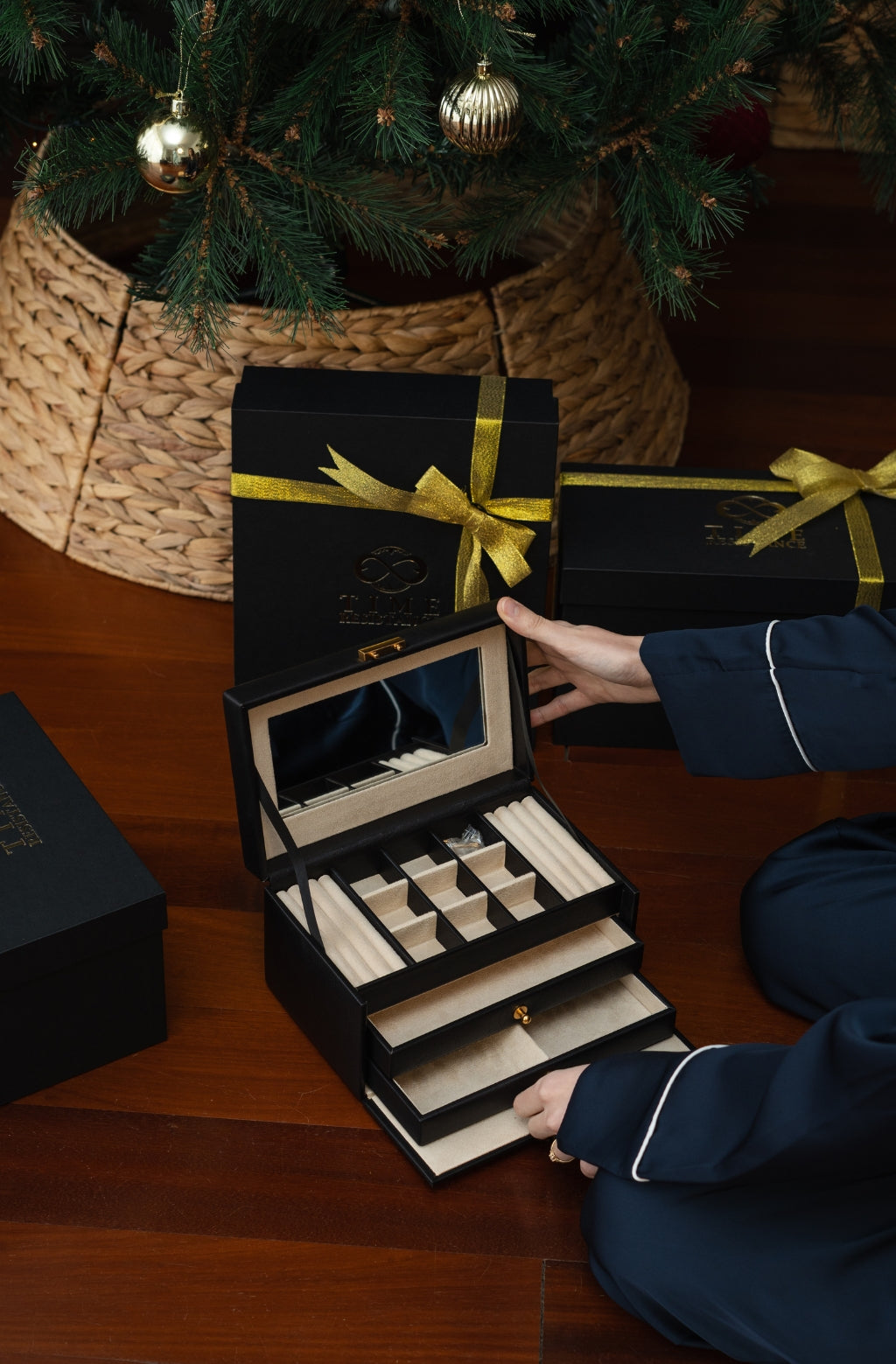 Our royal appearance Leather Jewelry Box will bring a touch of luxury to your dressing table. With a smell of Italian elegance, this jewelry box will provide a secure home for your valuable accessories. Lined with soft textile to protect delicate jewels and precious metals. Make your jewelry organized and protected!