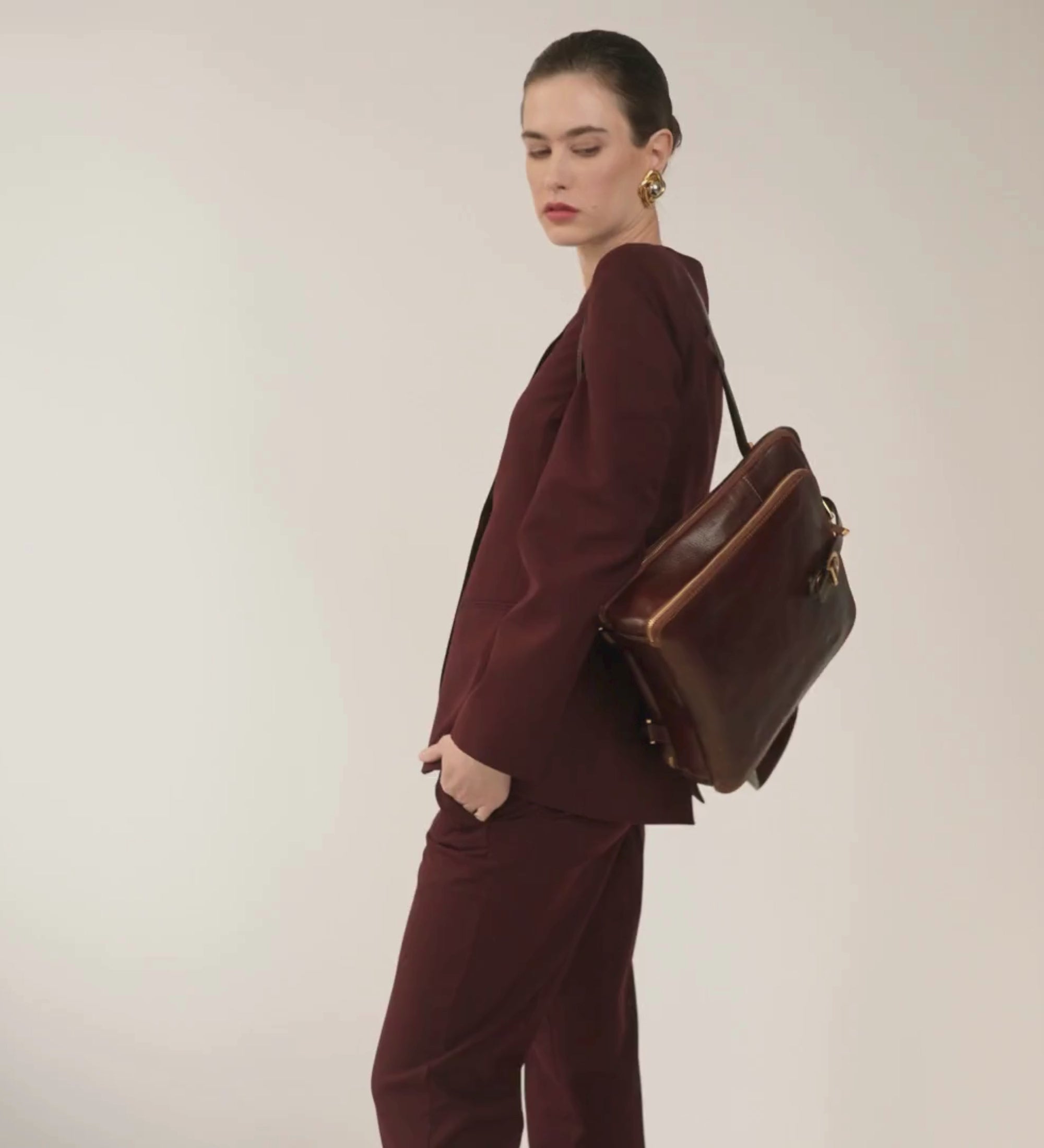 Women’s full-grain leather backpack that has absolutely nothing to do with activewear. In fact, throw away every thought you’ve ever had about backpacks. This accessory is for an elegant, polished lady with an innovative attitude. Innovation often comes from reinventing the classics and Clarissa is a sharp looking backpack that combines business with personality. It will never be surrounded by 20 identical clones. Moreover, the backpack easily converts to a shoulder bag with the simple pull of the straps.