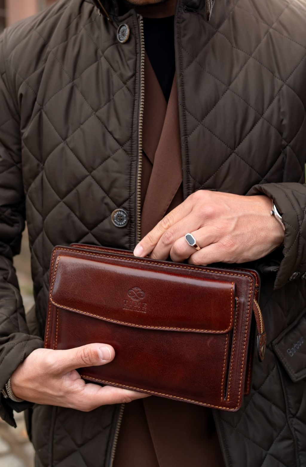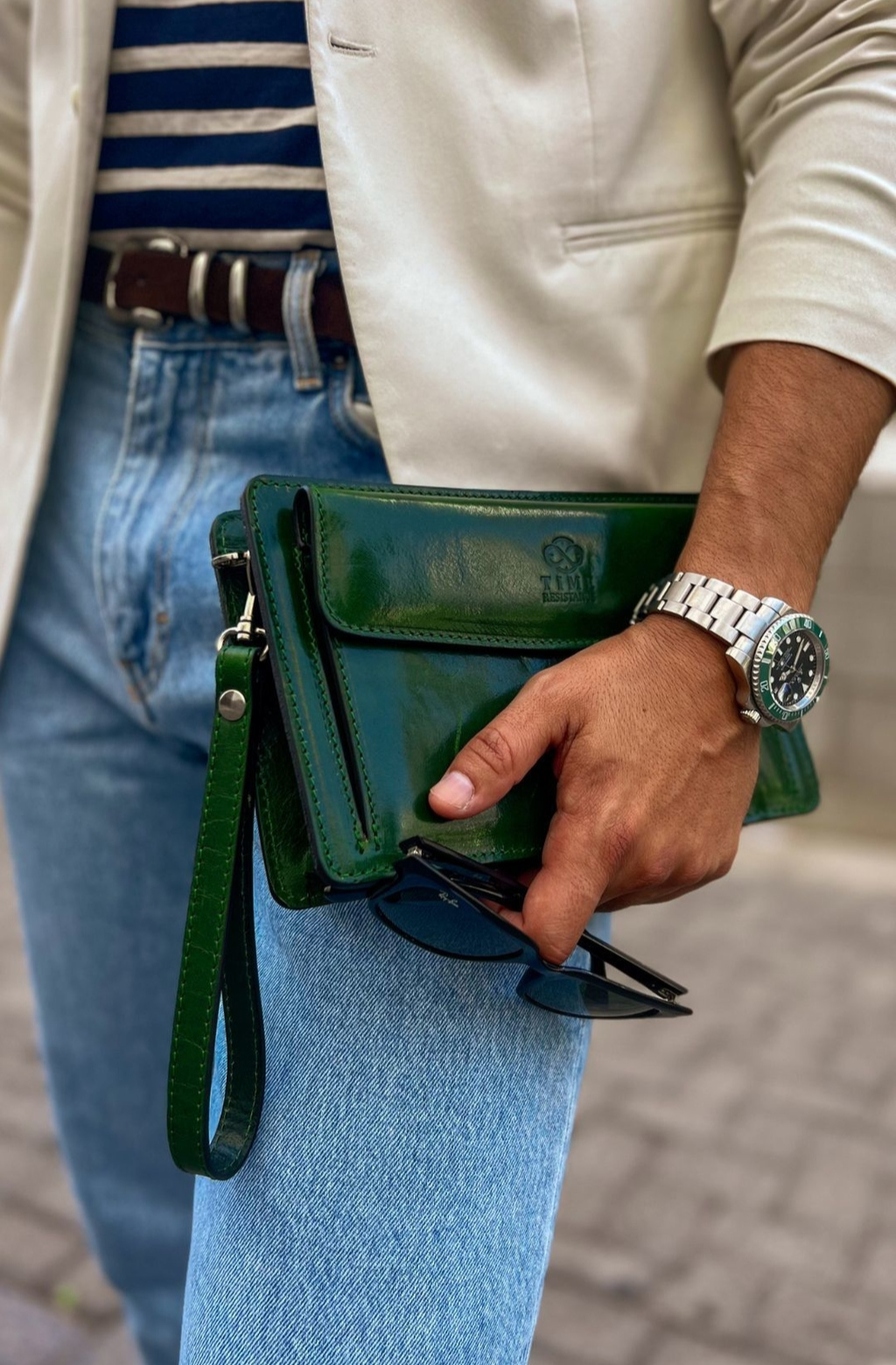 A classic and smart design leather clutch is what we always wanted to add to our collection. Pair it with a dressy look or jeans – it will perfectly compliment both looks. A full grain Italian leather clutch Decameron is what it takes to keep your essentials organized. A premium quality leather clutch has two compartments, a zip pocket inside and outside and a front pocket with a magnetic closure which is more than enough to accommodate your wallet, smartphone, keys, etc. It has a detachable wrist strap for easy carry – perfect for a day on the go.