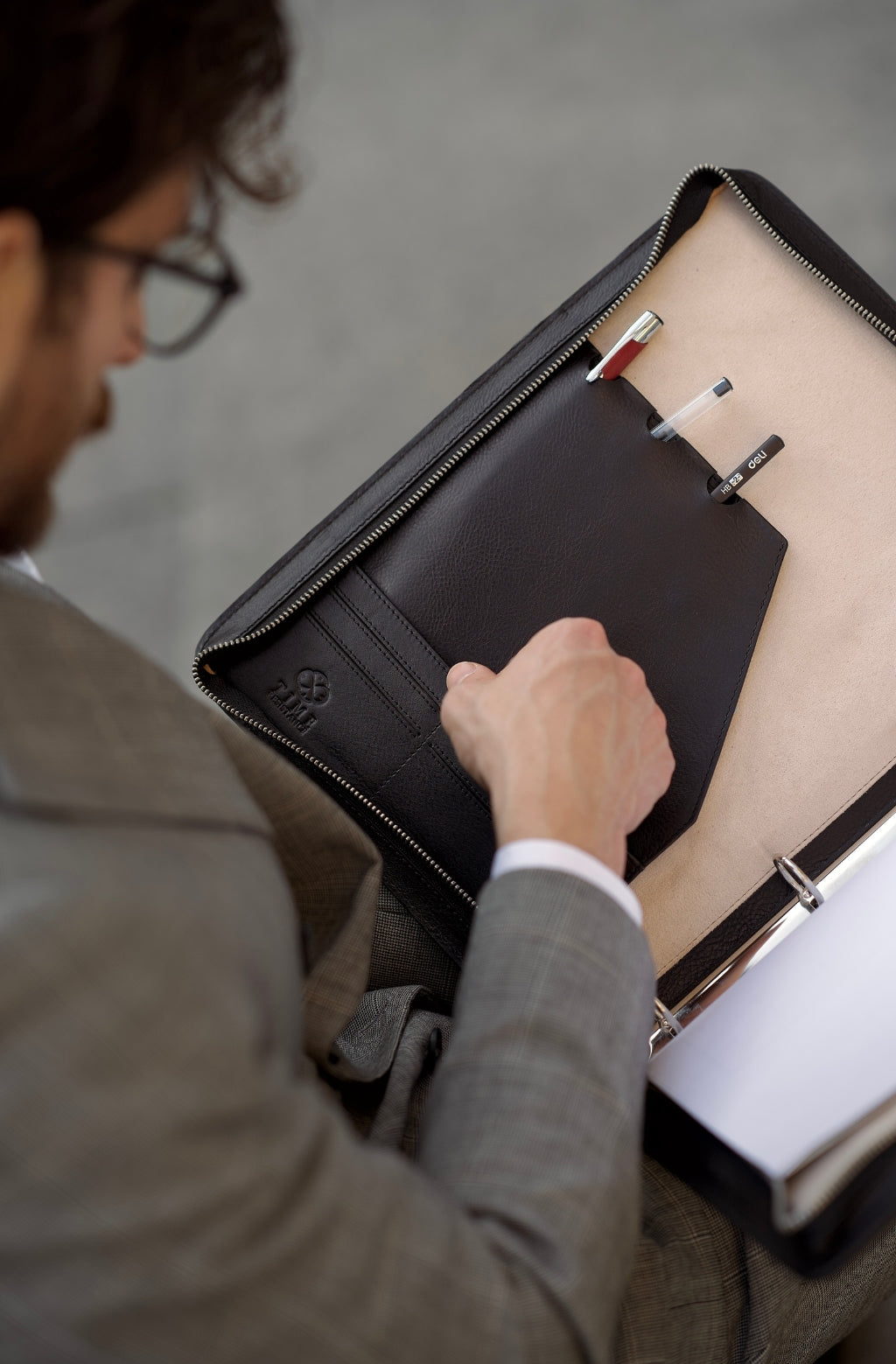 Introducing the "Joy in the Morning" Leather Portfolio, a beacon of professional ambition and confidence. Crafted with precision and finesse, this accessory embodies the essence of success with every stitch. Its sleek and minimalist design, accentuated by a refined handle, exudes a sense of purpose and determination, setting the stage for triumph. As you embrace its zip closure, anticipation swells, igniting the fire of ambition within. Open it to reveal a world of organization tailored to the needs of a driven individual. Each detail speaks to meticulous preparation and attention to detail, reflecting your unwavering commitment to excellence. Step boldly into the morning light with the "Joy in the Morning" Leather Portfolio, where professionalism meets aspiration in perfect harmony.