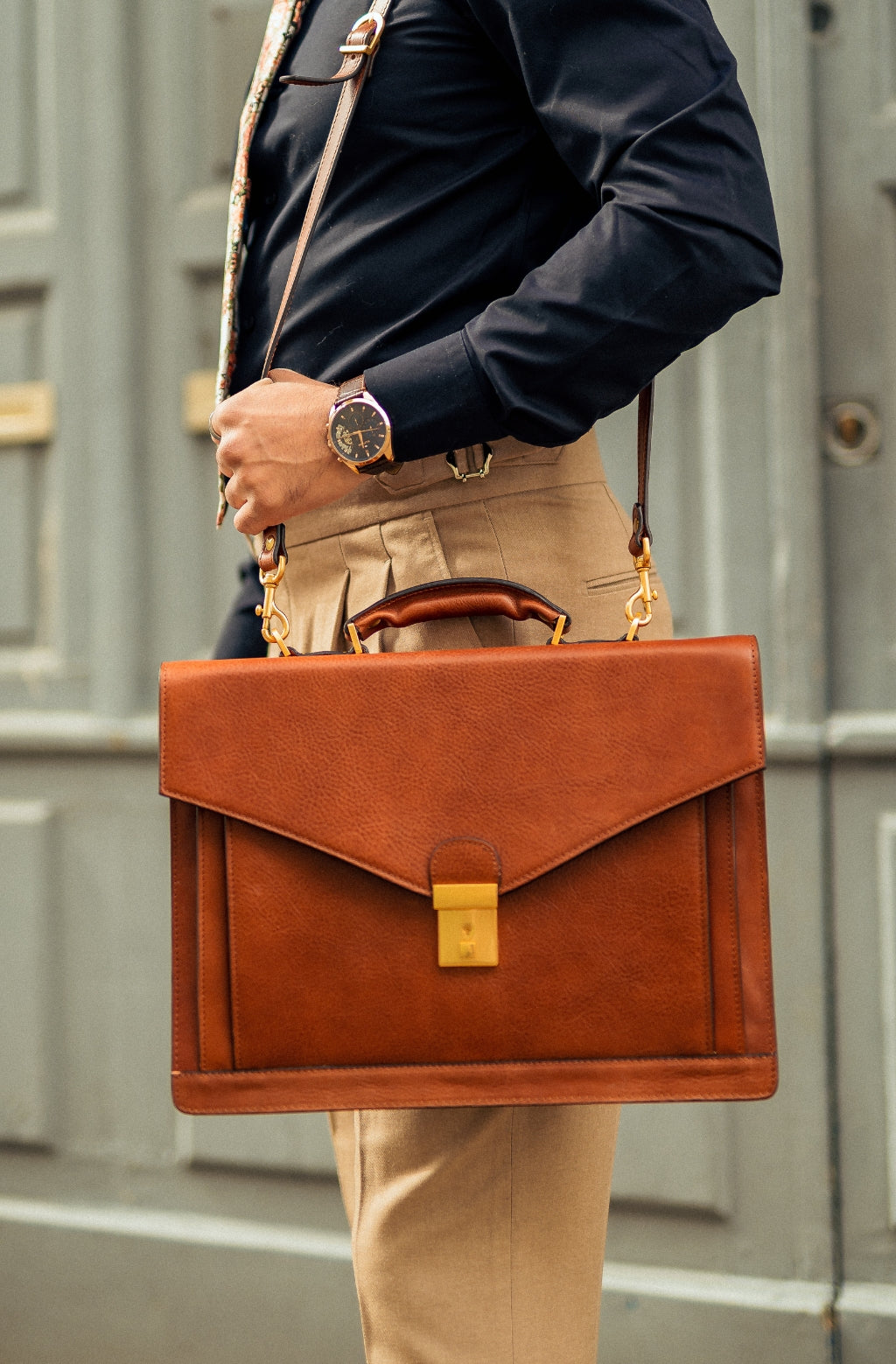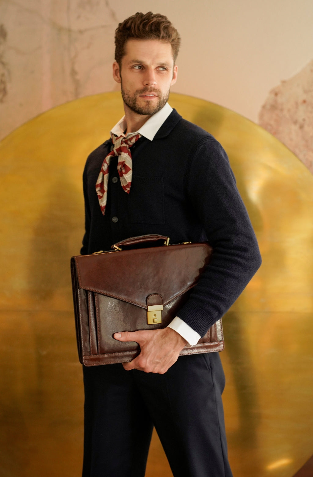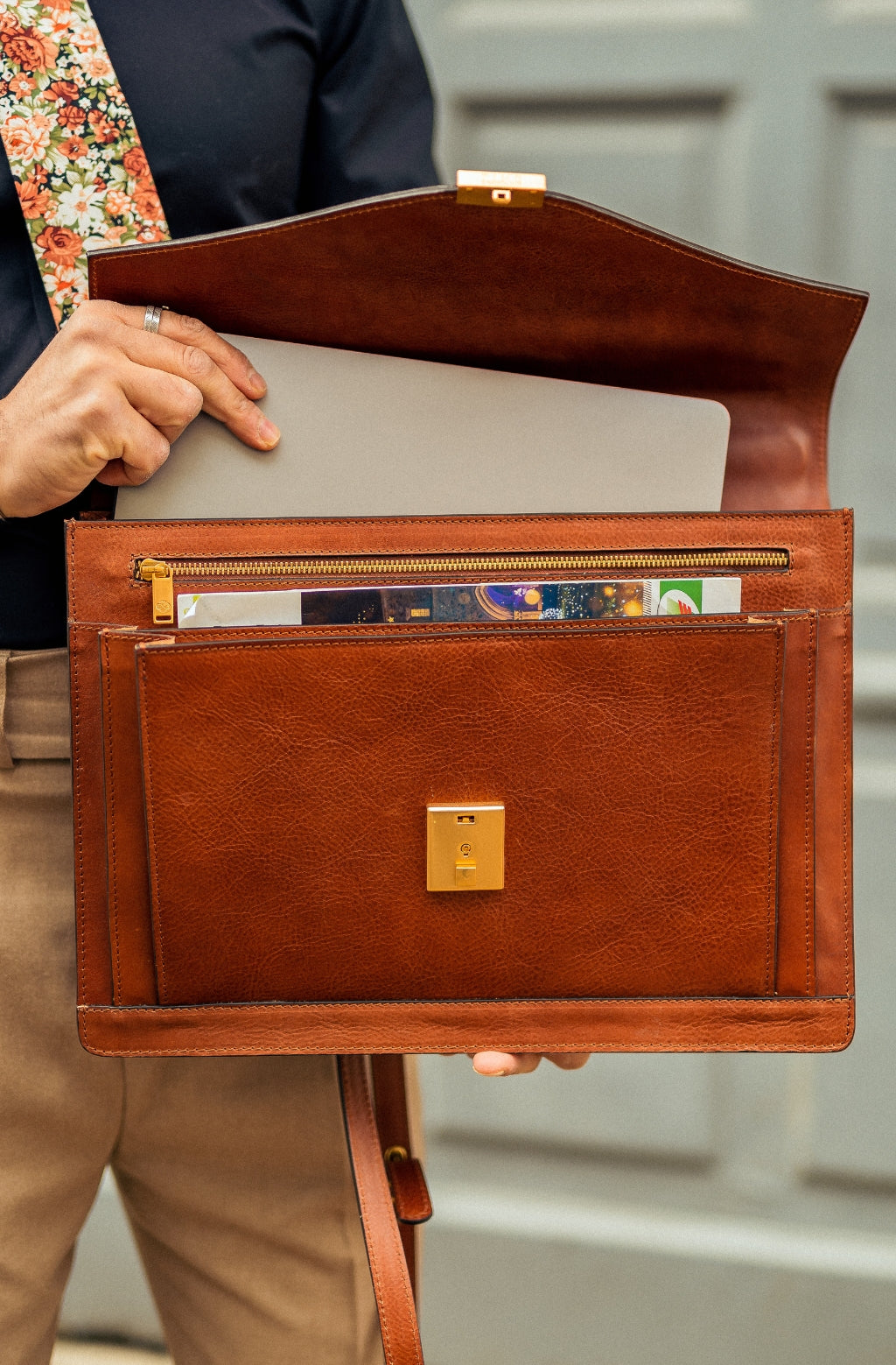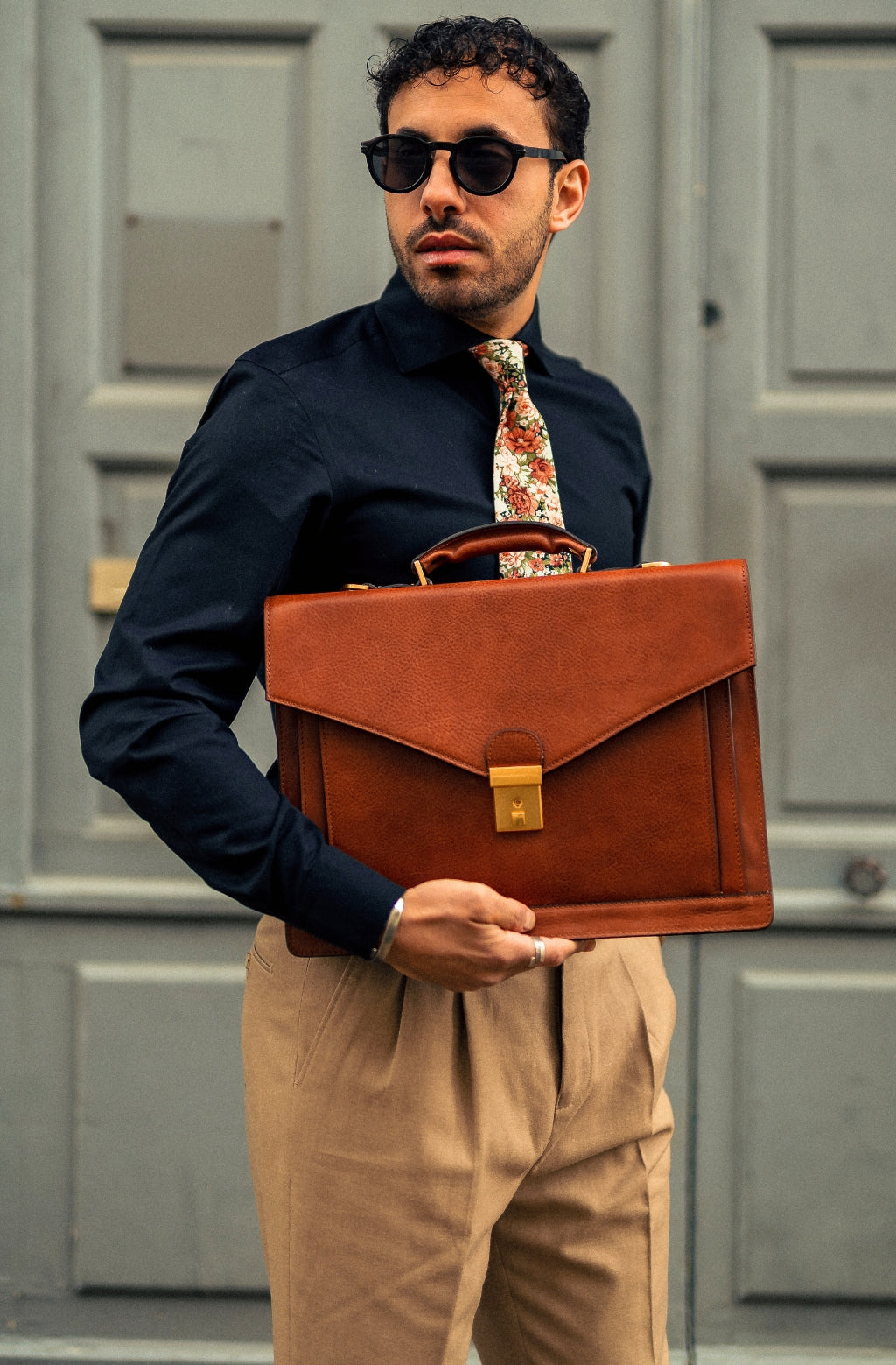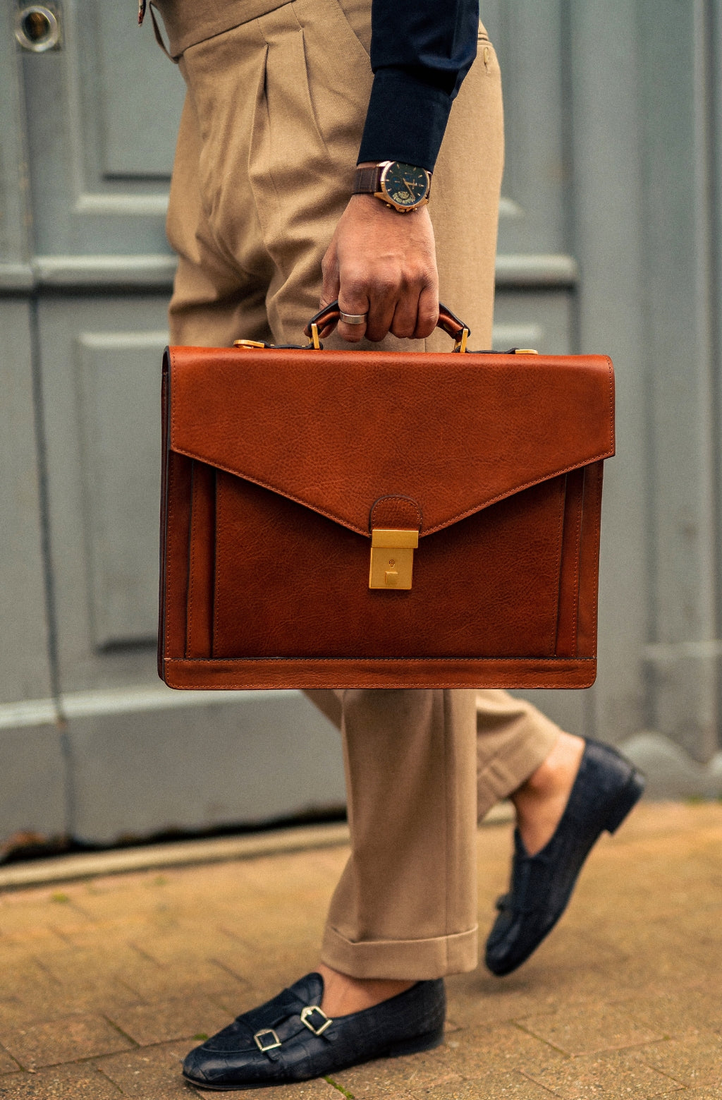 Meet the Magus – a men’s leather briefcase that marries classical design with the practical requirements of modern life. The designs we select are the classical suits of accessories: fitting for any occasion or setting and never going out of style. The Magus can go from university classroom to a meeting of the board of directors, conveying an attitude of seriousness all the way. Pair with ambition.