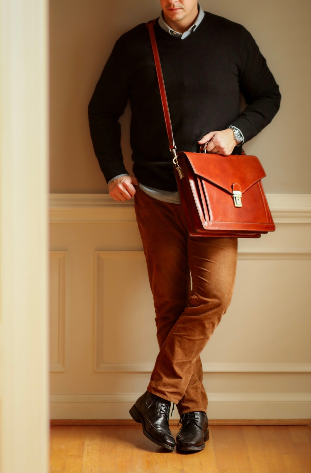 I ordered this briefcase for our law school grad. Your first briefcase should be of quality and if so, will last over your career. When it arrived the first thing to hit me when I opened the box was the genuine leather smell. Intoxicating! The briefcase is gorgeous looking and the inner compartments are lined with a light suede. It has pockets for pens and iphone case. Plenty of sleeves for laptop. We had initials embossed and they are subtle but classy. More of an identifier than flashy which is nice. In short, the briefcase is lovelier in real life than depicted on website.