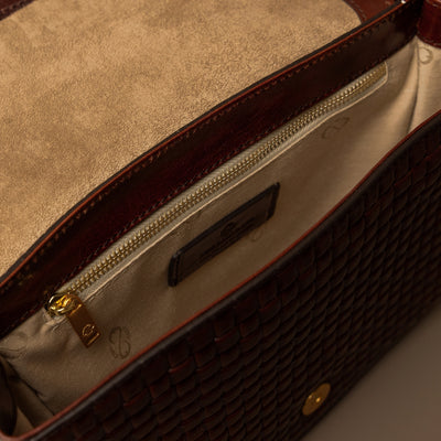Romola is a portrait of timeless elegance. Crafted from full-grain leather, its classic saddle silhouette and refined lines create a look that feels effortless and enduring. Designed to move seamlessly through your day, it carries your essentials with quiet confidence and grace. A bag defined by balance, and enduring style.