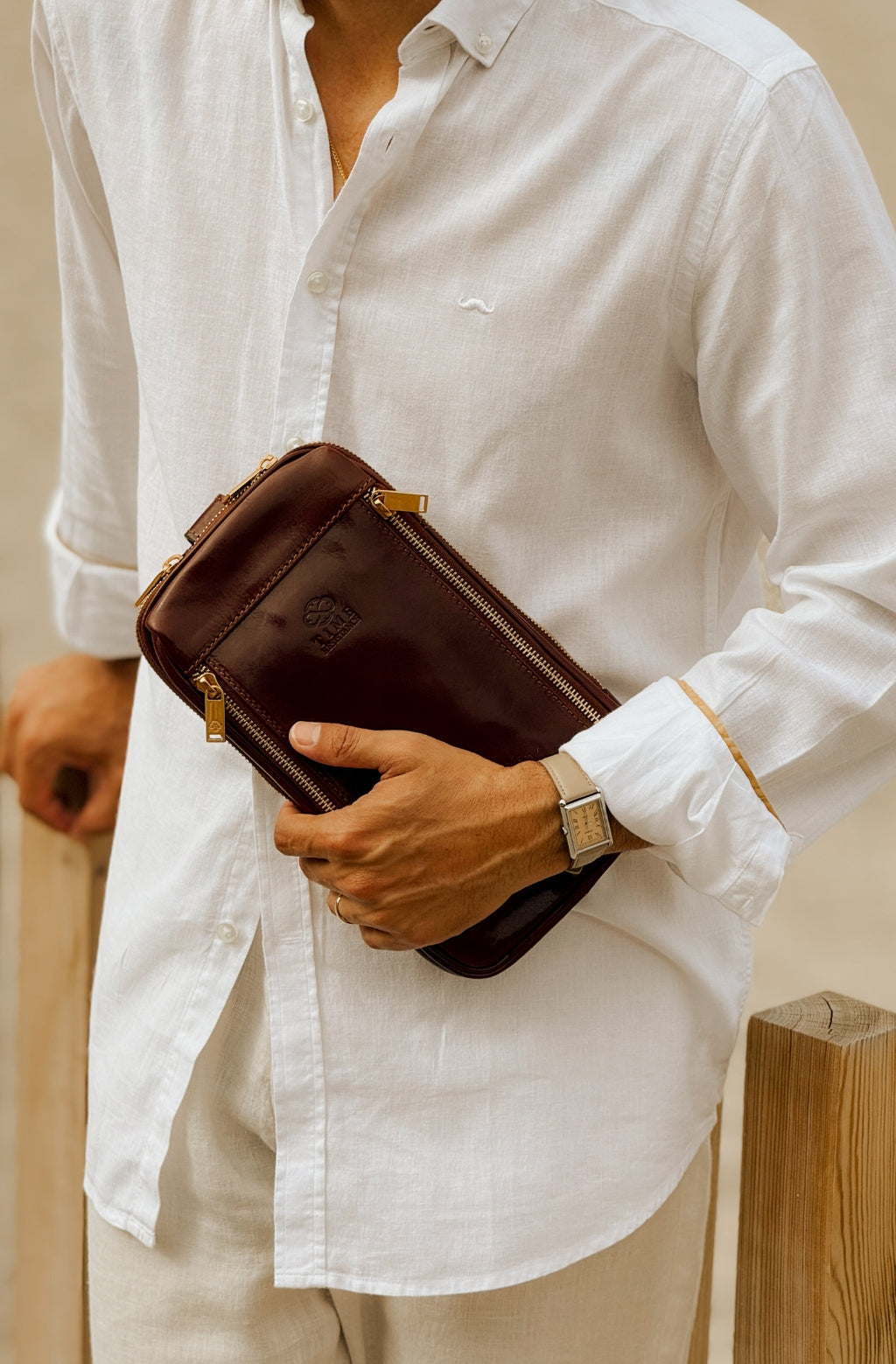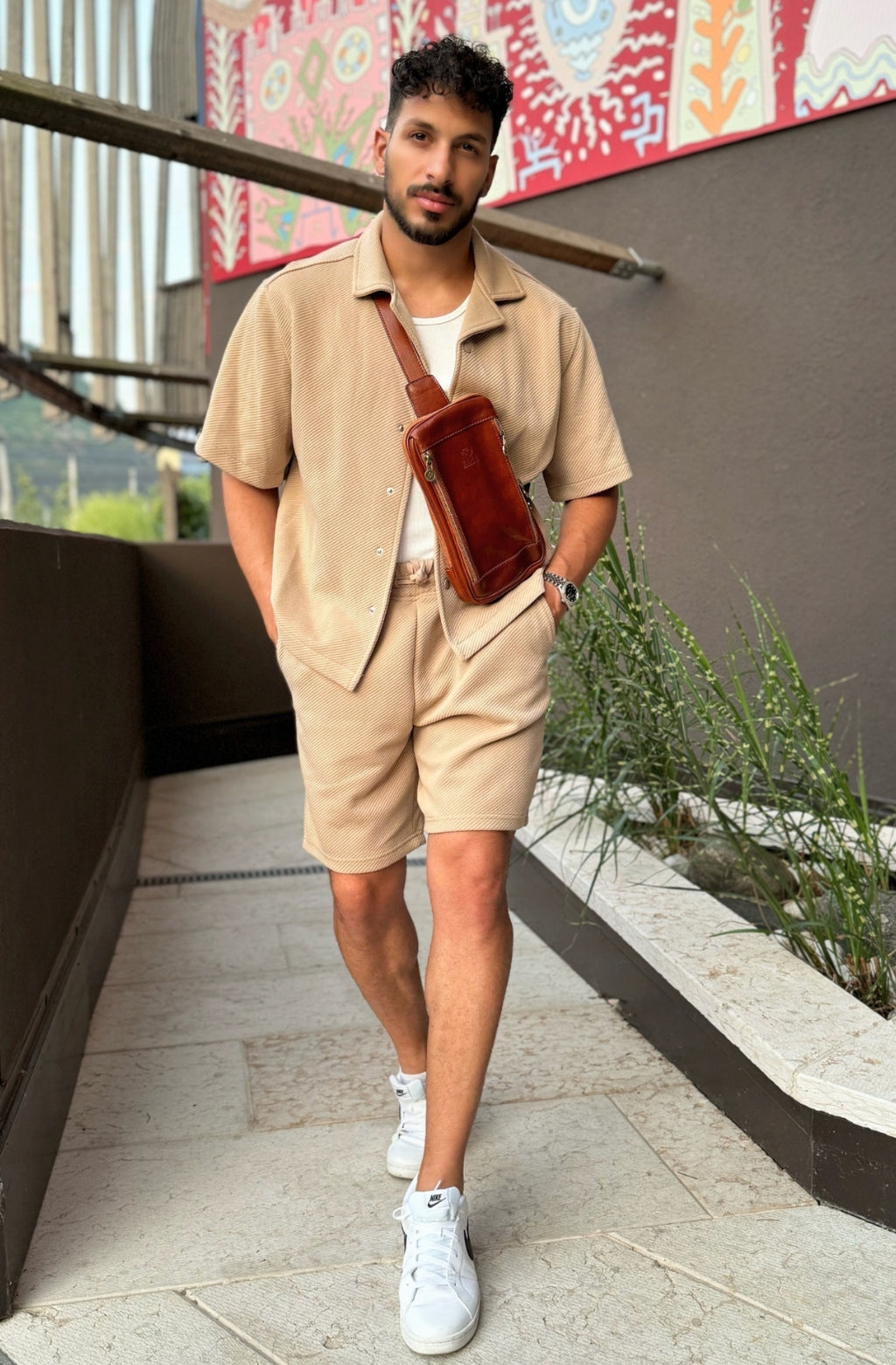 This Italian leather sling bag was designed to maximize the comfort of traveling. Our full-grain leather chest bag Kim can be carried on the chest and on the back. Close to the body premium quality fanny pack does not restrain movements nor spirit of traveling.
