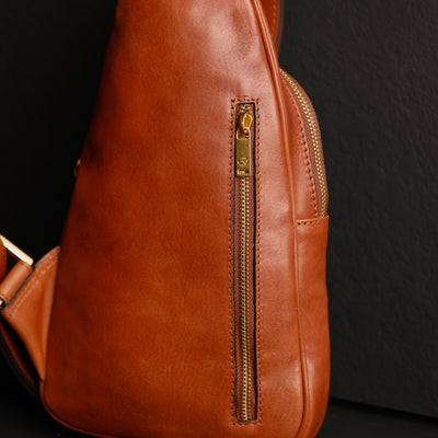 This Italian leather sling bag was designed to maximize the comfort of traveling. Our full-grain leather chest bag Catch-22 can be carried on the chest and on the back. Close to the body premium quality fanny pack does not restrain movements nor spirit of traveling.