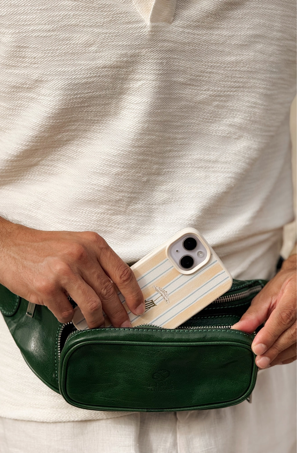 ‘Independent People‘ is a true testament to a carefree yet classy belly bag. The bum bag is made of premium quality Italian leather. The minimal design fits all essentials: it has a spacious compartment and two zipped pockets for your cards, keys, a smartphone, etc. Great for traveling or going to a Farmers‘ market. The fanny pack is made in Italy in its true fashion: reliable zippers, strong seams, and a stylish design – everything you need for an adventure in the city.