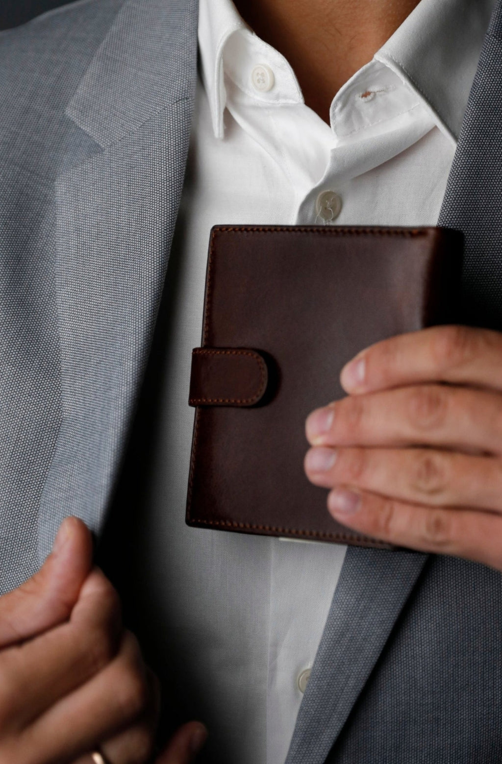 Leather Bifold Wallet with a Snap Closure - Ironweed