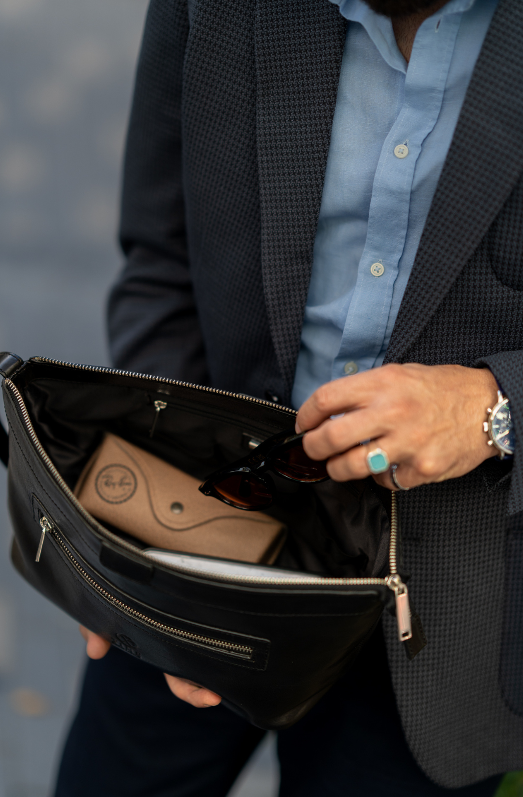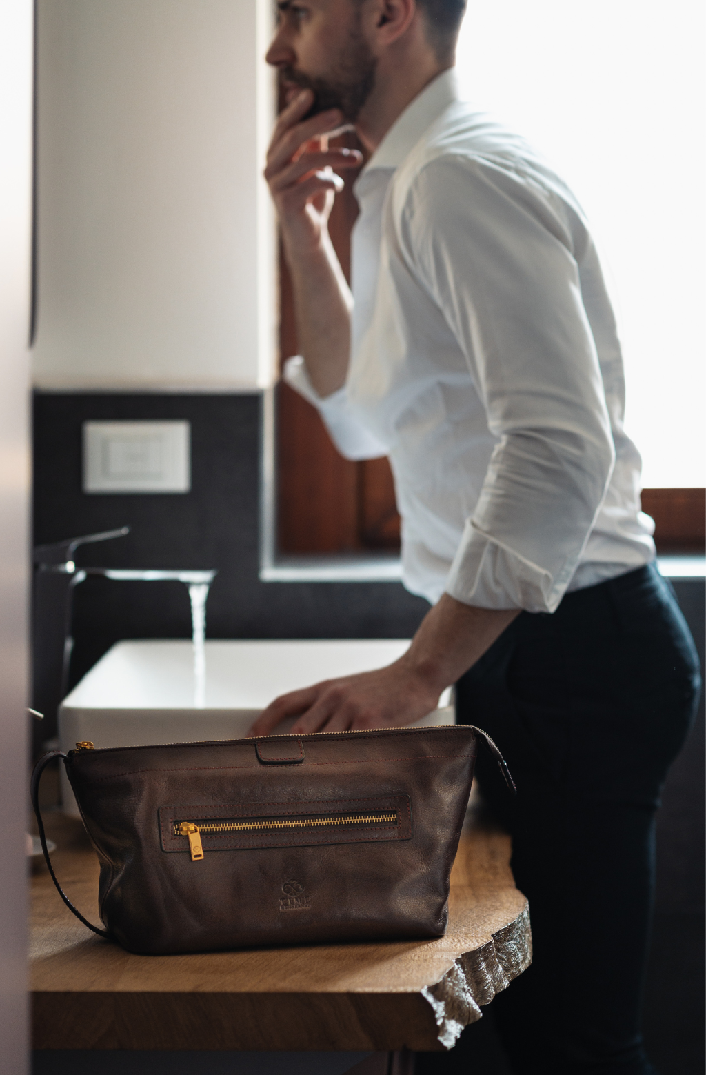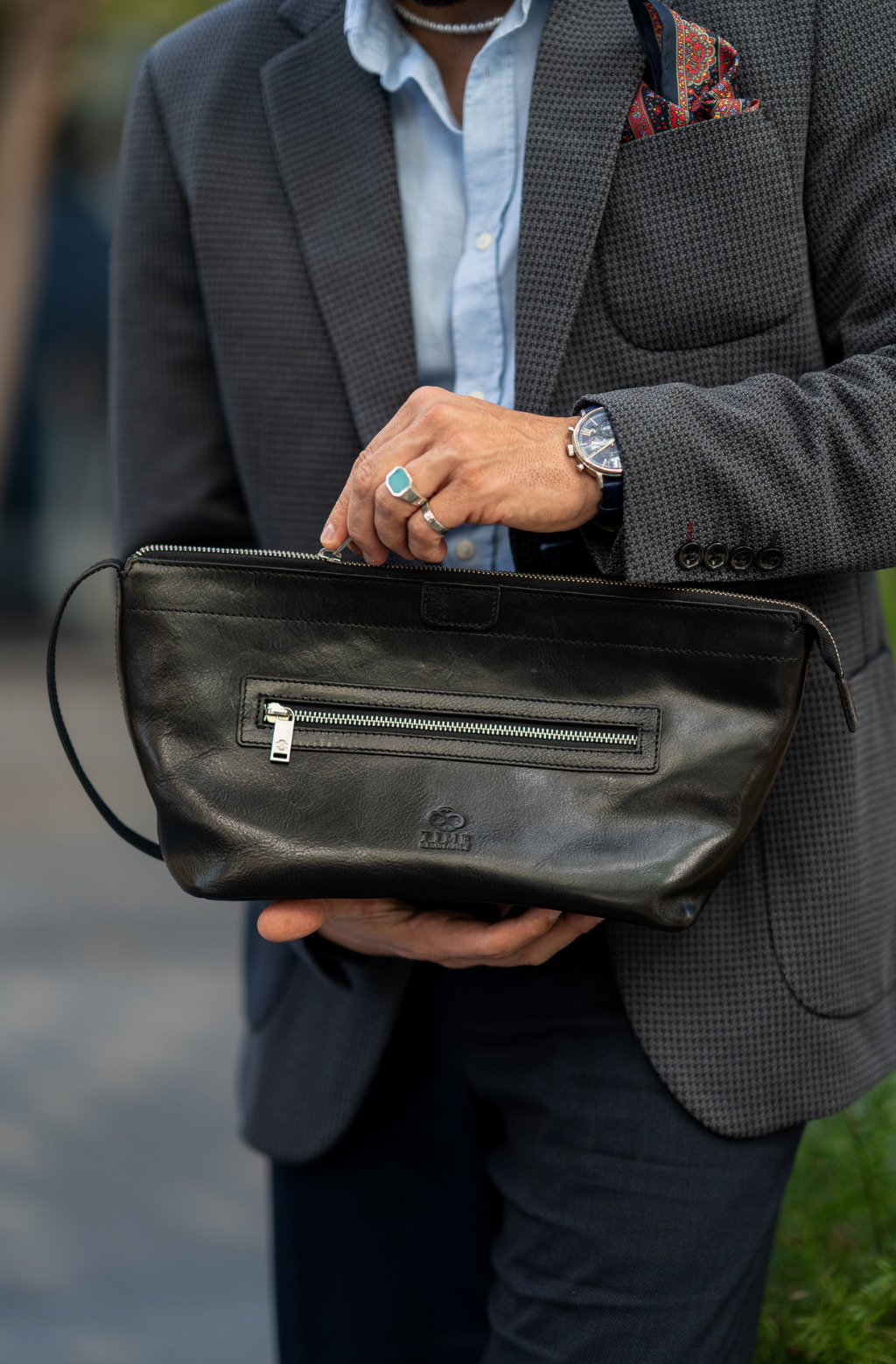 Elevate your grooming routine with the Ragtime Leather Toiletry Bag, a perfect blend of style and functionality. Crafted from premium leather, this versatile bag features an external zip pocket for easy access to your essentials. The main compartment, complete with organized pockets and a clever addition of three rubber loops, offers a seamless experience for your daily rituals. These rubber loops provide a convenient solution for securing items like toothbrushes, razors, or cosmetic brushes, keeping them in place during your journey. Inside, a mesh compartment ensures optimal visibility and ventilation, making it the ideal companion for your toiletries. Embrace timeless style and practicality with the Ragtime Leather Toiletry Bag — your go-to cosmetic and wash bag with innovative rubber loops for added versatility.