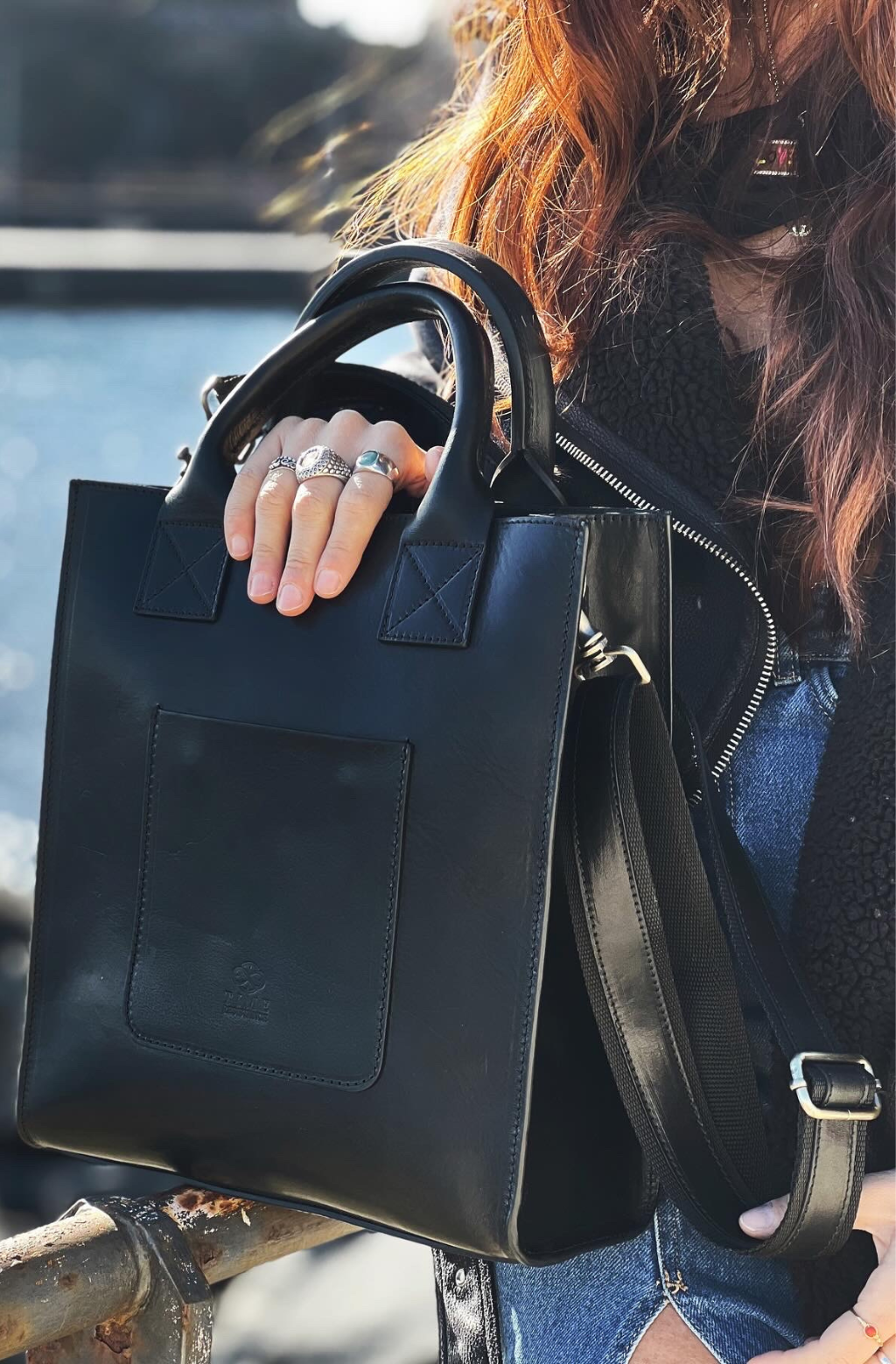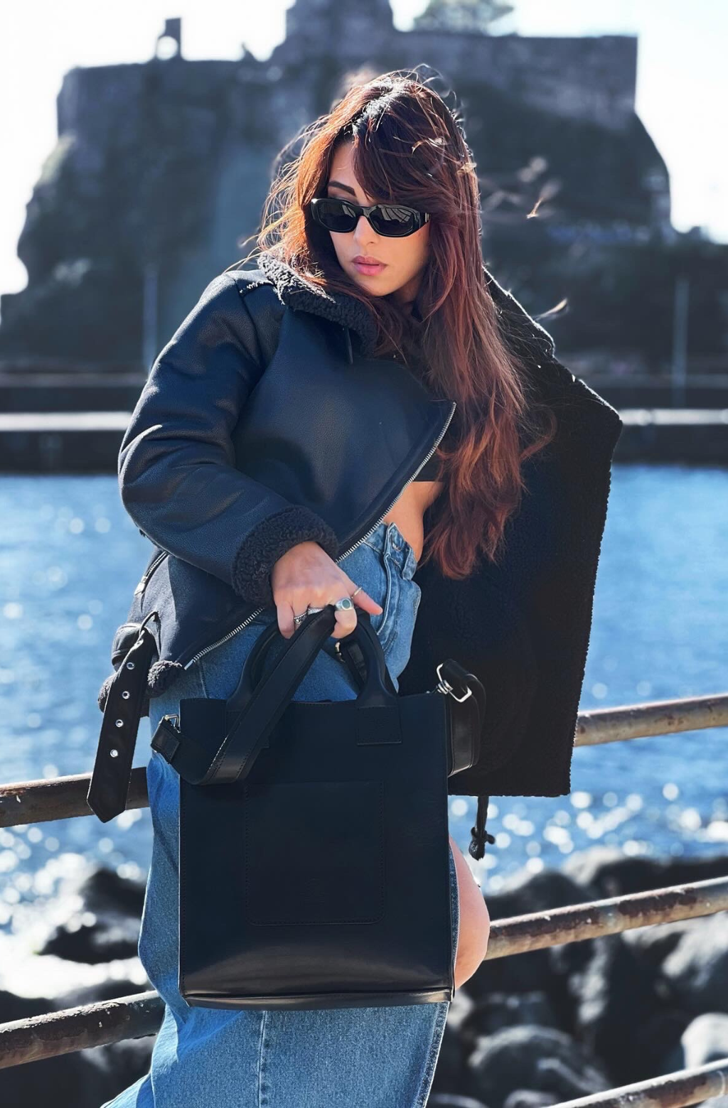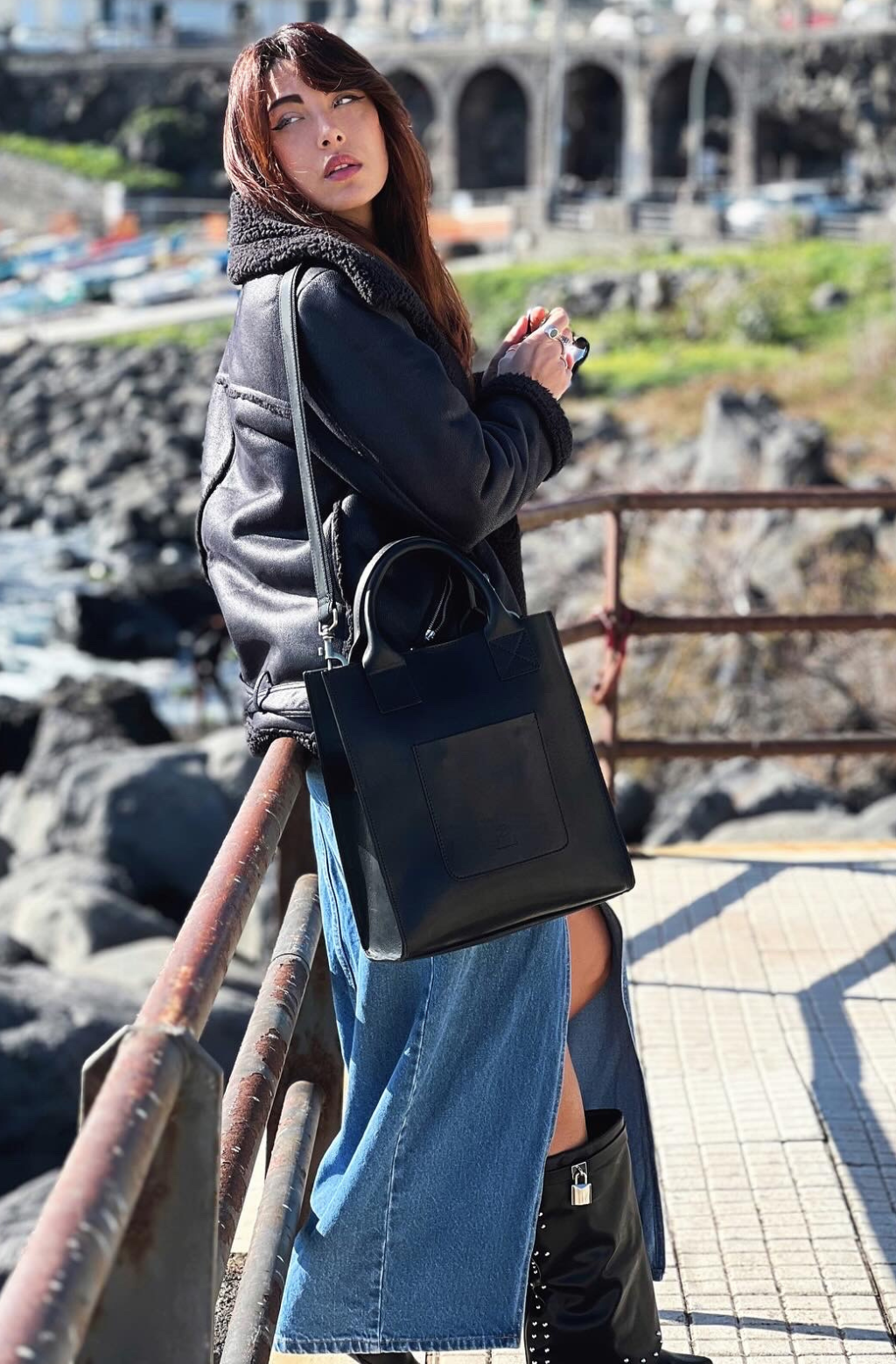 A simple and elegant leather tote bag adds character and style to every self-confident woman! Its universal look allows you to use the tote bag for various purposes. One may take the bag to the work, shopping, meeting, or walk and feel comfortable with it in any condition!