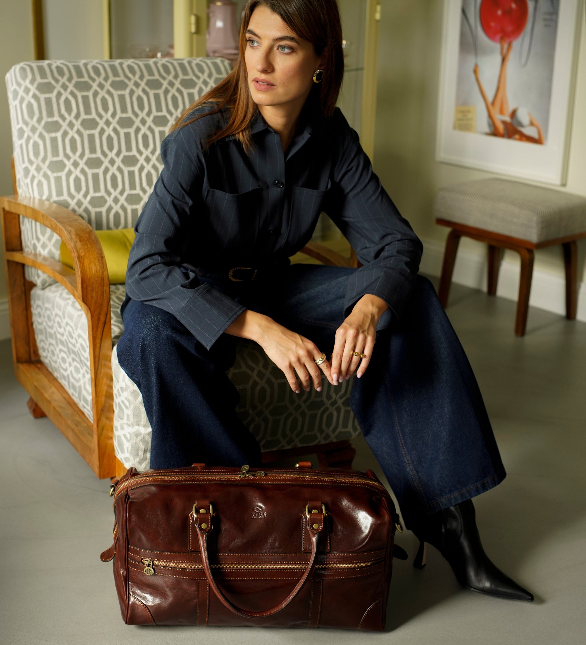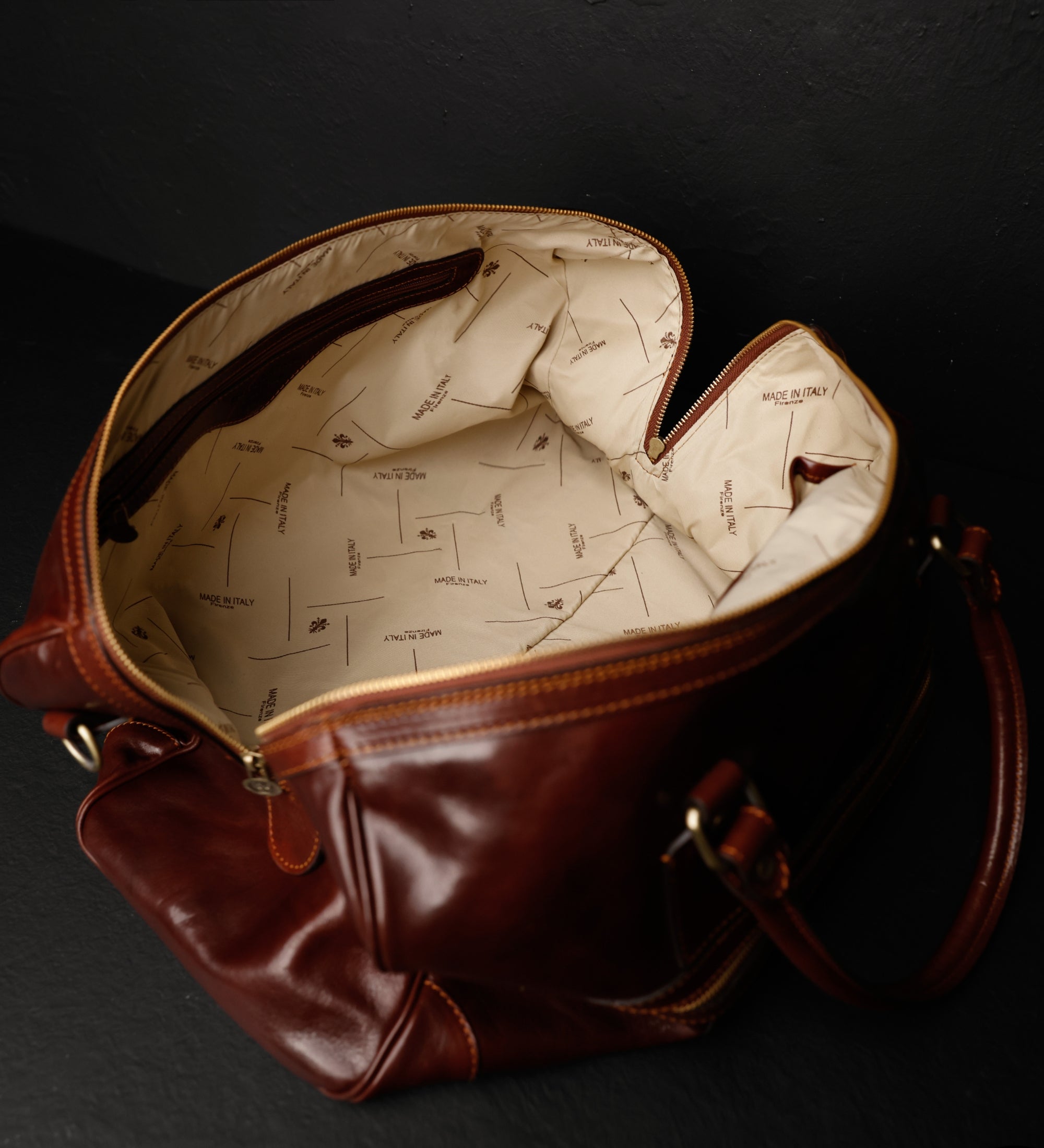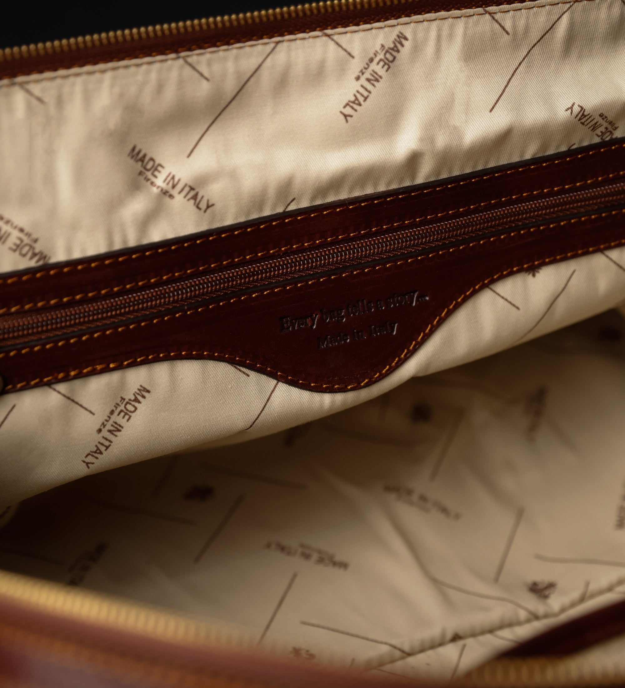 In the tapestry of travel, "To the Lighthouse" emerges as a steadfast companion, a silent witness to the adventures that lie ahead. Crafted with meticulous care, its sturdy exterior not only hints at resilience but also beckons with the promise of journeys yet to unfold. Adorned with two elegant vertical leather straps, and reinforcements in every corner, it blends form with function, adding a touch of timeless elegance to its design while providing additional support for your ventures. Within its spacious confines, memories find sanctuary, nestled amidst the well-worn interior. With every step, it becomes more than just a bag; it transforms into a trusted confidant, a guardian of cherished moments. Let "To the Lighthouse" be your faithful companion as you navigate the intricate pathways of travel, an emblem of resilience amidst the ever-changing landscapes of life's grand adventure.