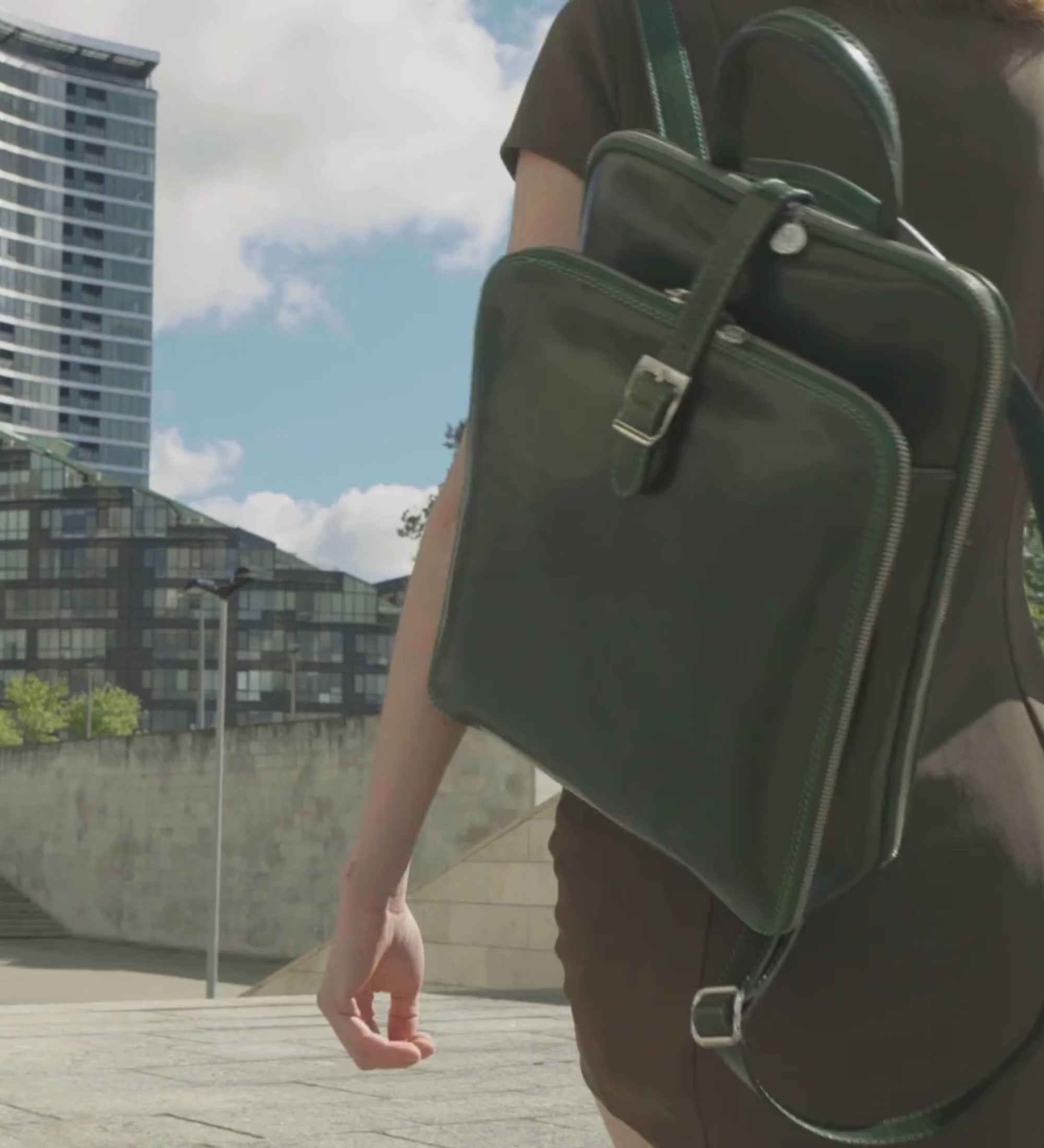 Women’s full-grain leather backpack that has absolutely nothing to do with activewear. In fact, throw away every thought you’ve ever had about backpacks. This accessory is for an elegant, polished lady with an innovative attitude. Innovation often comes from reinventing the classics and Clarissa is a sharp looking backpack that combines business with personality. It will never be surrounded by 20 identical clones. Moreover, the backpack easily converts to a shoulder bag with the simple pull of the straps.