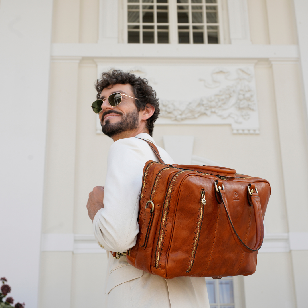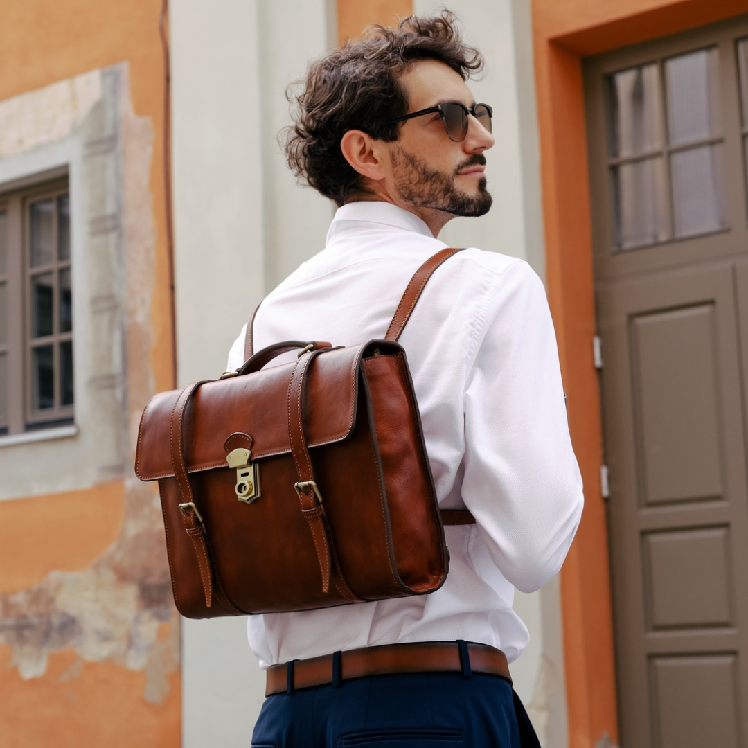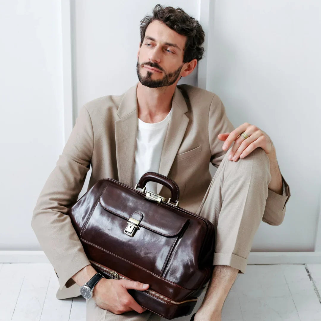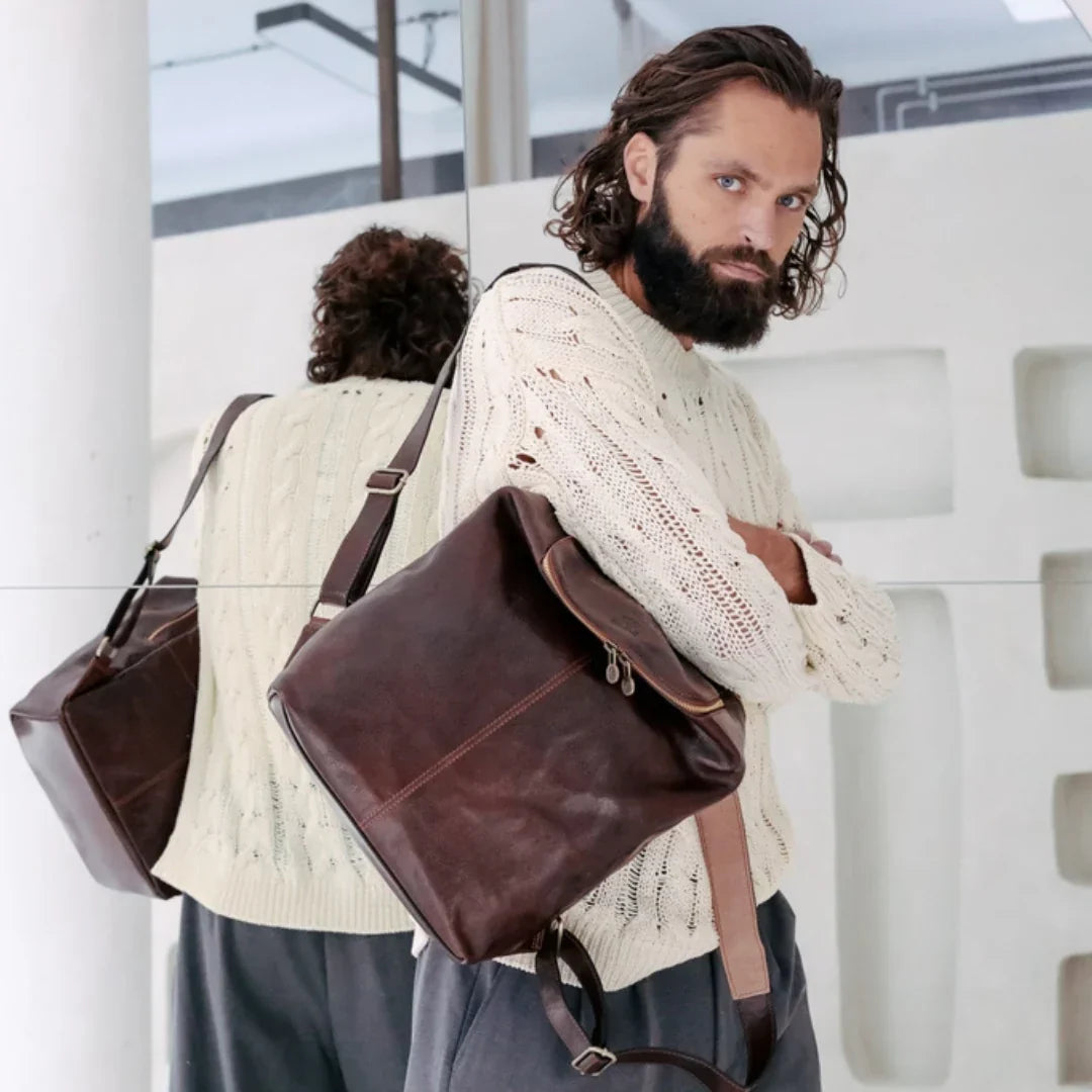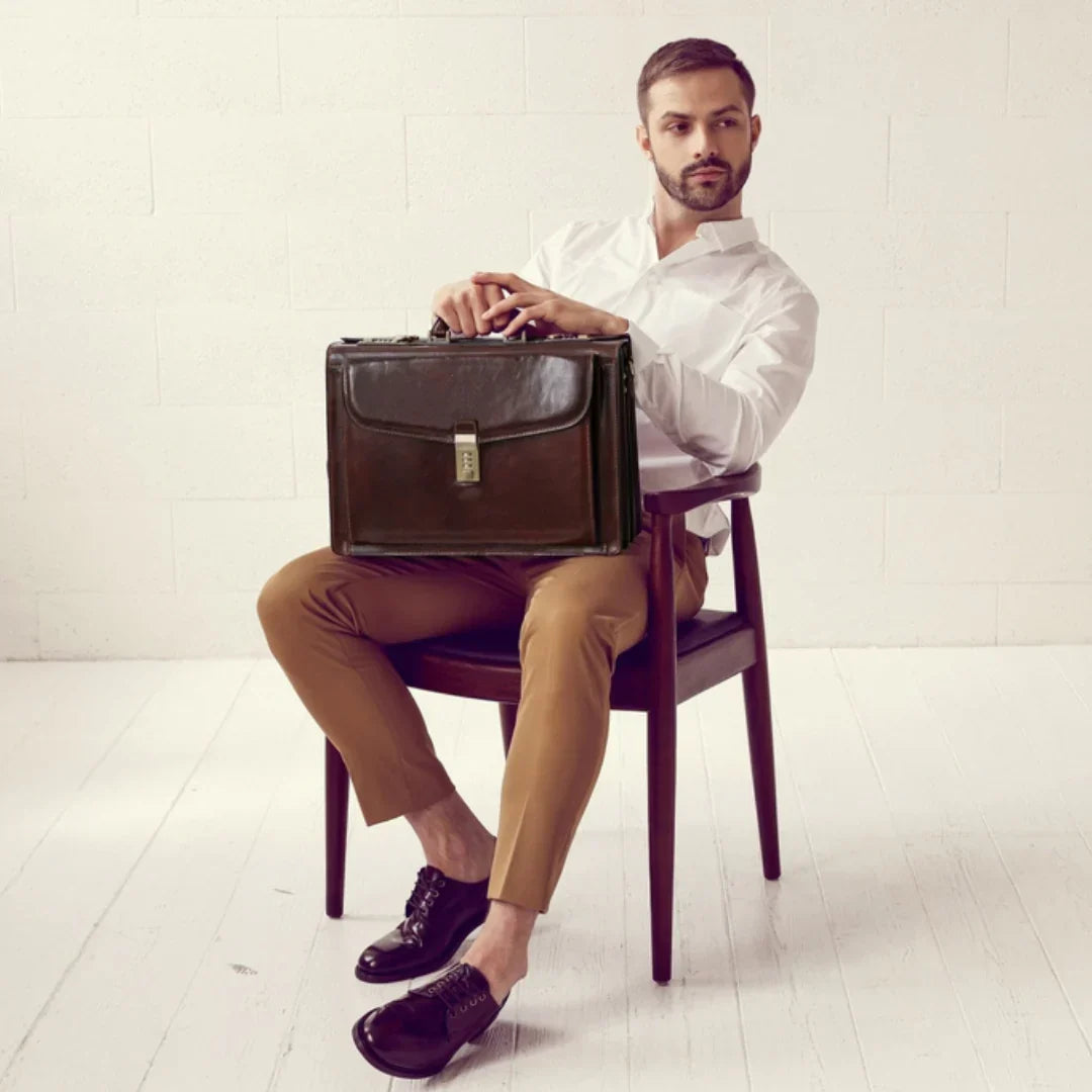 This spring, we invite you to experience a new kind of love: a love between you and your bag. Our latest photoshoot is a tribute to this special bond that transcends time and space. Our leather bags are more than just accessories. They are companions, confidants, and soulmates. They reflect your inner beauty and express your outer style. They are with you through thick and thin, through joy and sorrow, through work and play. They are the ones who make you feel alive and complete. Our photoshoot captures the magic of spring: the freshness of the air, the warmth of the sun, the vibrancy of the city. The model is a vision of elegance and charm, wearing a suit that matches his bags and his mood. The background is a stunning contrast of light and dark, with subtle touches of modernity and history. The photoshoot is a romance between you and your bag. It shows that you don’t need anyone else to make you happy. You just need yourself and your bag. So go ahead and indulge in a spring fling with our leather bags.