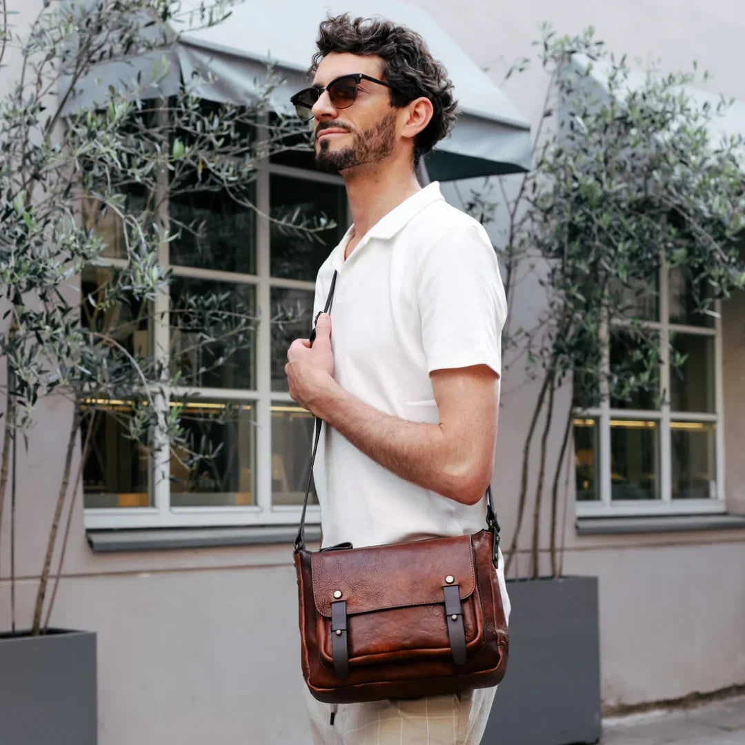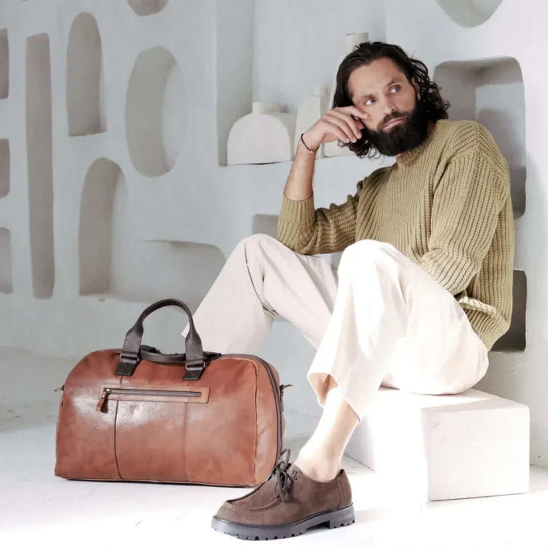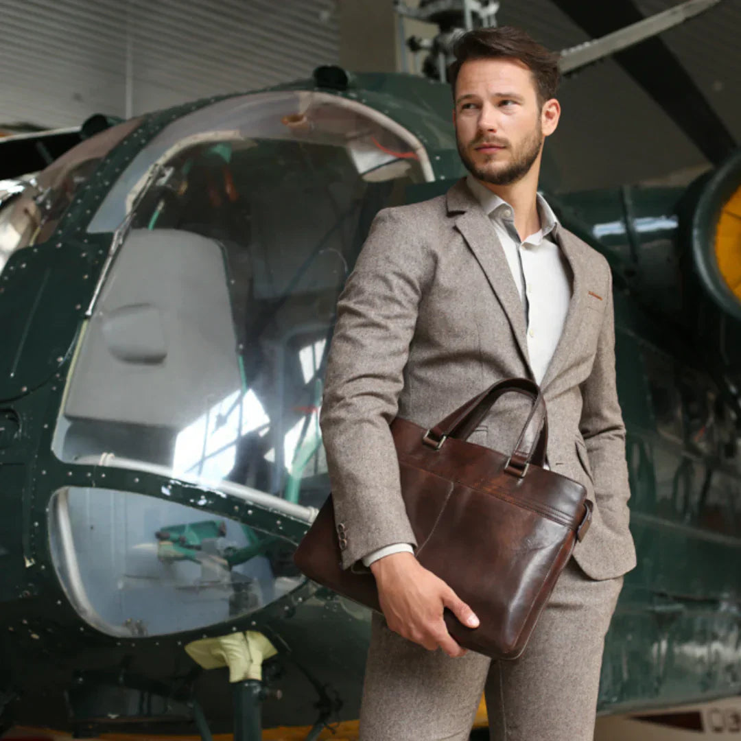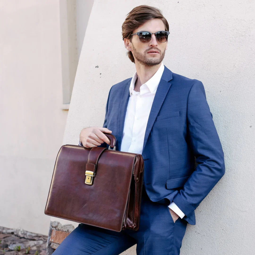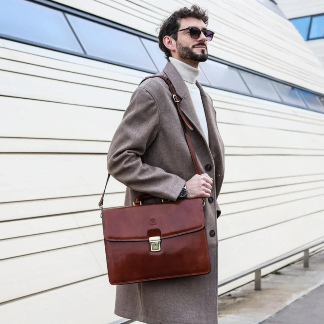 This spring, we invite you to experience a new kind of love: a love between you and your bag. Our latest photoshoot is a tribute to this special bond that transcends time and space. Our leather bags are more than just accessories. They are companions, confidants, and soulmates. They reflect your inner beauty and express your outer style. They are with you through thick and thin, through joy and sorrow, through work and play. They are the ones who make you feel alive and complete. Our photoshoot captures the magic of spring: the freshness of the air, the warmth of the sun, the vibrancy of the city. The model is a vision of elegance and charm, wearing a suit that matches his bags and his mood. The background is a stunning contrast of light and dark, with subtle touches of modernity and history. The photoshoot is a romance between you and your bag. It shows that you don’t need anyone else to make you happy. You just need yourself and your bag. So go ahead and indulge in a spring fling with our leather bags.