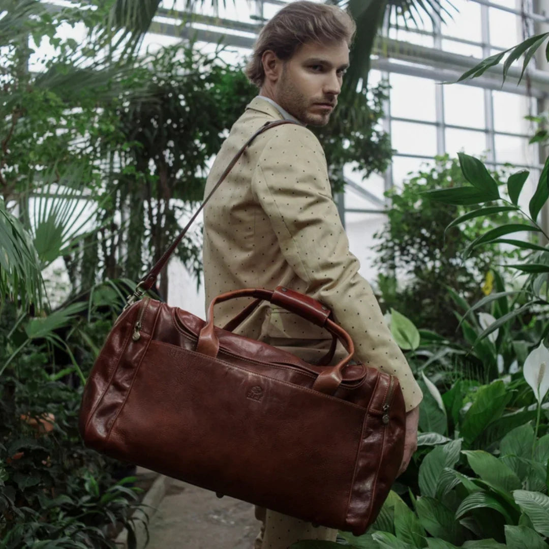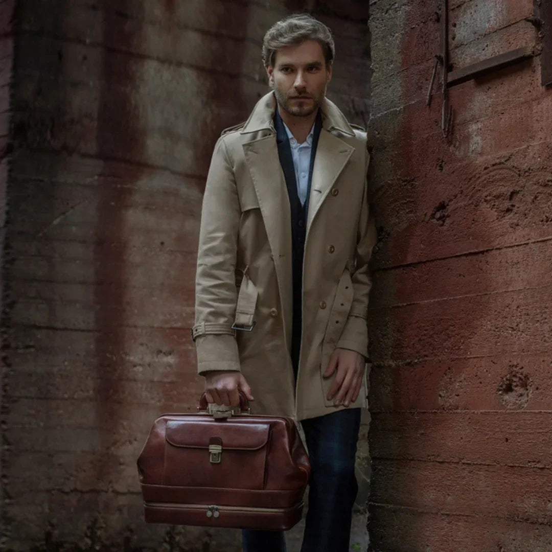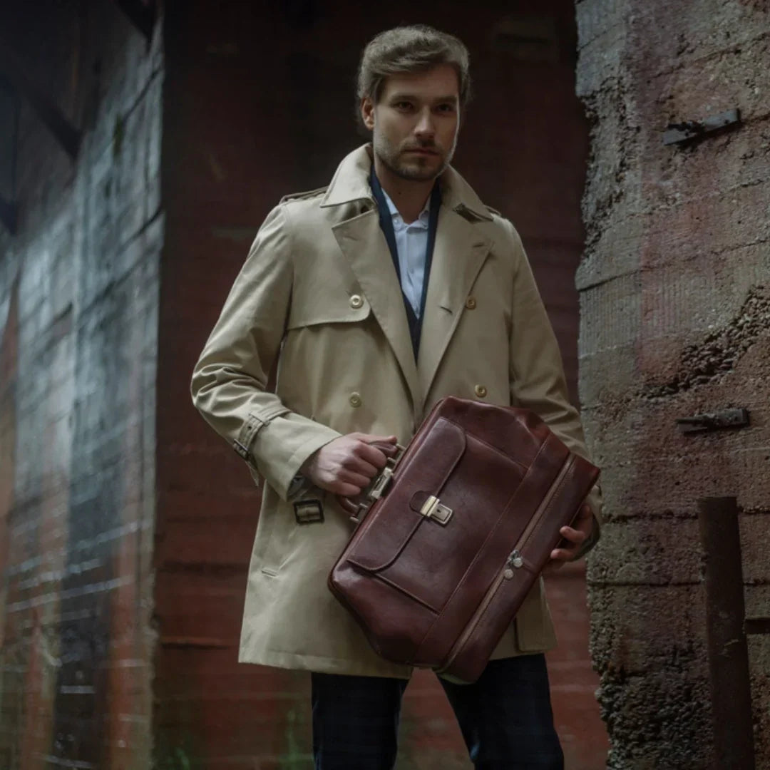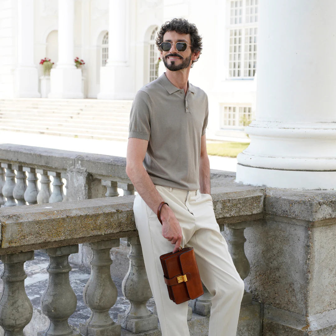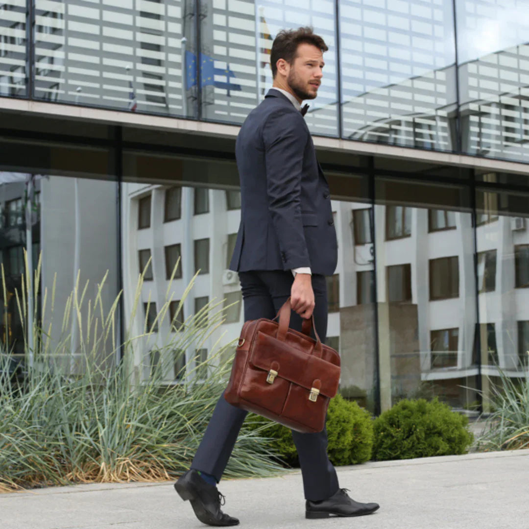 This spring, we invite you to experience a new kind of love: a love between you and your bag. Our latest photoshoot is a tribute to this special bond that transcends time and space. Our leather bags are more than just accessories. They are companions, confidants, and soulmates. They reflect your inner beauty and express your outer style. They are with you through thick and thin, through joy and sorrow, through work and play. They are the ones who make you feel alive and complete. Our photoshoot captures the magic of spring: the freshness of the air, the warmth of the sun, the vibrancy of the city. The model is a vision of elegance and charm, wearing a suit that matches his bags and his mood. The background is a stunning contrast of light and dark, with subtle touches of modernity and history. The photoshoot is a romance between you and your bag. It shows that you don’t need anyone else to make you happy. You just need yourself and your bag. So go ahead and indulge in a spring fling with our leather bags.