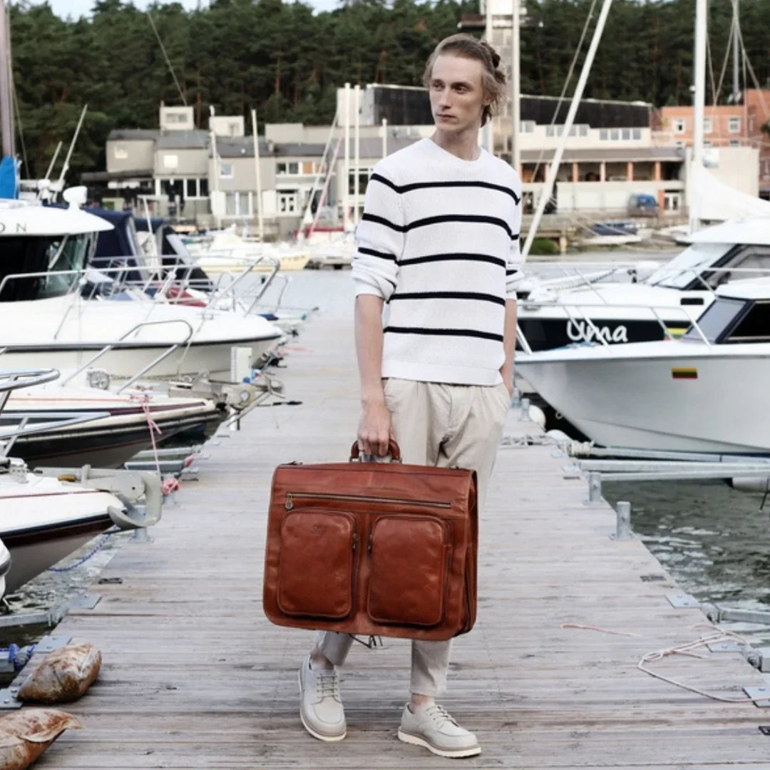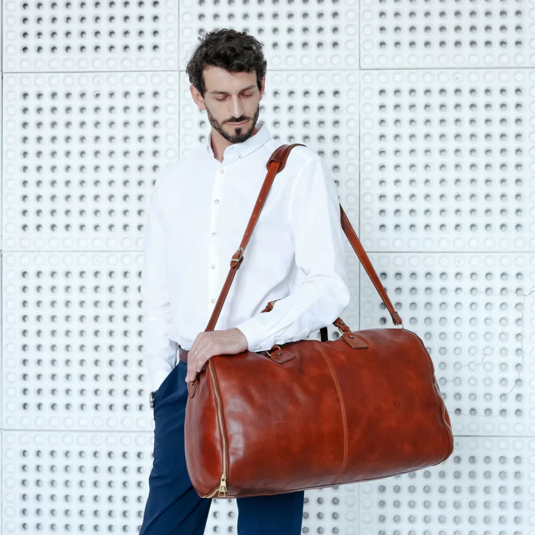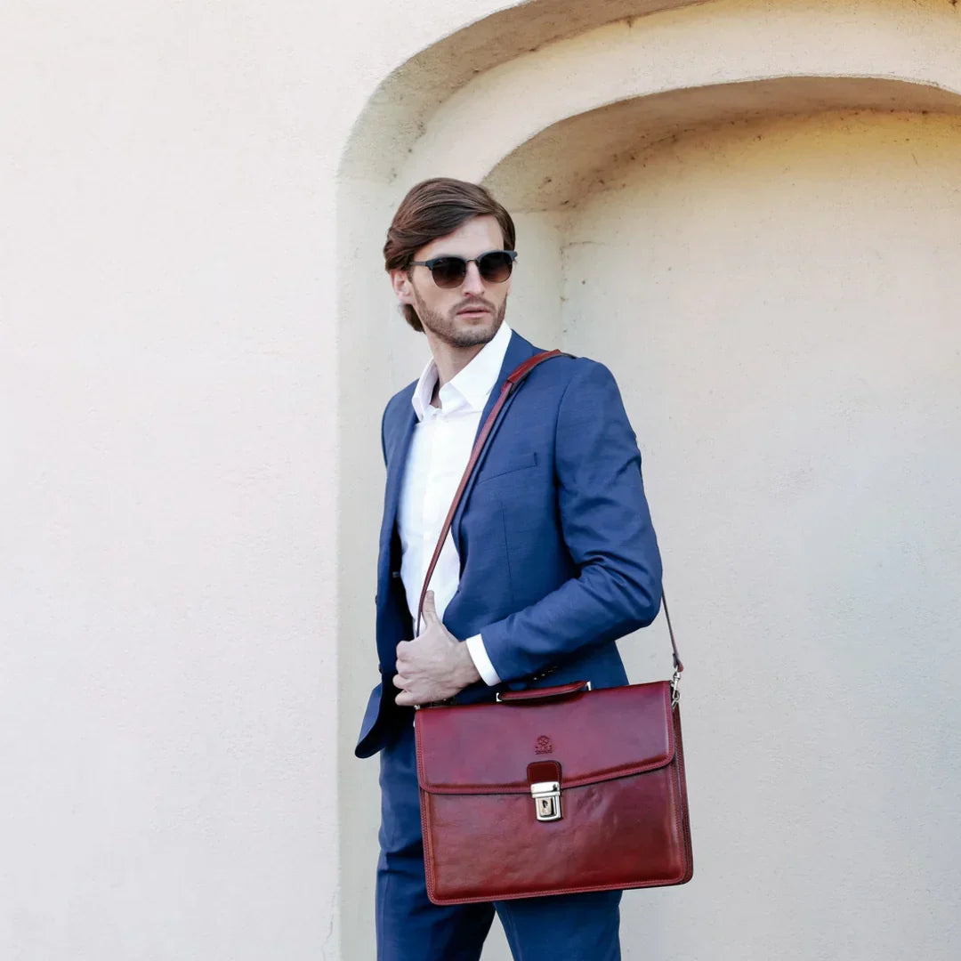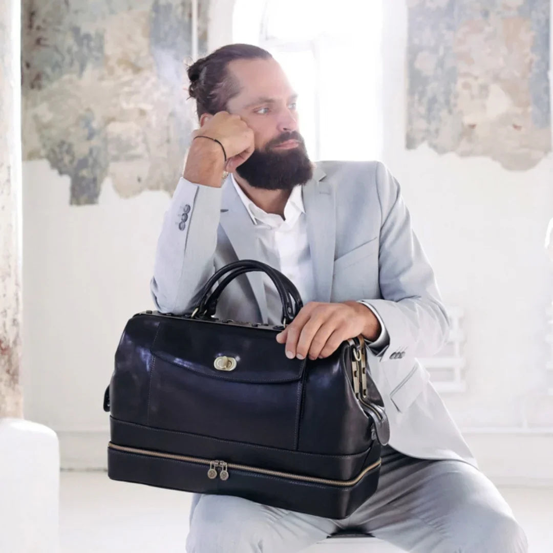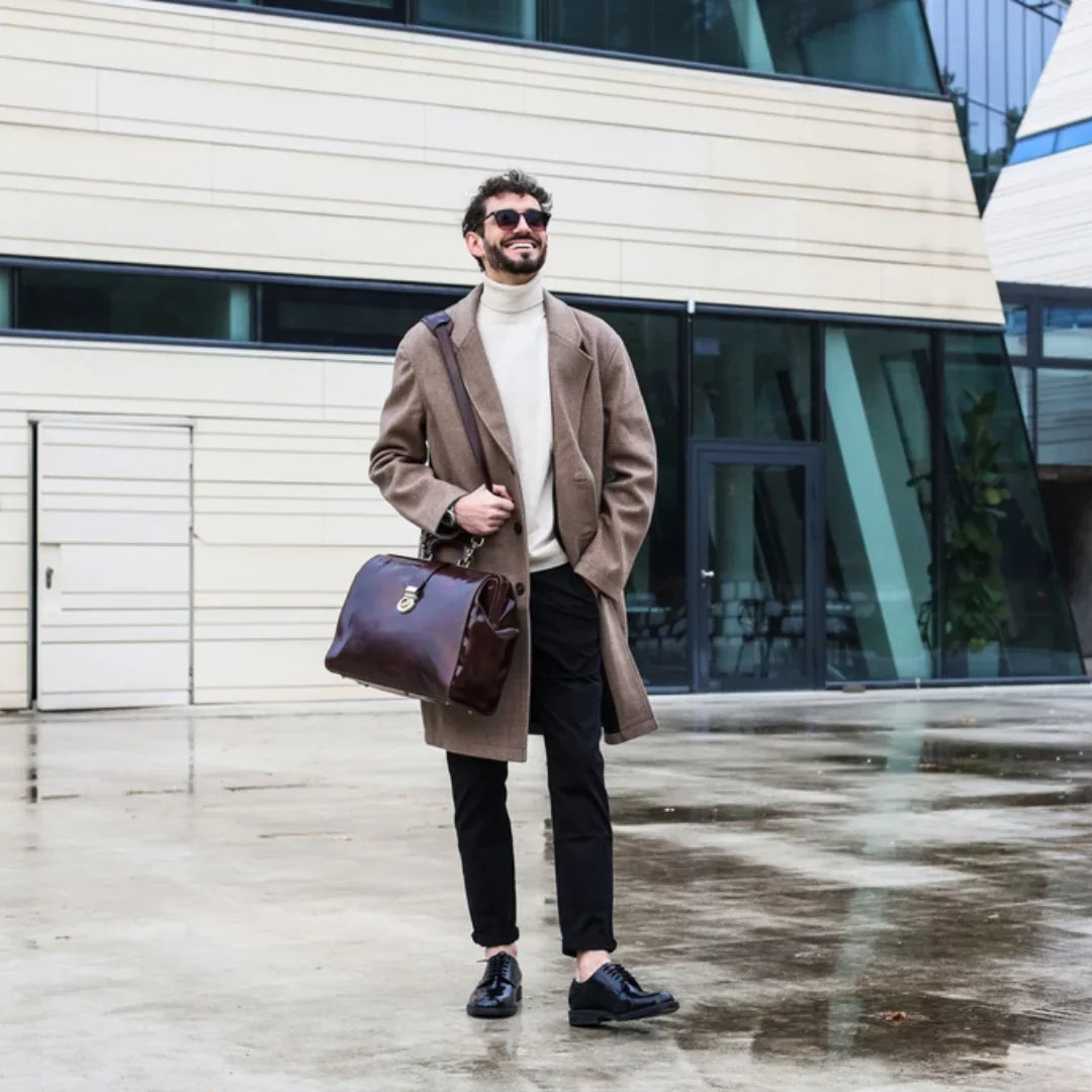 This spring, we invite you to experience a new kind of love: a love between you and your bag. Our latest photoshoot is a tribute to this special bond that transcends time and space. Our leather bags are more than just accessories. They are companions, confidants, and soulmates. They reflect your inner beauty and express your outer style. They are with you through thick and thin, through joy and sorrow, through work and play. They are the ones who make you feel alive and complete. Our photoshoot captures the magic of spring: the freshness of the air, the warmth of the sun, the vibrancy of the city. The model is a vision of elegance and charm, wearing a suit that matches his bags and his mood. The background is a stunning contrast of light and dark, with subtle touches of modernity and history. The photoshoot is a romance between you and your bag. It shows that you don’t need anyone else to make you happy. You just need yourself and your bag. So go ahead and indulge in a spring fling with our leather bags.
