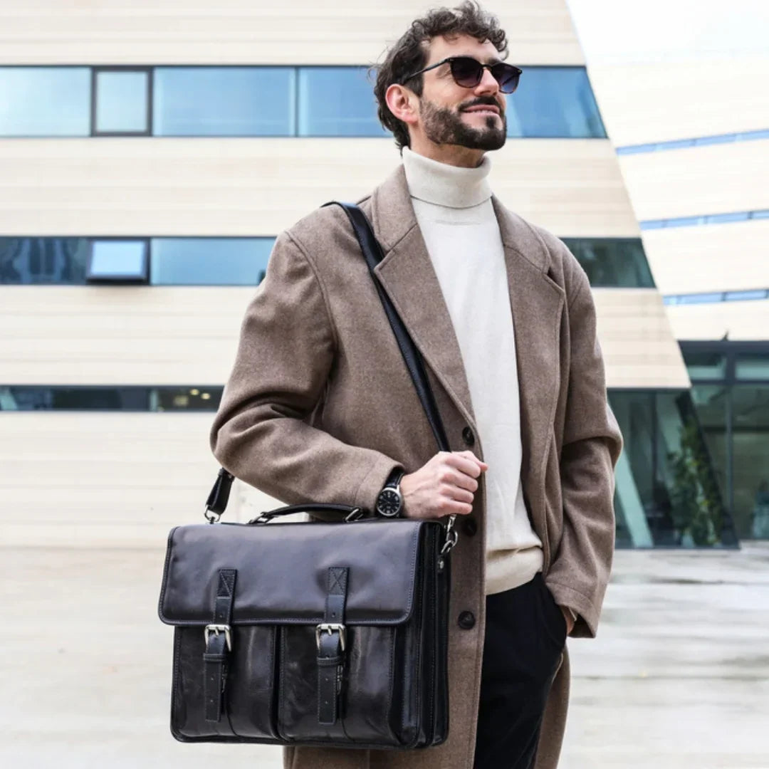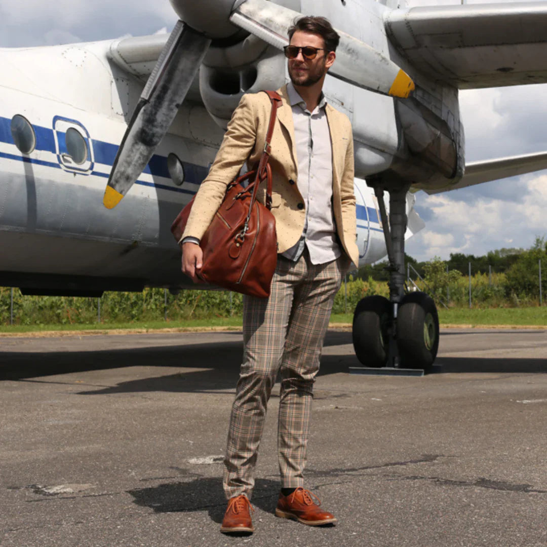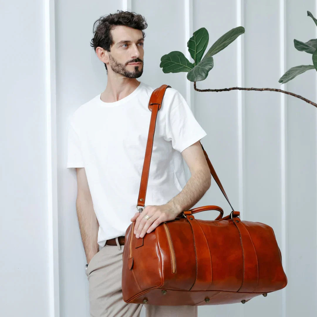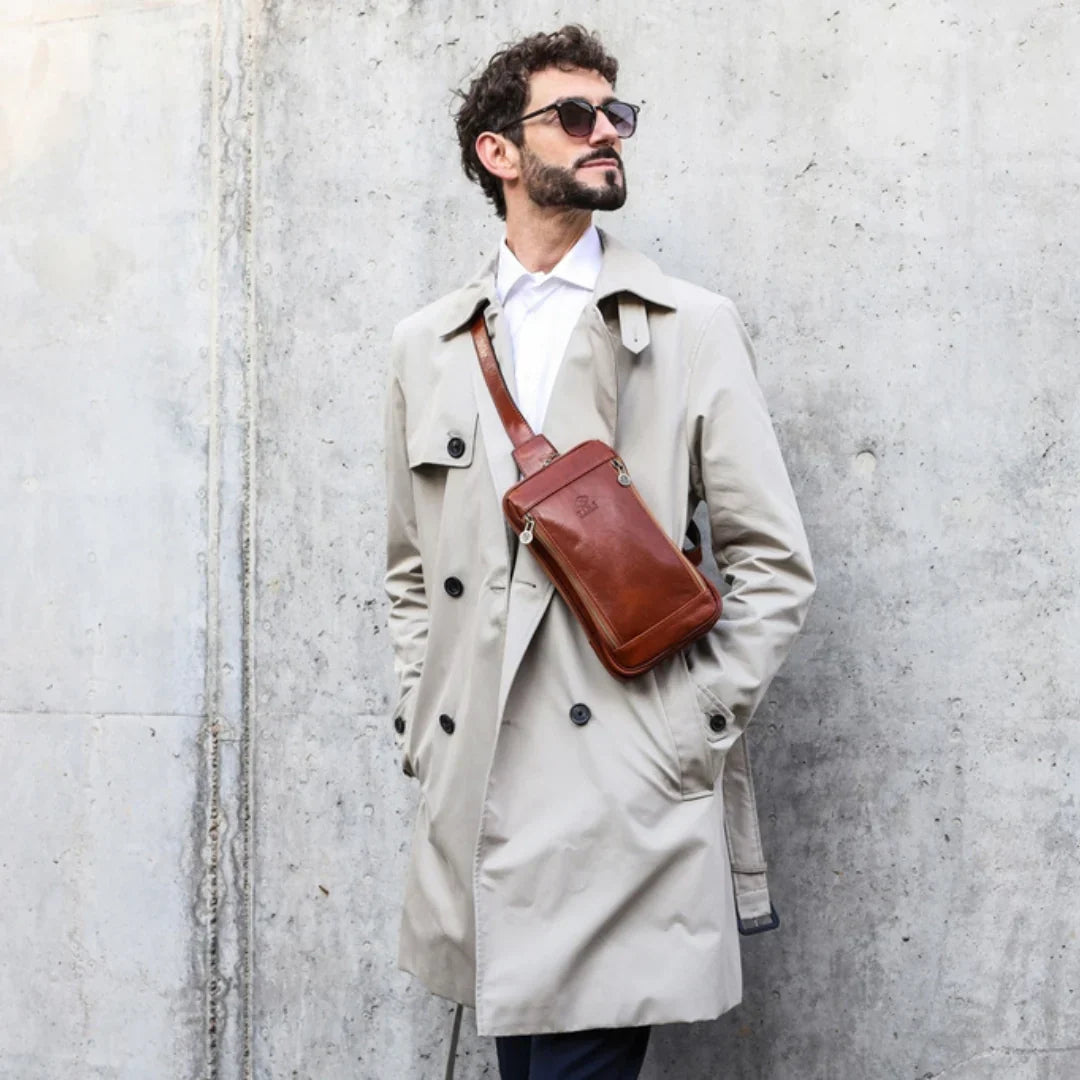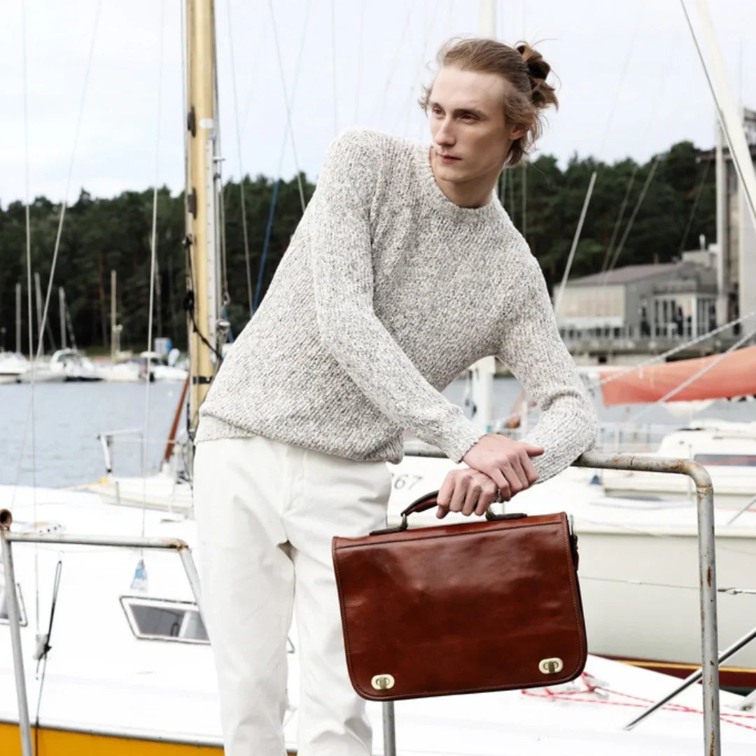 This spring, we invite you to experience a new kind of love: a love between you and your bag. Our latest photoshoot is a tribute to this special bond that transcends time and space. Our leather bags are more than just accessories. They are companions, confidants, and soulmates. They reflect your inner beauty and express your outer style. They are with you through thick and thin, through joy and sorrow, through work and play. They are the ones who make you feel alive and complete. Our photoshoot captures the magic of spring: the freshness of the air, the warmth of the sun, the vibrancy of the city. The model is a vision of elegance and charm, wearing a suit that matches his bags and his mood. The background is a stunning contrast of light and dark, with subtle touches of modernity and history. The photoshoot is a romance between you and your bag. It shows that you don’t need anyone else to make you happy. You just need yourself and your bag. So go ahead and indulge in a spring fling with our leather bags.
