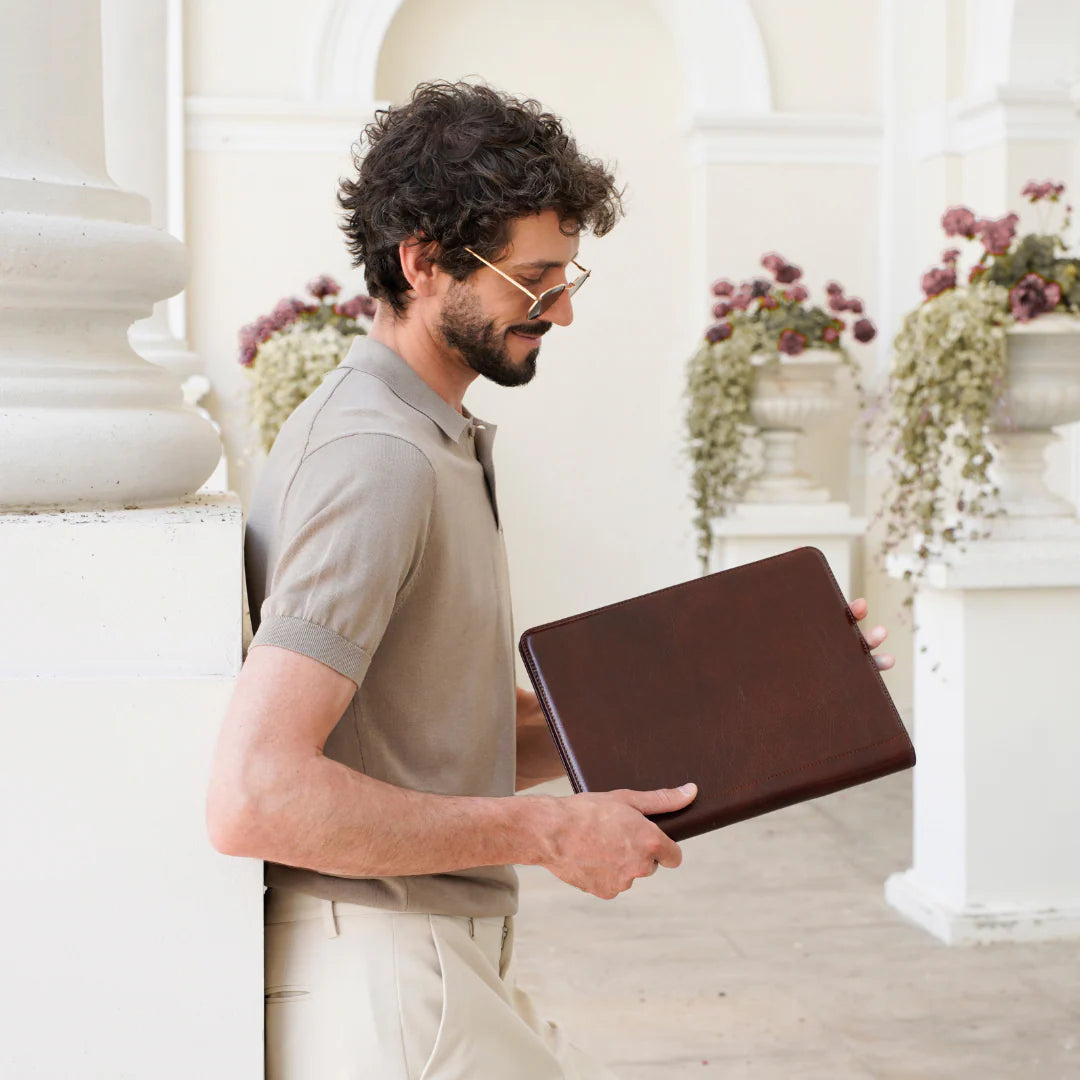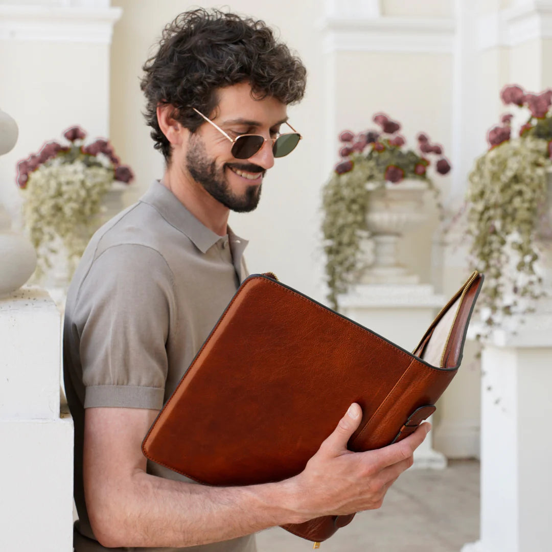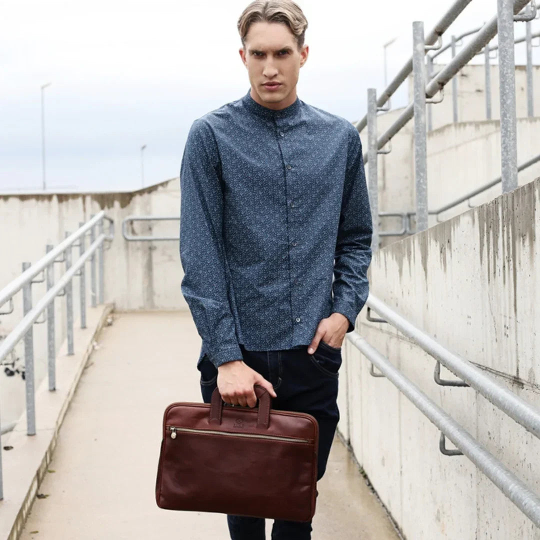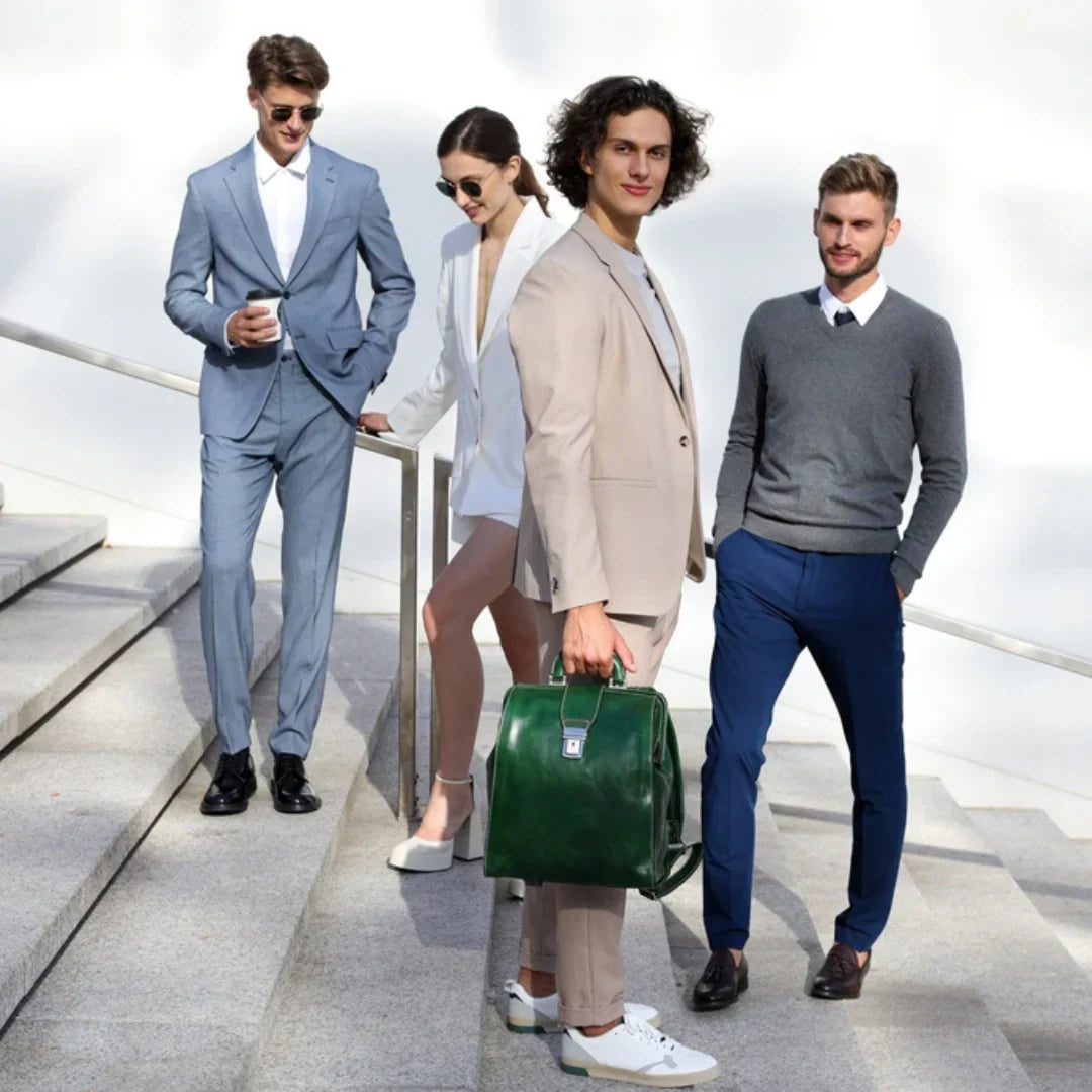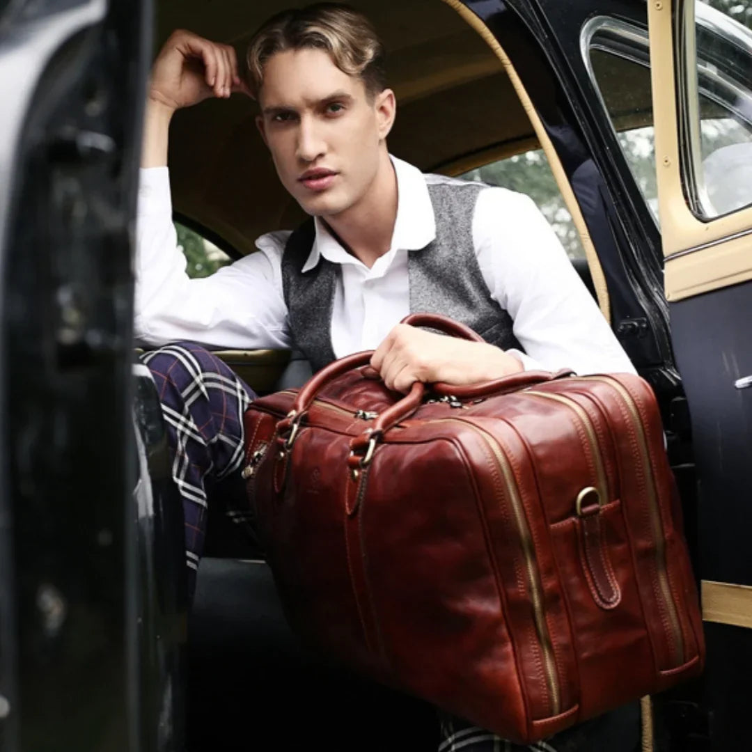 This spring, we invite you to experience a new kind of love: a love between you and your bag. Our latest photoshoot is a tribute to this special bond that transcends time and space. Our leather bags are more than just accessories. They are companions, confidants, and soulmates. They reflect your inner beauty and express your outer style. They are with you through thick and thin, through joy and sorrow, through work and play. They are the ones who make you feel alive and complete. Our photoshoot captures the magic of spring: the freshness of the air, the warmth of the sun, the vibrancy of the city. The model is a vision of elegance and charm, wearing a suit that matches his bags and his mood. The background is a stunning contrast of light and dark, with subtle touches of modernity and history. The photoshoot is a romance between you and your bag. It shows that you don’t need anyone else to make you happy. You just need yourself and your bag. So go ahead and indulge in a spring fling with our leather bags.