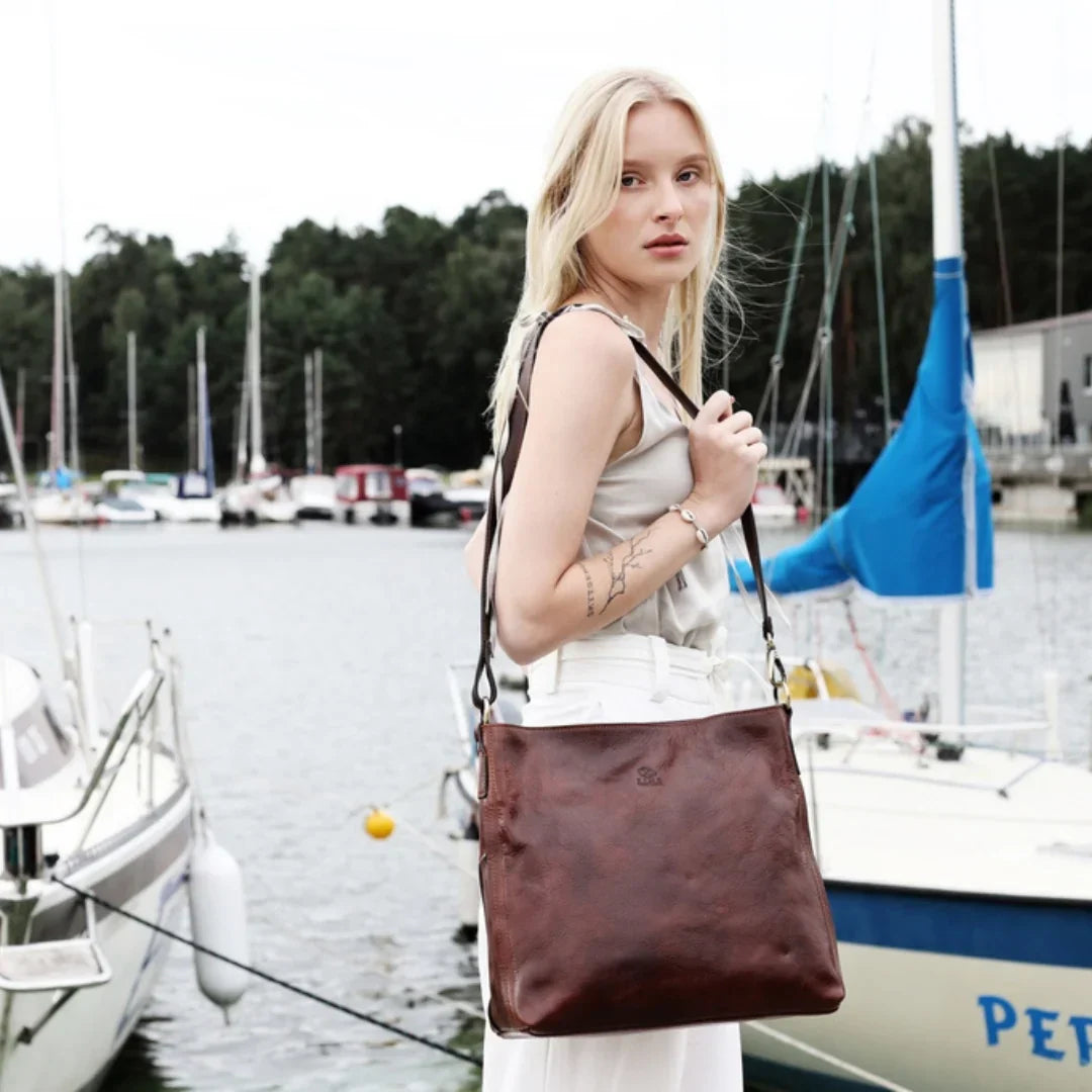 Our latest photoshoot Serenity is designed to capture the essence of summer. The photoshoot features one of our favorite models Edvina who is the embodiment of this notion. The photoshoot is meant to evoke feelings of warmth, happiness, and relaxation. We have used a variety of artistic techniques to capture the essence of summer in our leather bags. The photoshoot features a range of colors that are reminiscent of the summer season. We have also used lighting techniques to create a warm and inviting atmosphere that is perfect for summer. We hope our artistic take on the summer season and our leather bags will impress you.