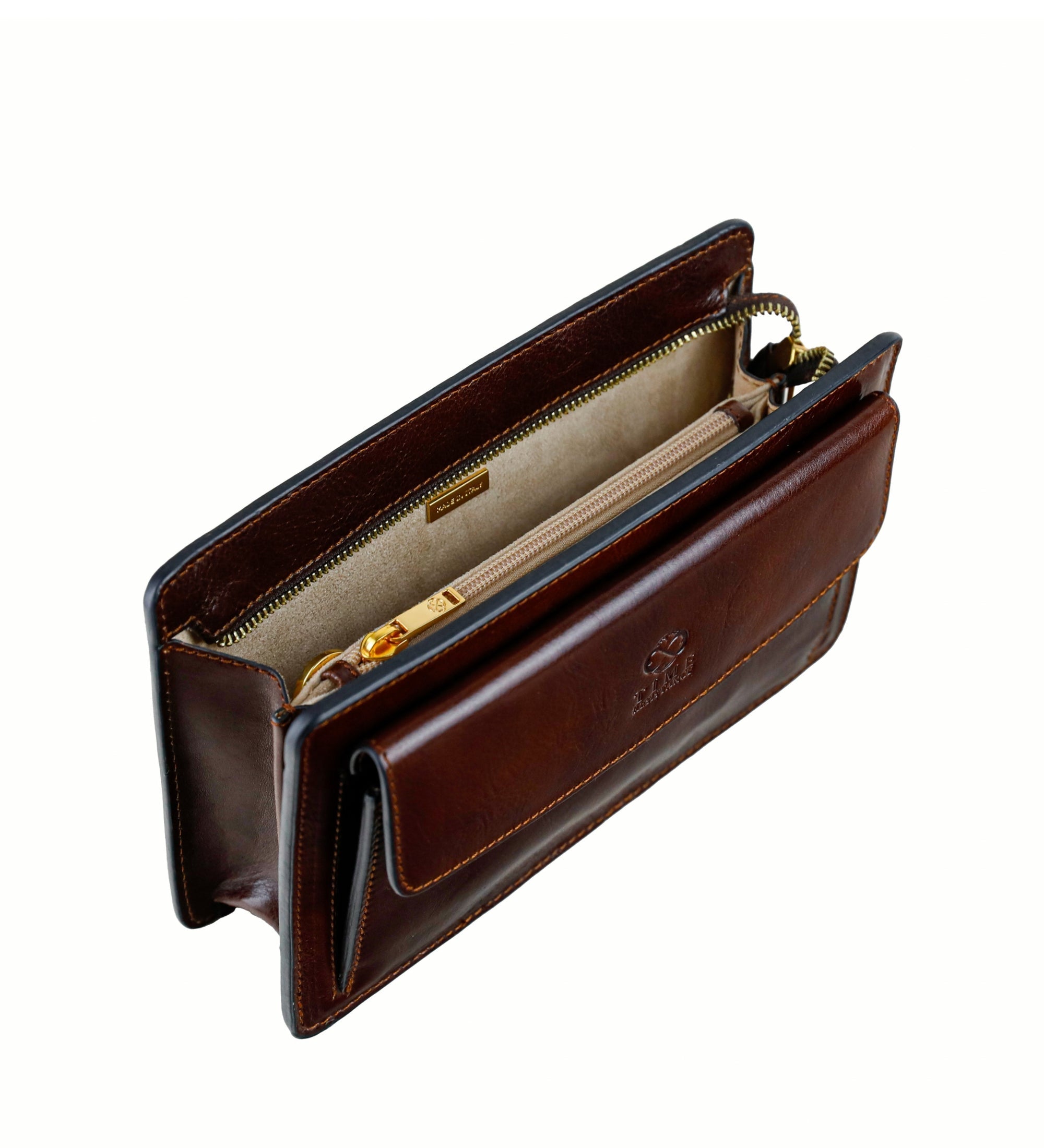 A classic and smart design leather clutch is what we always wanted to add to our collection. Pair it with a dressy look or jeans – it will perfectly compliment both looks. A full grain Italian leather clutch Decameron is what it takes to keep your essentials organized. A premium quality leather clutch has two compartments, a zip pocket inside and outside and a front pocket with a magnetic closure which is more than enough to accommodate your wallet, smartphone, keys, etc. It has a detachable wrist strap for easy carry – perfect for a day on the go.