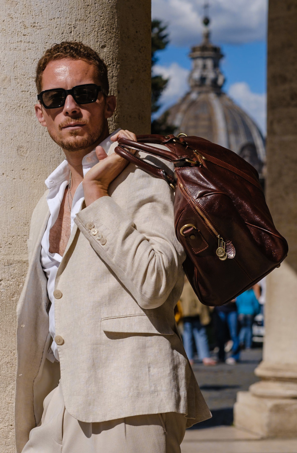 By far our favorite overnight bag, it’s also fitting for a short getaway if you’re a minimalist, or as a daily bag for a maximalist (just in case you like to have a change of footwear). Living proof that a leather duffel bag might just be the most practical bag of them all.