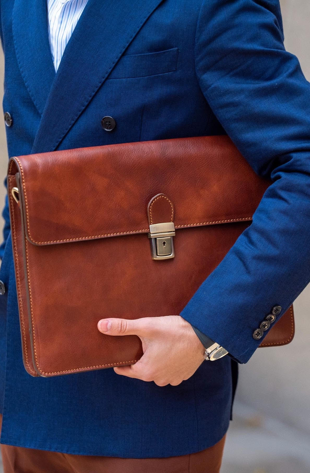 Full-grain leather is the strongest and most durable, retaining the hide’s entire top layer. Its dense fibers resist wear and stretching, and it develops a rich patina over time.
