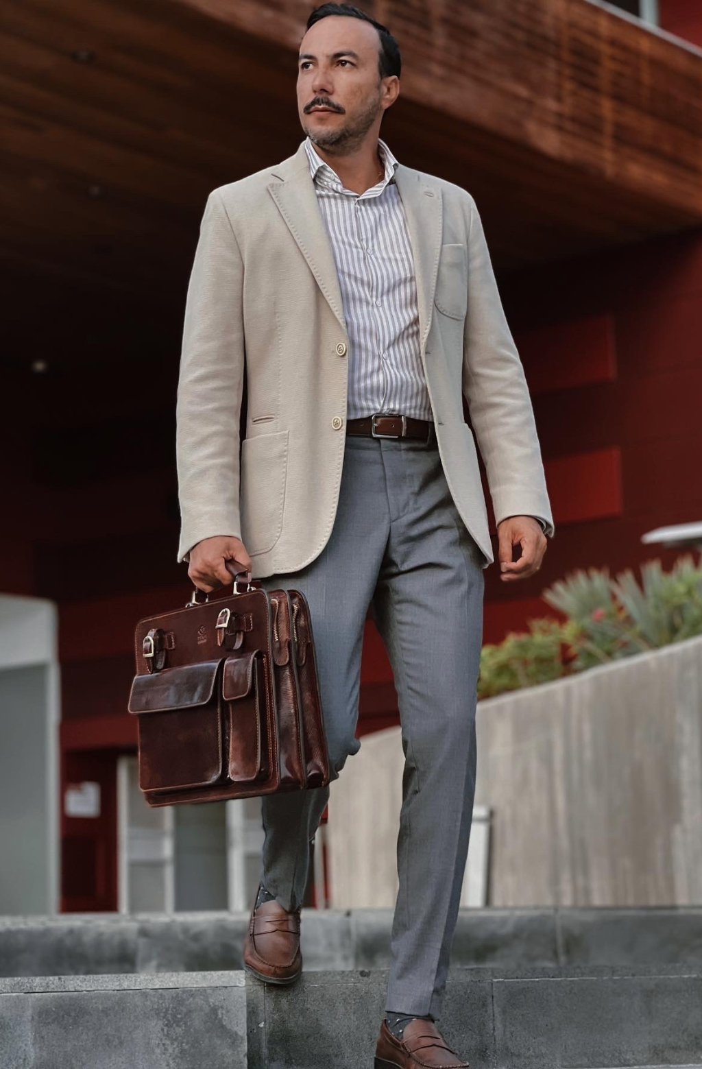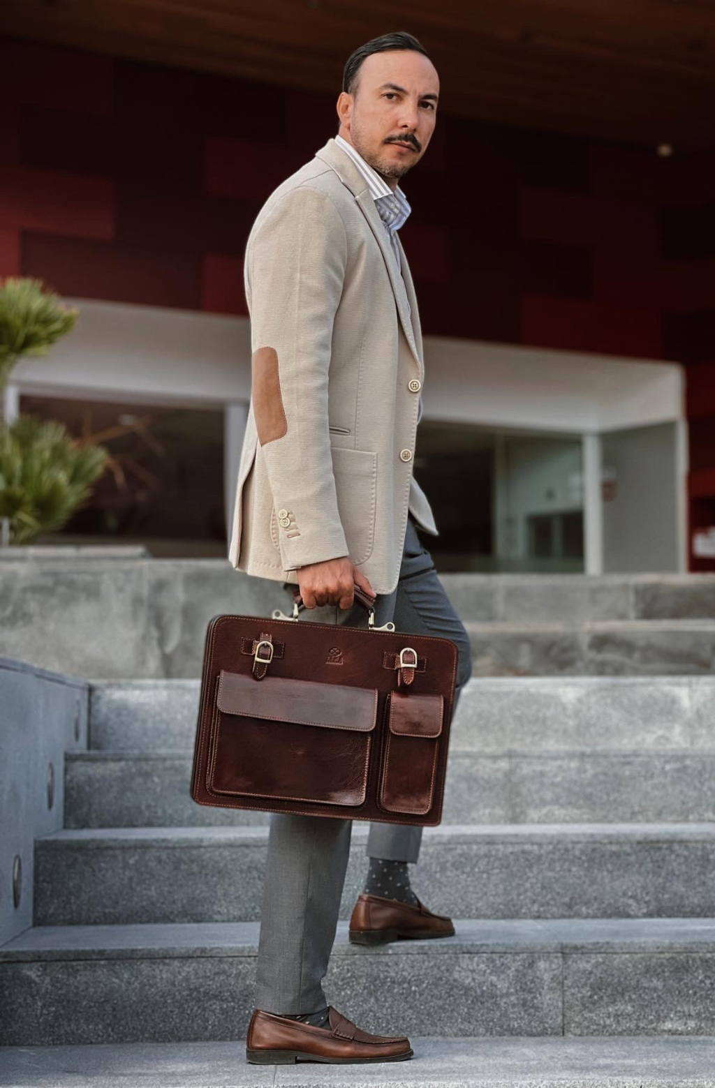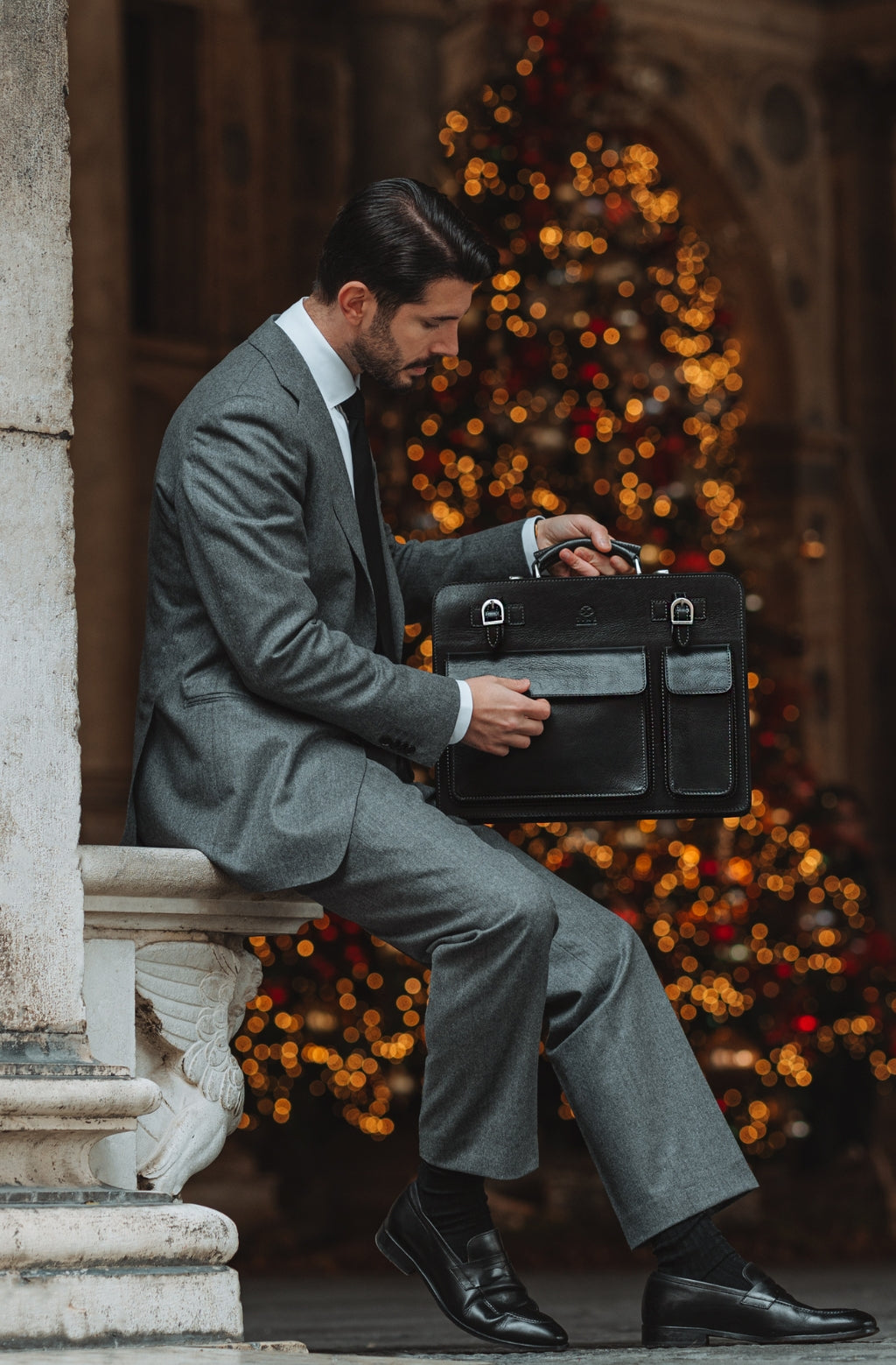 A full-grain leather work bag that gives a formal polish to casual attire. Pure classic – British design inspired by Italian leather satchels.