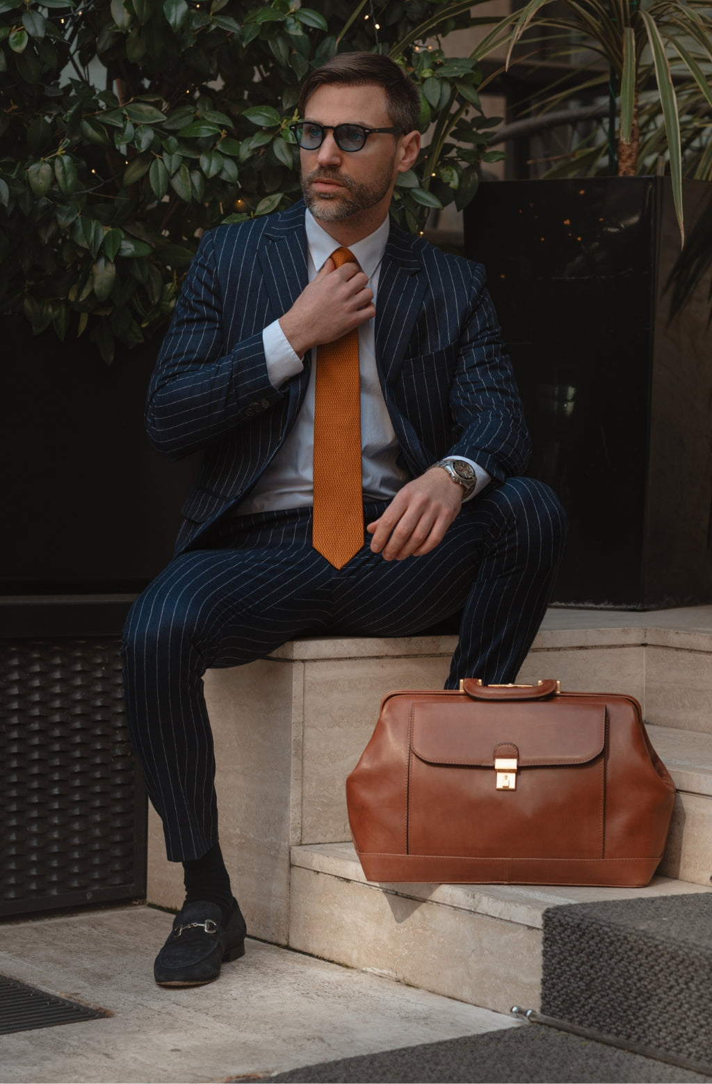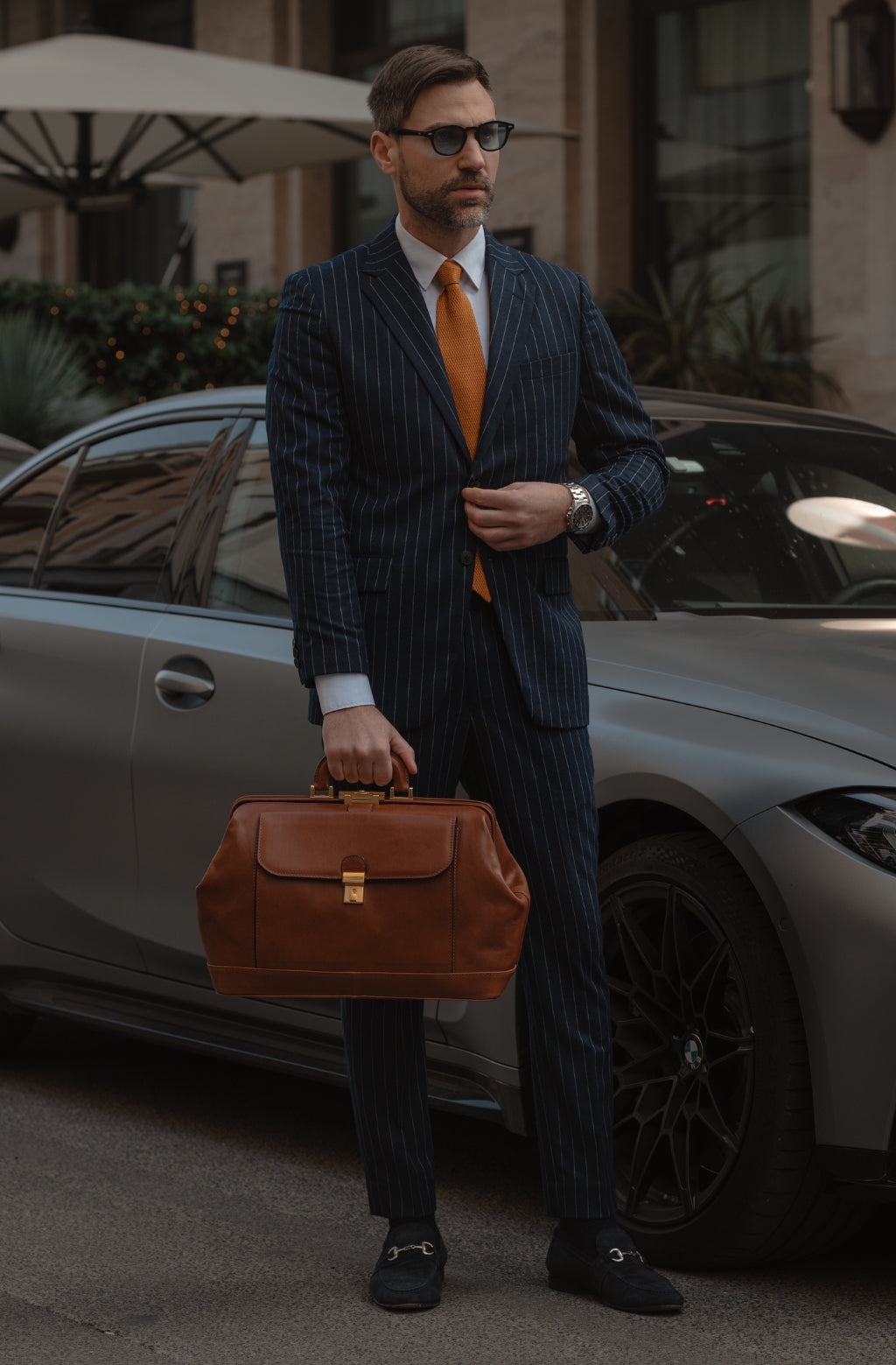 A leather doctor bag, as classic as the play. And, just like the play, it is all about character. Destined to be coupled with someone of confidence and stature, the Hamlet adds a note of originality while remaining completely classic and polished.
