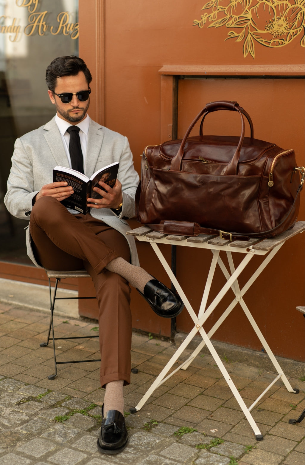 Large Italian Leather Duffel Bag - The Hitchhikers Guide to the Galaxy