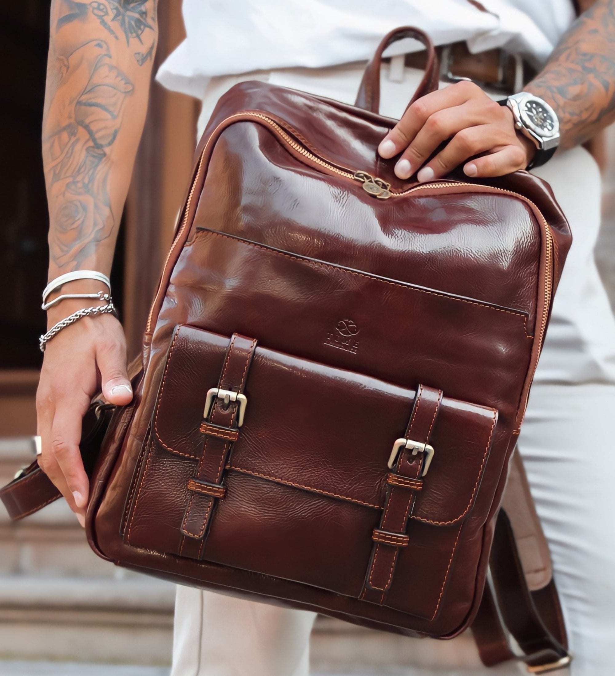 A full-grain leather backpack that is both stylish and practical, with its large capacity and well thought out details for comfort. Best choice for travelers, professionals, and students alike.
