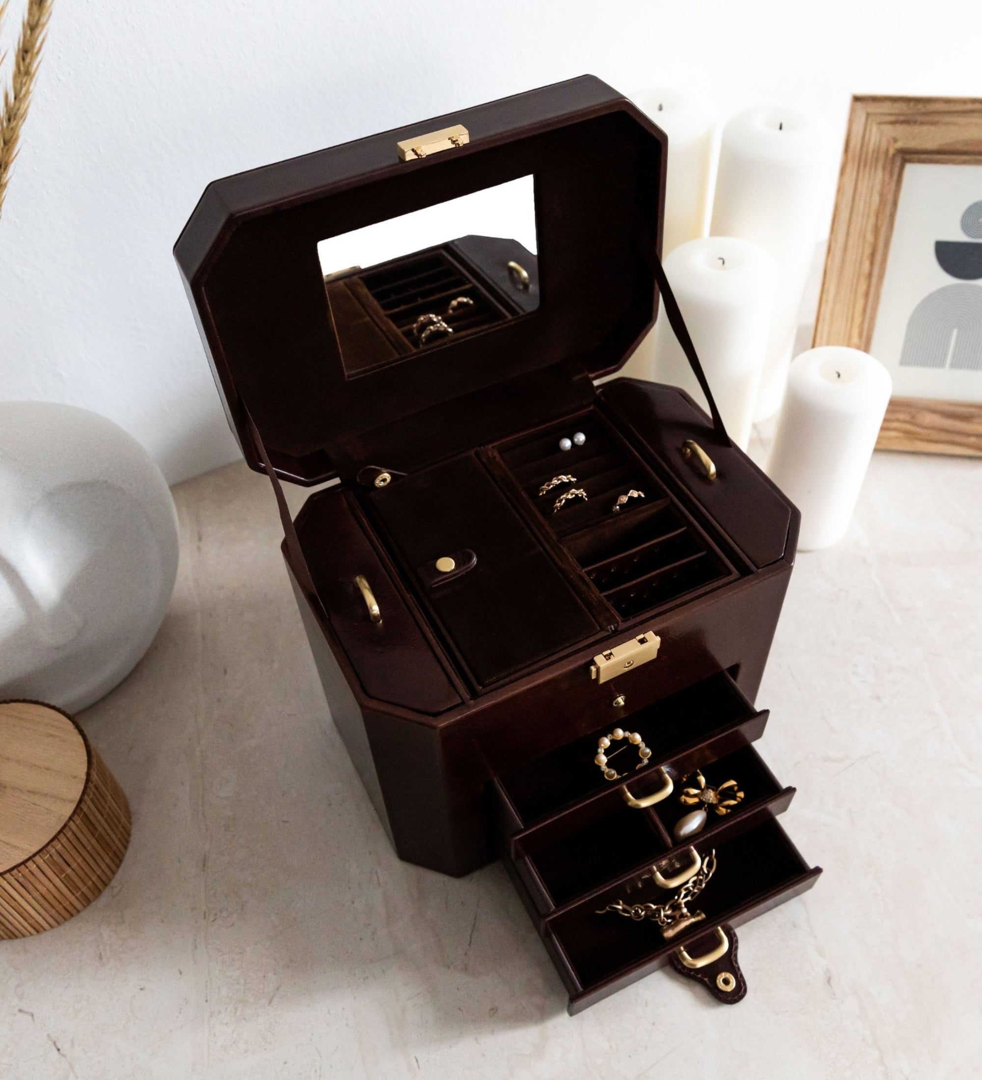 Large Leather Jewelry Box for Women - A Handful of Dust