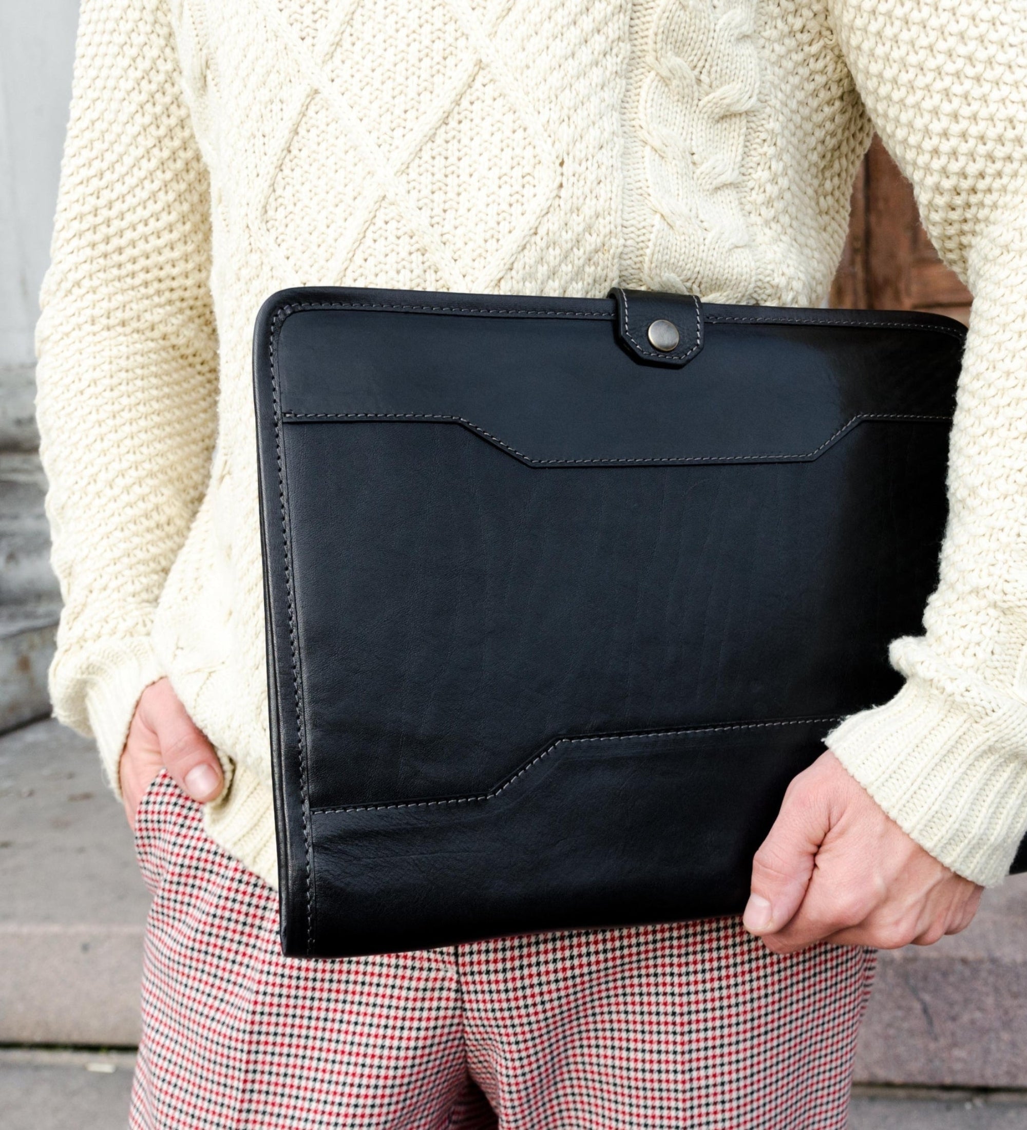Italian leather business portfolio provides you to store important documents and files in style. Featuring holders for laptop/tablet, credit/business cards, pens, headphones/cables, legal pad, coins, cellphones, etc. Finished with a secure closing leather strap, this sophisticated yet practical business accessory helps you to be flexible, mobile and most importantly ready to advance your career.