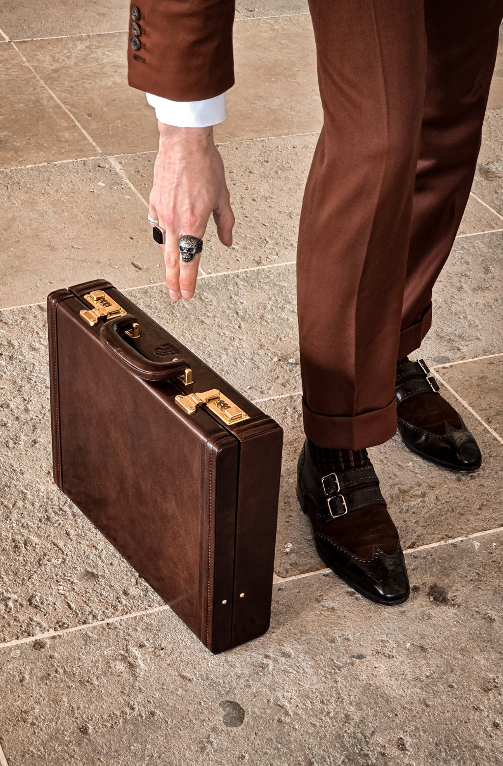 Hand dyeing is a slow, meticulous craft where every hide is colored by hand, layer by layer, using gentle circular motions. Instead of machines, it is the artisan’s touch that controls depth, warmth, and character. The dye is massaged into the grain, allowing the leather to breathe, absorb, and reveal its natural variations.