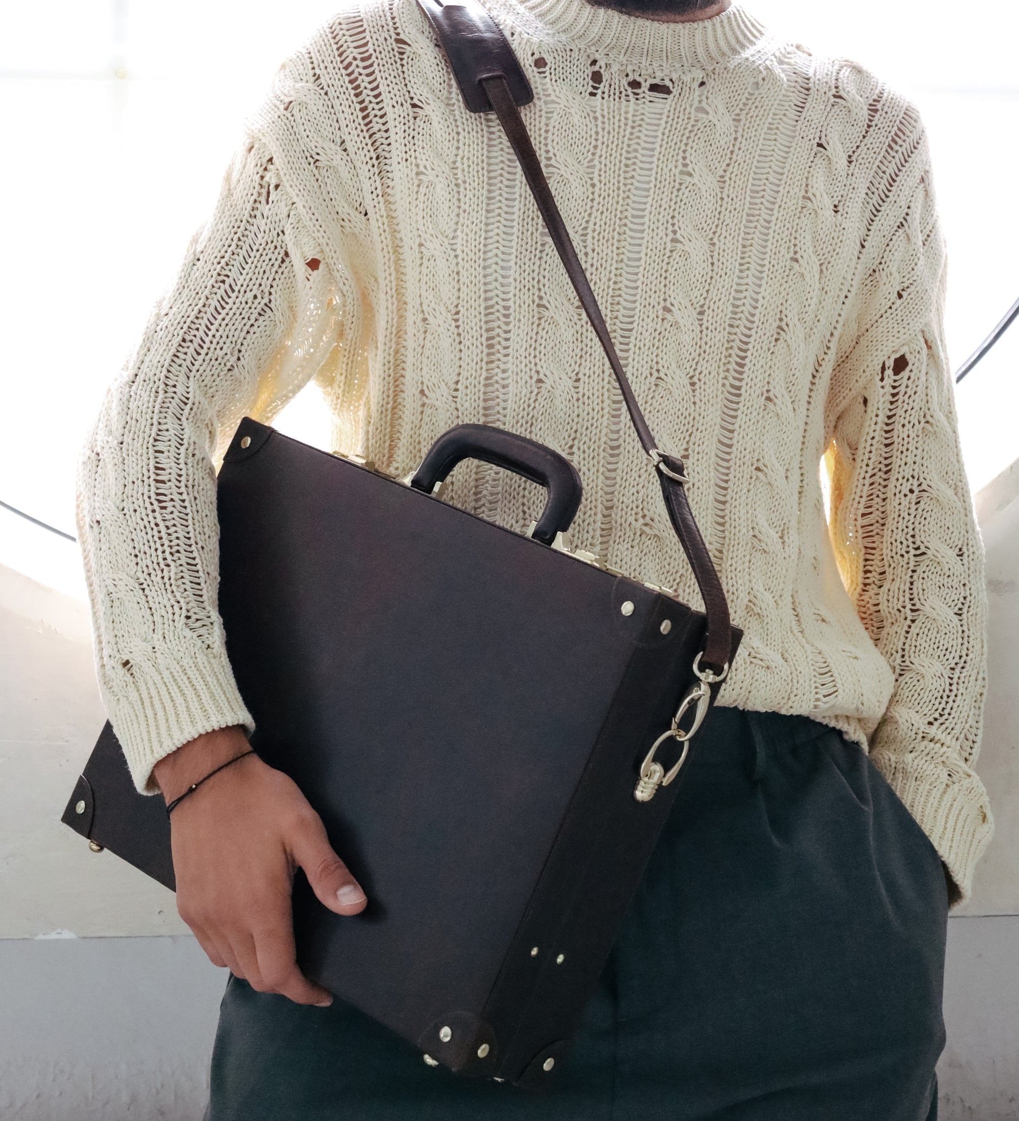 This exquisite attaché case is the perfect companion for the experienced professional. Crafted from the finest full-grain leather, this attaché case is designed to protect and secure your documents and possessions. The combination lock and reinforced corners ensure the highest level of security, while the luxurious finish and subtle detailing elevate the look and feel of the case. Whether you are taking important documents to a meeting, or simply commuting to the office, this attaché case provides the perfect blend of style and functionality.