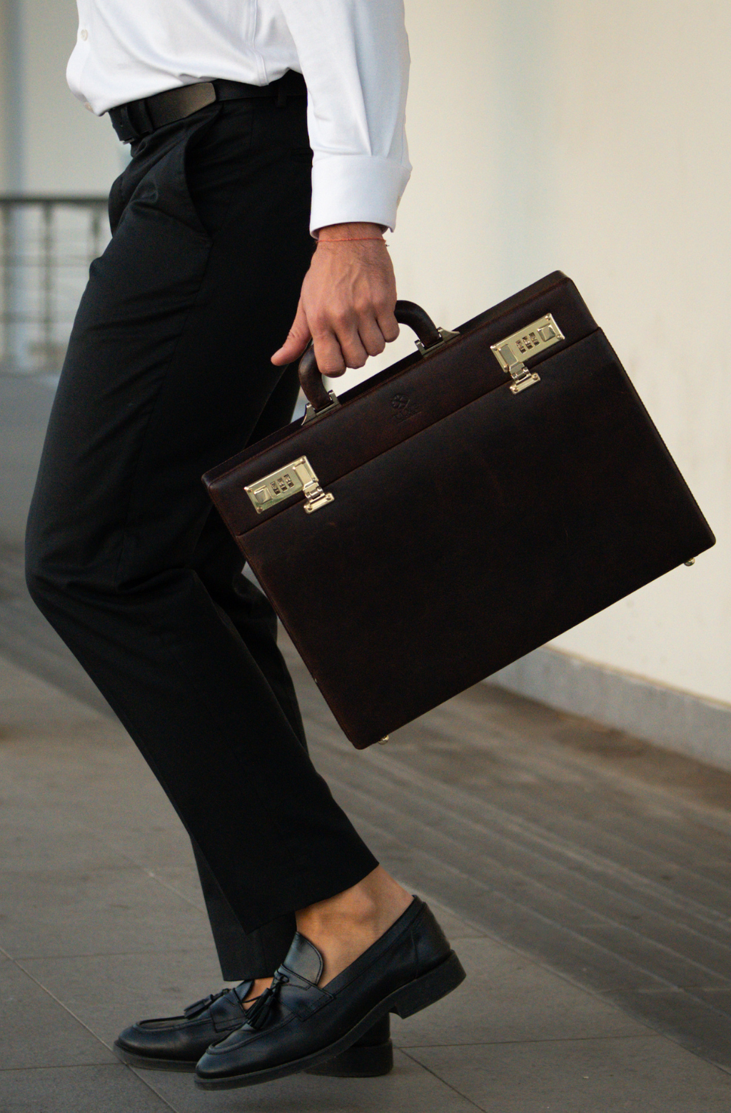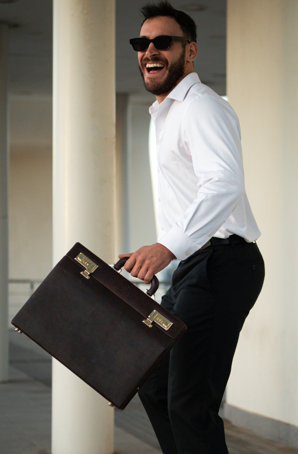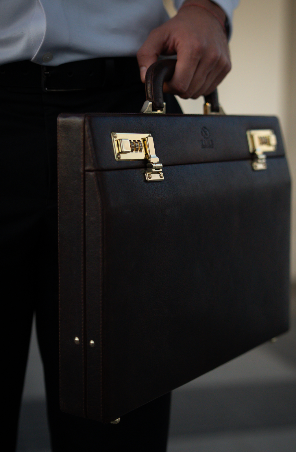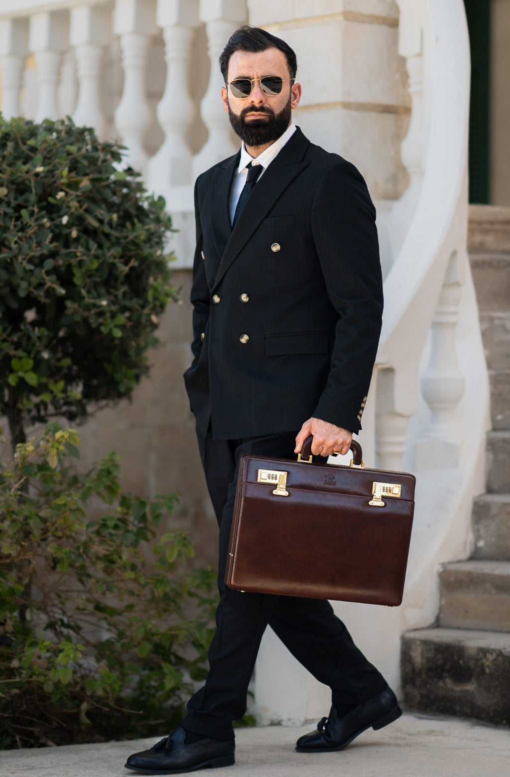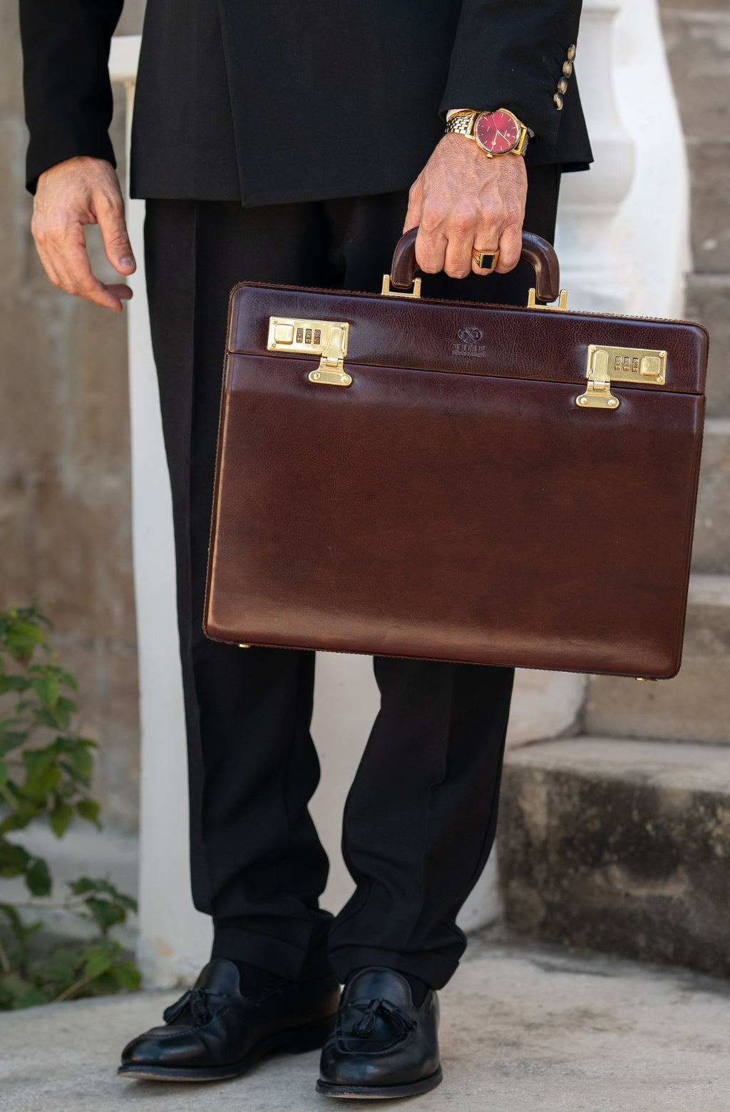 This exquisite leather attaché case is the perfect way to transport your important documents and belongings in luxury and sophistication. Expertly constructed from the finest quality leather, this attaché case is designed to last a lifetime. Featuring a spacious main compartment, and multiple internal pockets, this attaché case provides ample storage for all of your items. The secure design ensures your belongings remain safe and protected, while the stylish exterior ensures you look great with your attaché case in tow. Whether you're a business professional or a student, this luxury leather attaché case is the perfect accessory.