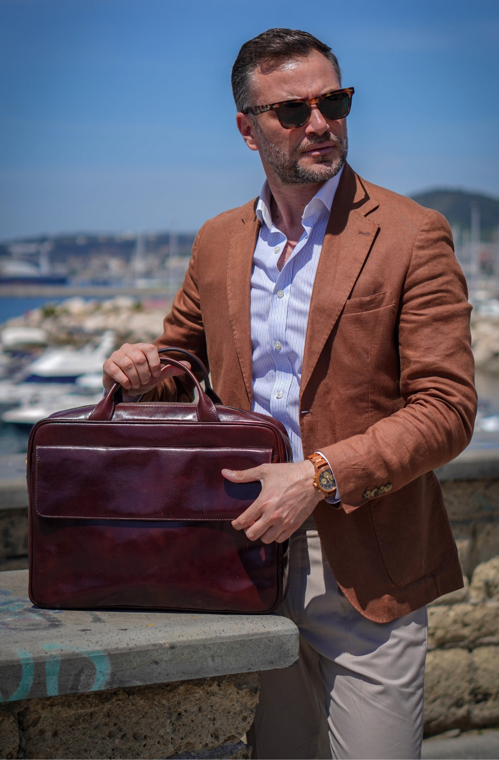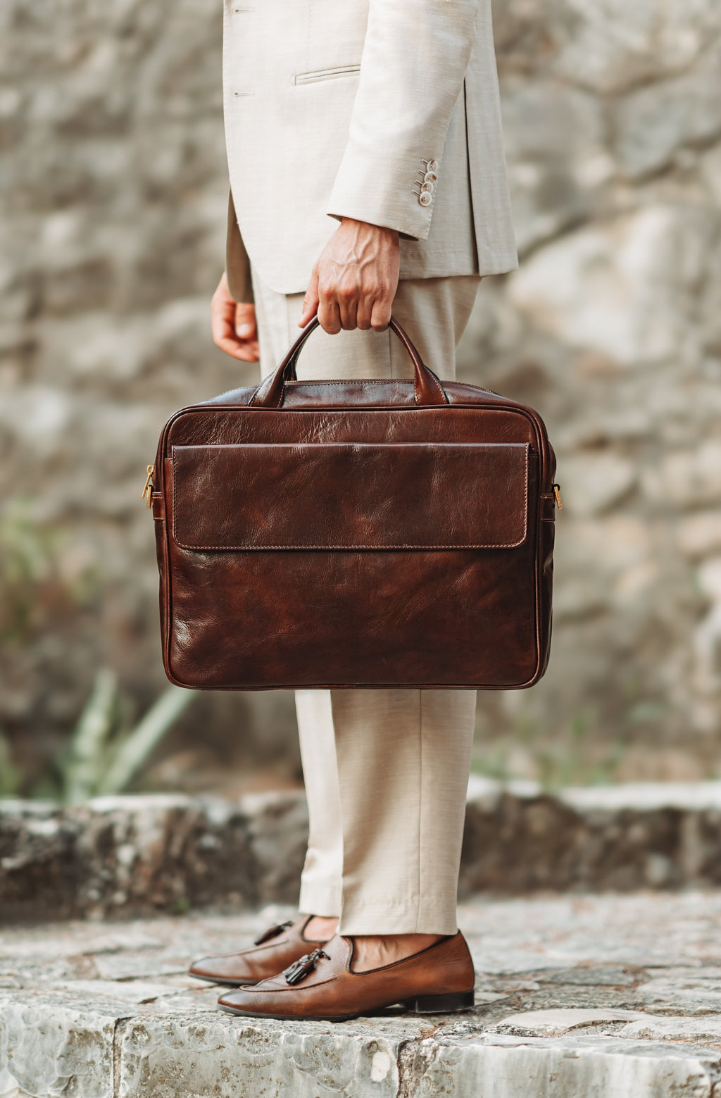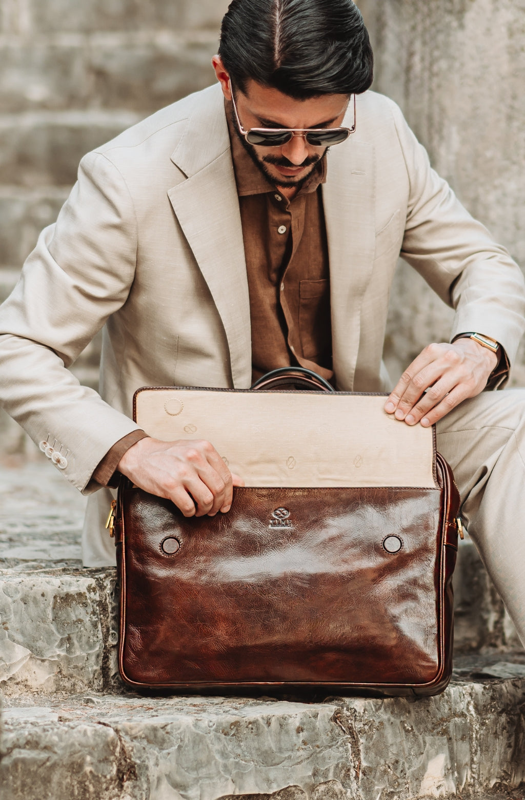 Time Resistance bags and accessories are crafted from premium full-grain, hand-dyed, vegetable-tanned Italian cowhide, known as Vachetta leather, which develops a beautiful patina and ages gracefully over time.