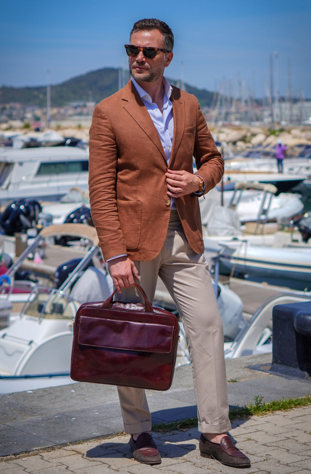 Time Resistance bags are crafted from premium full-grain, hand-dyed, vegetable-tanned Italian cowhide, known as Vachetta leather, which develops a beautiful patina.