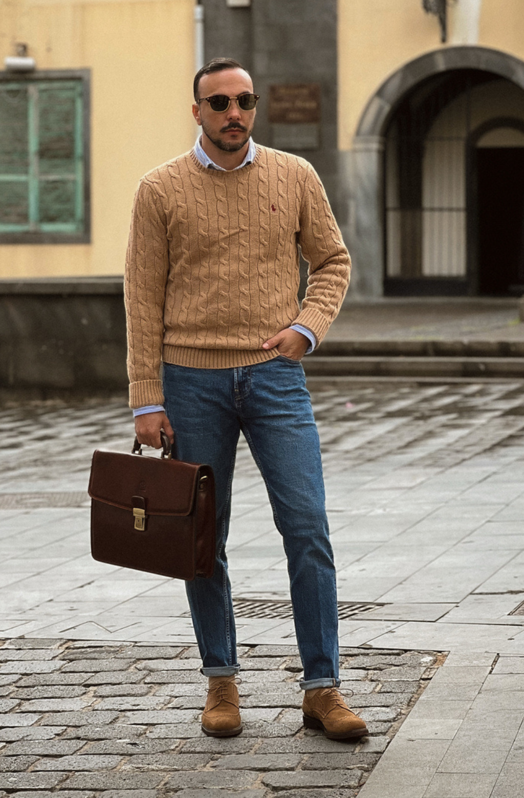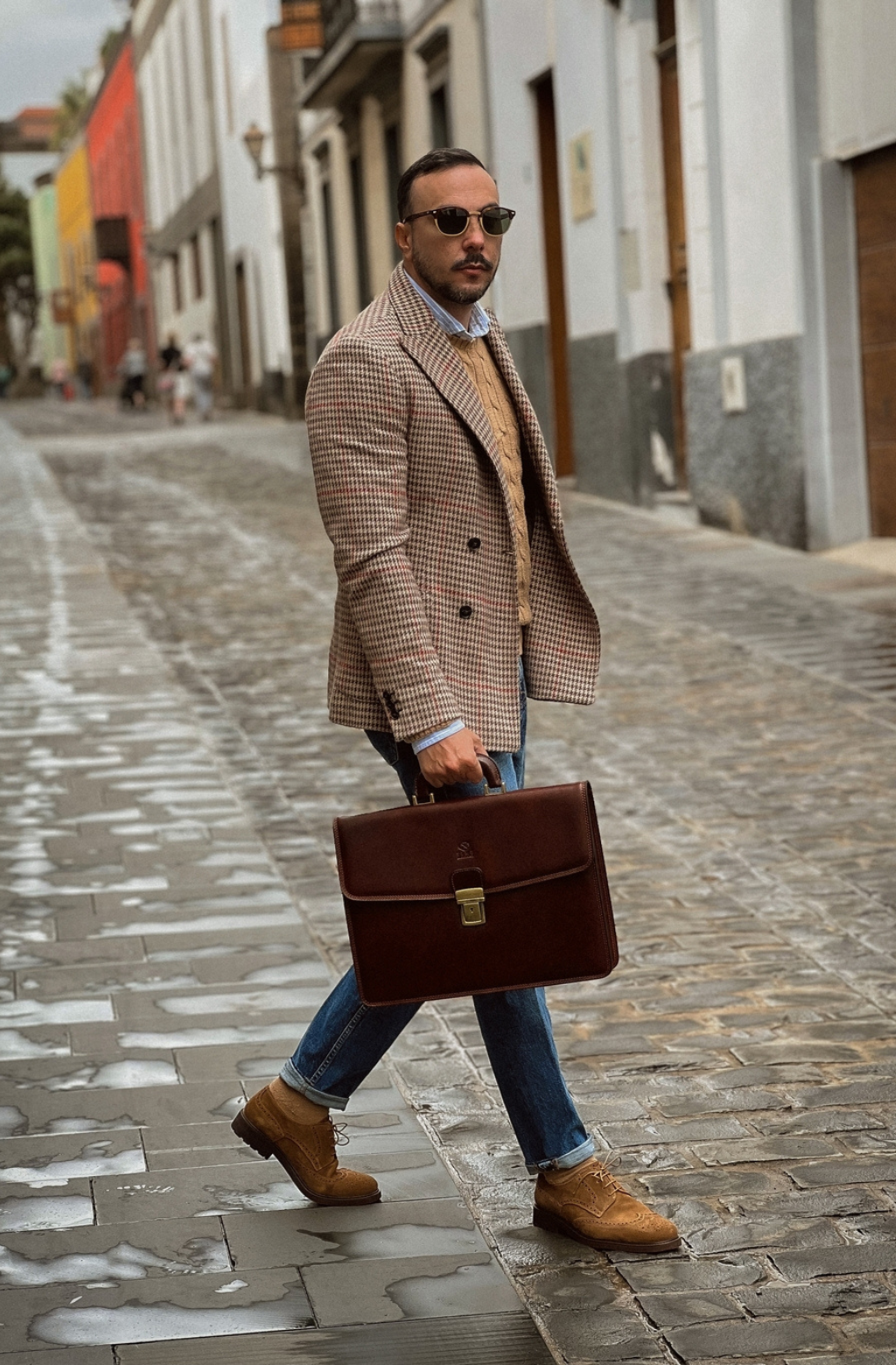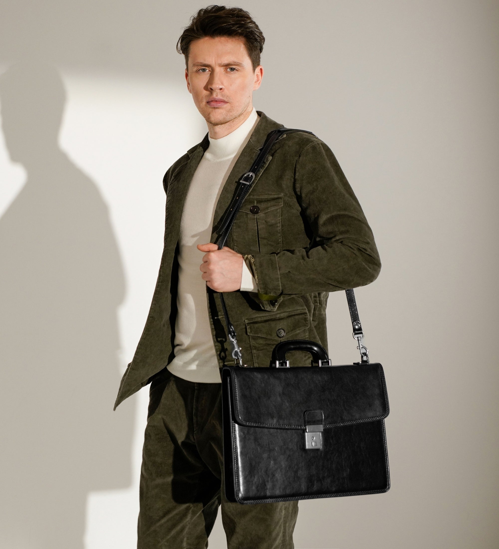 A leather briefcase that is classic but unassuming. For when you haven’t yet decided what kind of character you are going to play in life. It goes with everything, allowing you full freedom to be one person today and the complete opposite tomorrow: a suit or a beanie? Both? Does anyone do both? No? Should you be the first? Complemented by imagination.