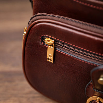 Time Resistance bags are crafted from premium full-grain, hand-dyed, vegetable-tanned Italian cowhide, known as Vachetta leather, which develops a beautiful patina.